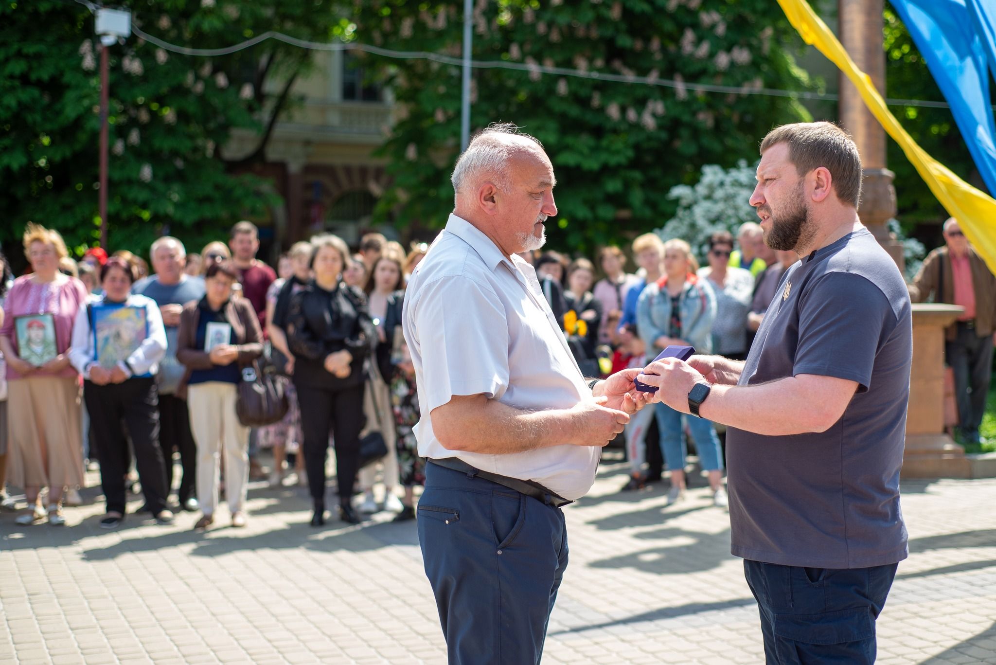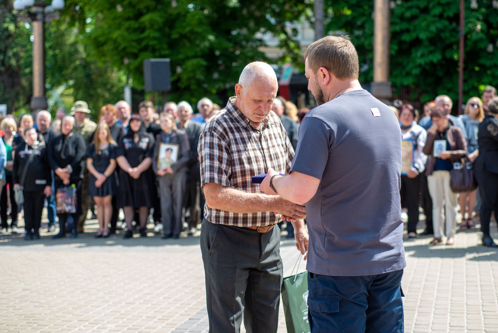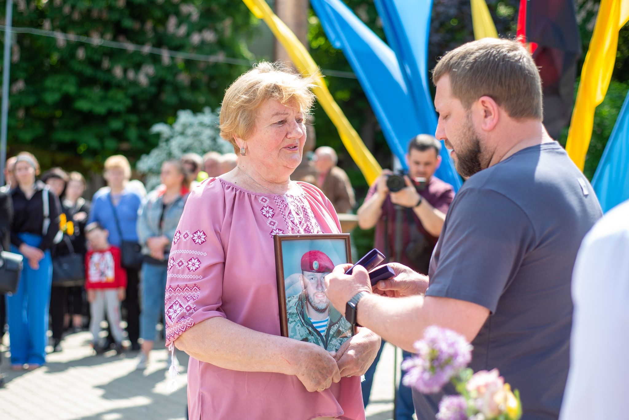 За батьківську самовідданість, вагомий особистий внесок у виховання та формування високих духовних і моральних якостей сина, виявлених у захисті державного суверенітету та територіальної цілісності країни начальник Тернопільської ОВА Володимир Труш вручив медалі «За службу Україні» батькам Героїв України, удостоєних орденом «Золота зірка».