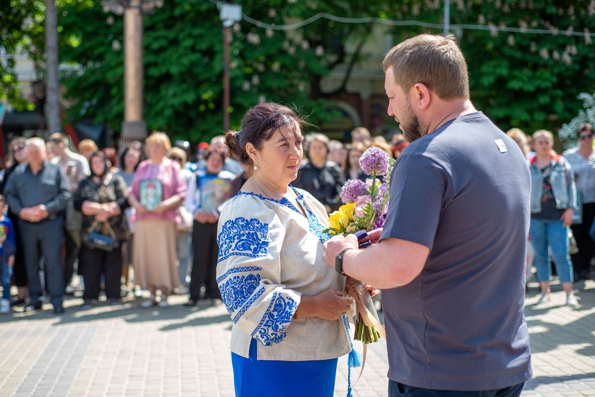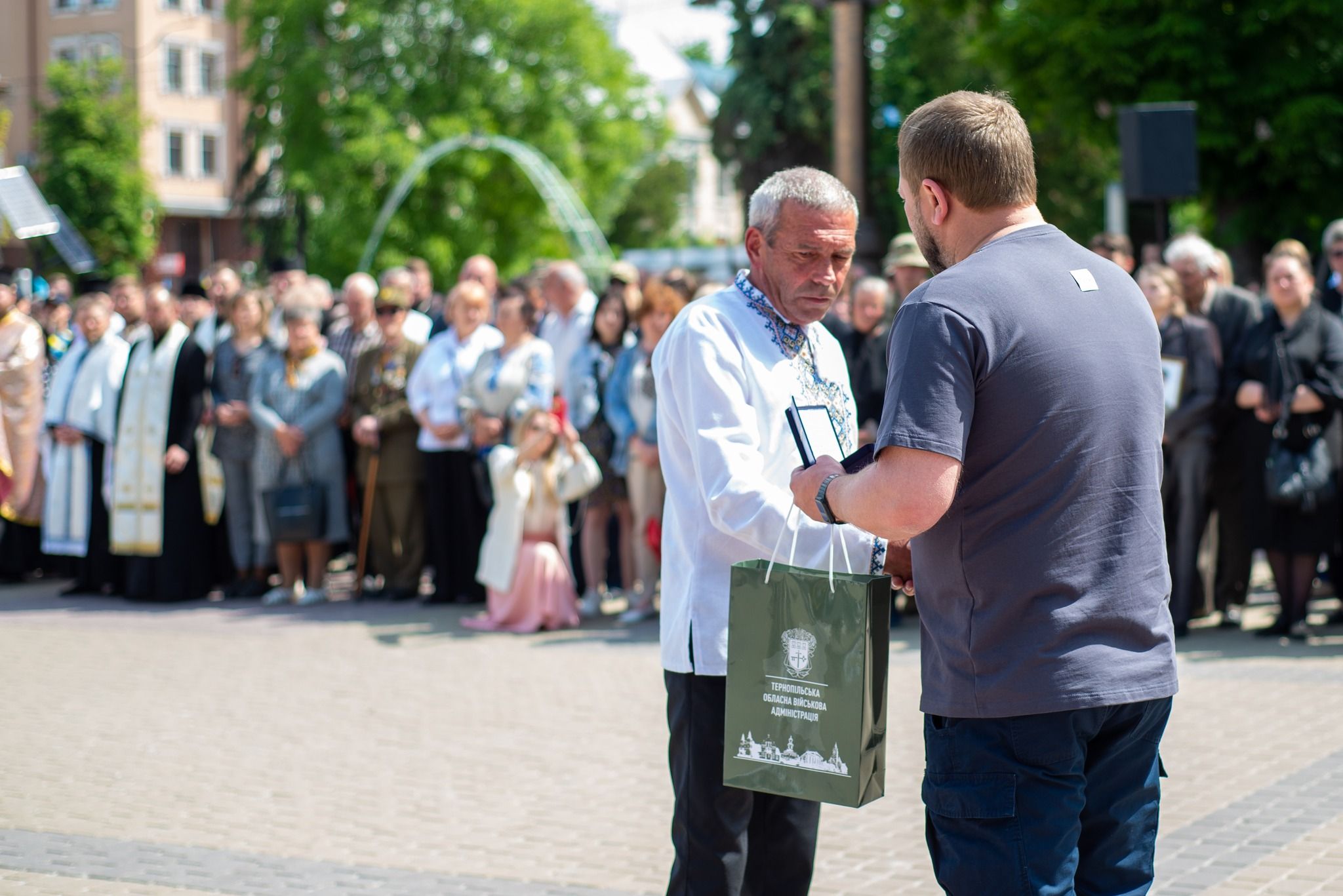 - В центрі Тернополя провели урочистості, до яких долучились батьки Героїв України, які загинули, і тих, які продовжують виборювати незалежність, десятки військових, представники влади та громадськості.