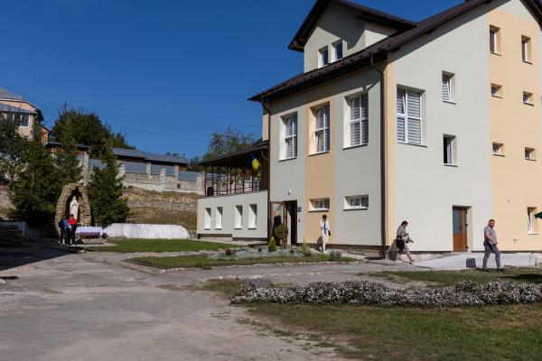 В ОВА кажуть, що у прихистку є усе необхідне для комфортного життя: санвузли, пральня та їдальня загального користування. Поруч є велика прибудинкова територія та ліс.