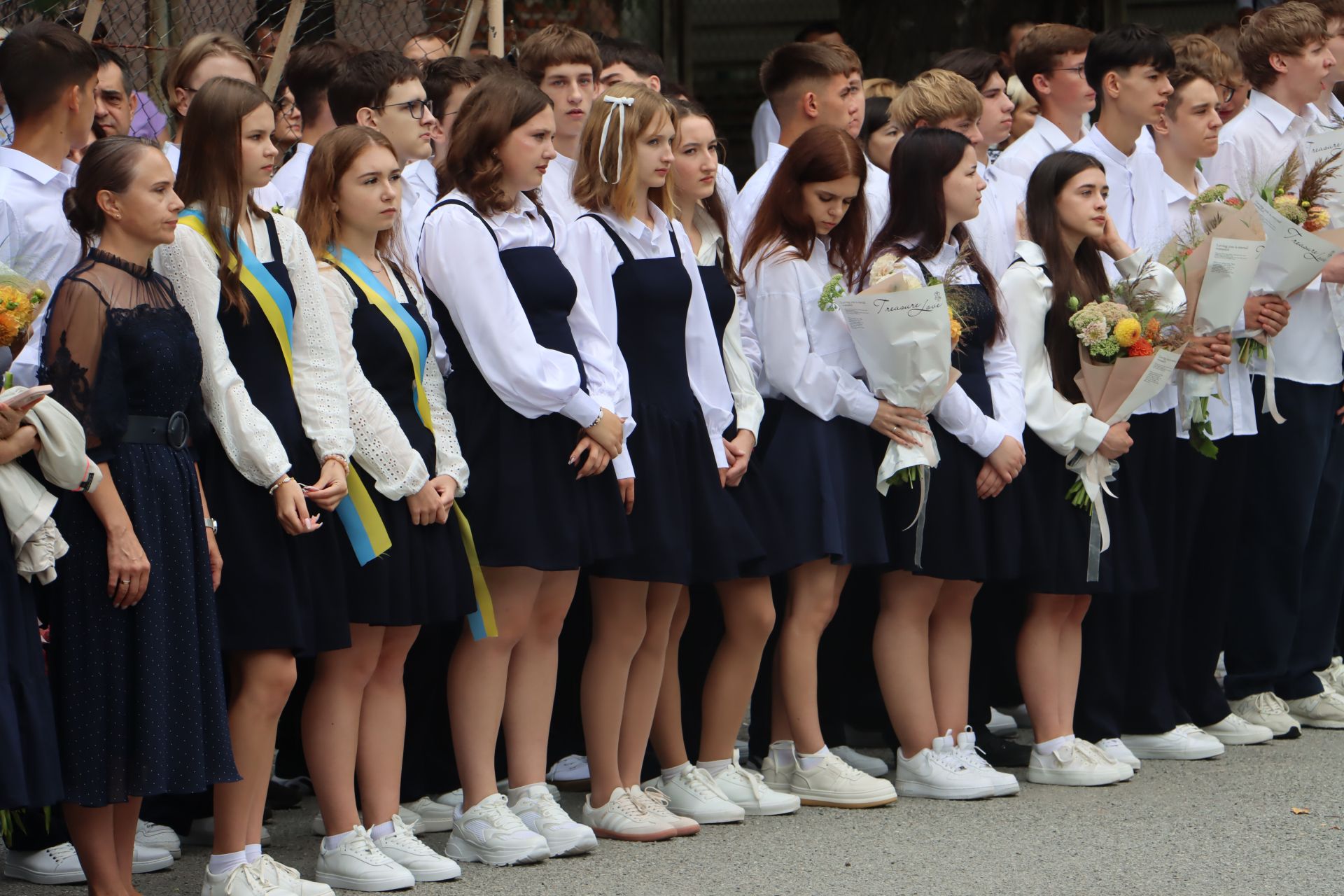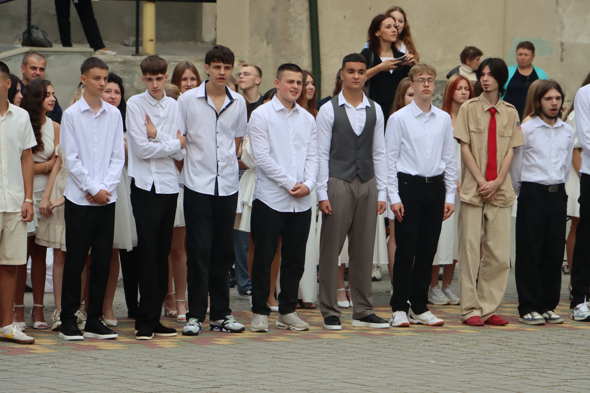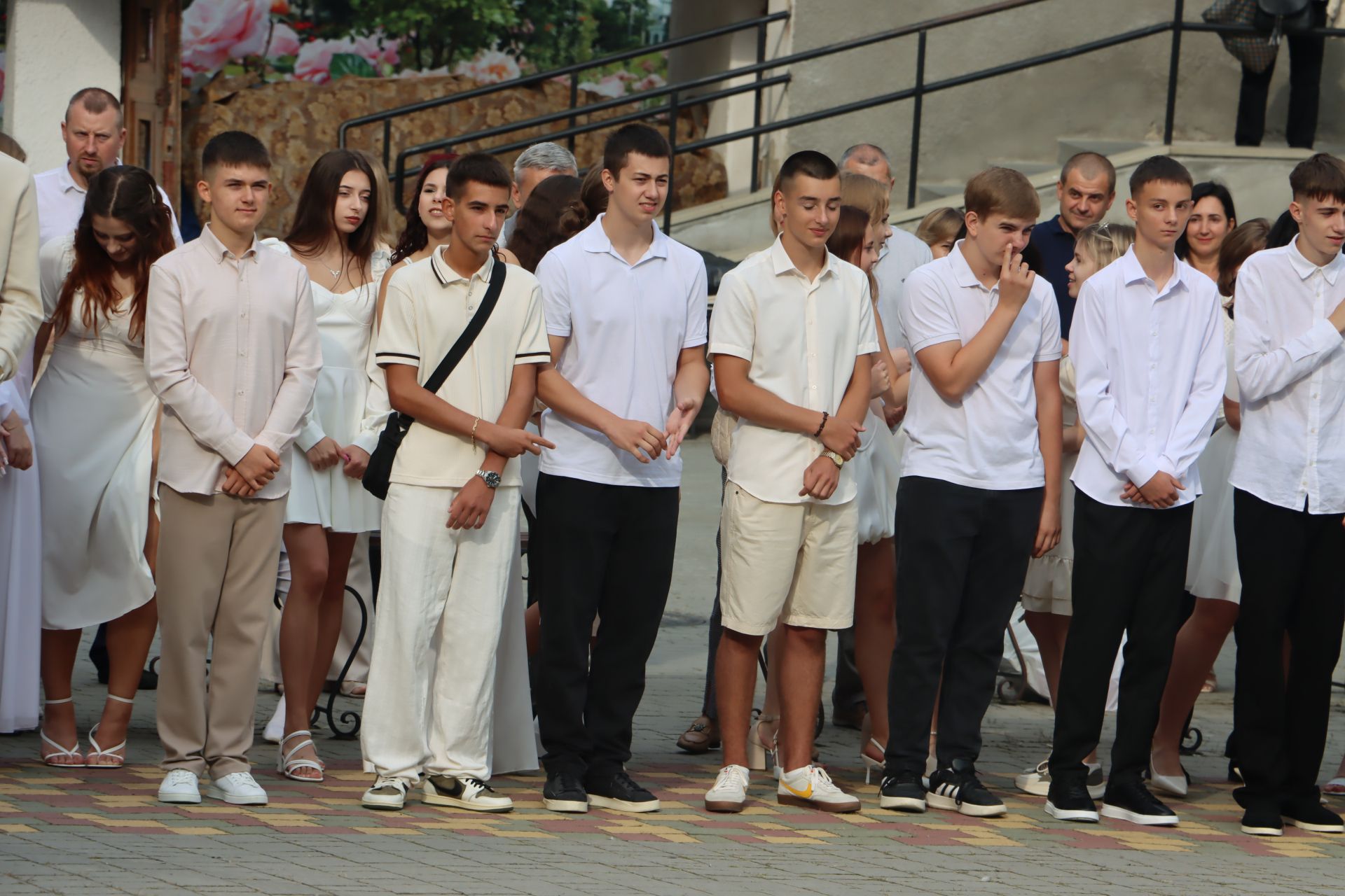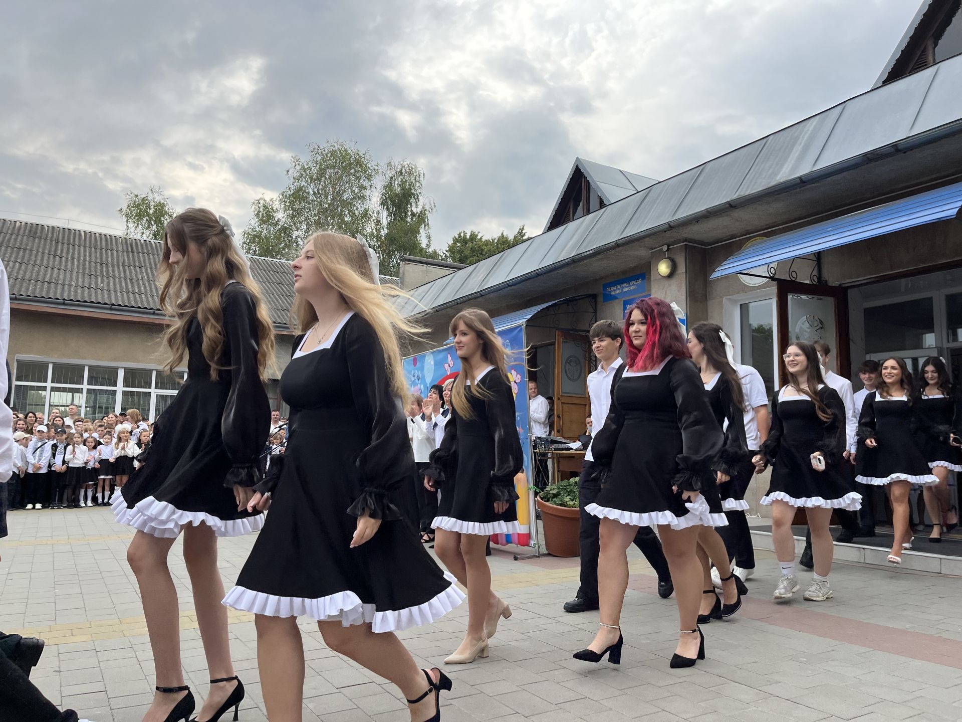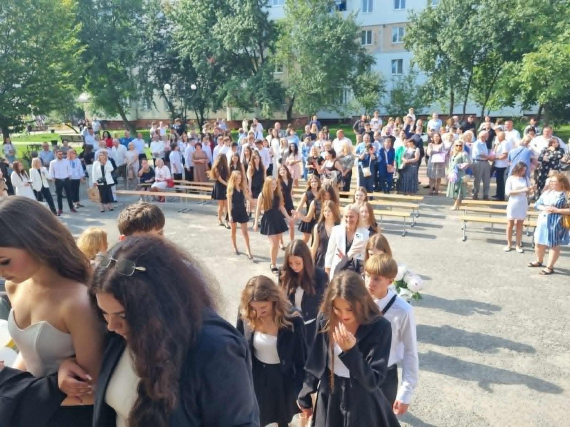 Урочиста лінійка — лише для 11 класів і першачків. Усі дівчата 11-класниці -- у білих сукнях. Хлопці - у білих сорочках. Школярів підтримали і класні керівнички, які одягнули біле вбрання