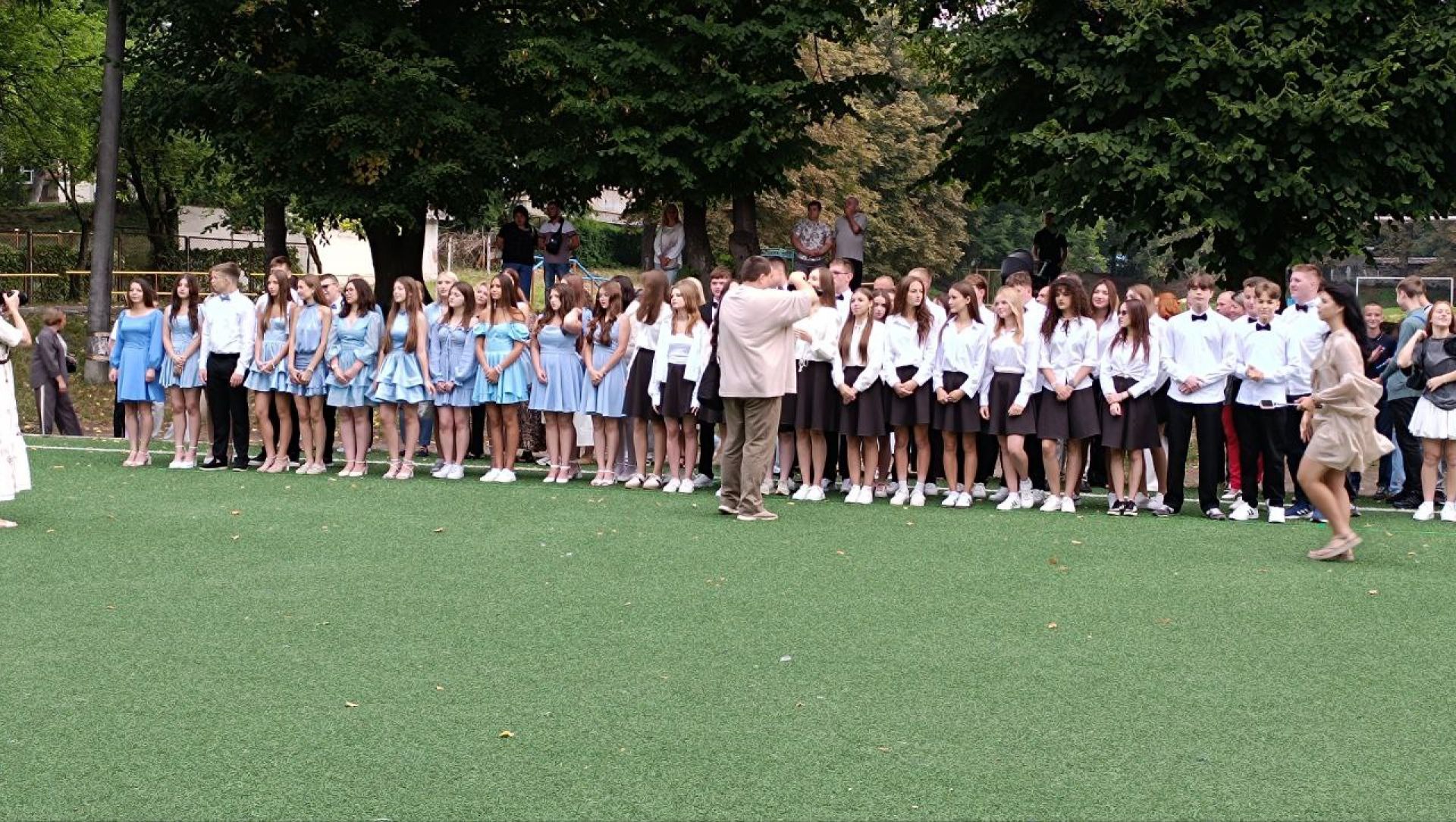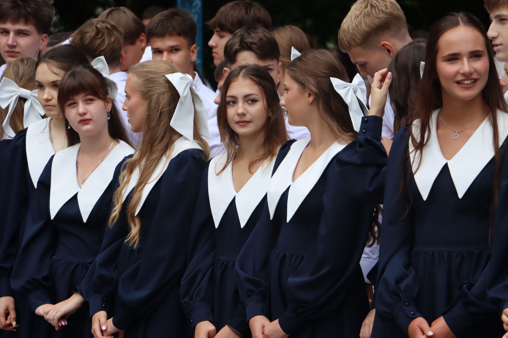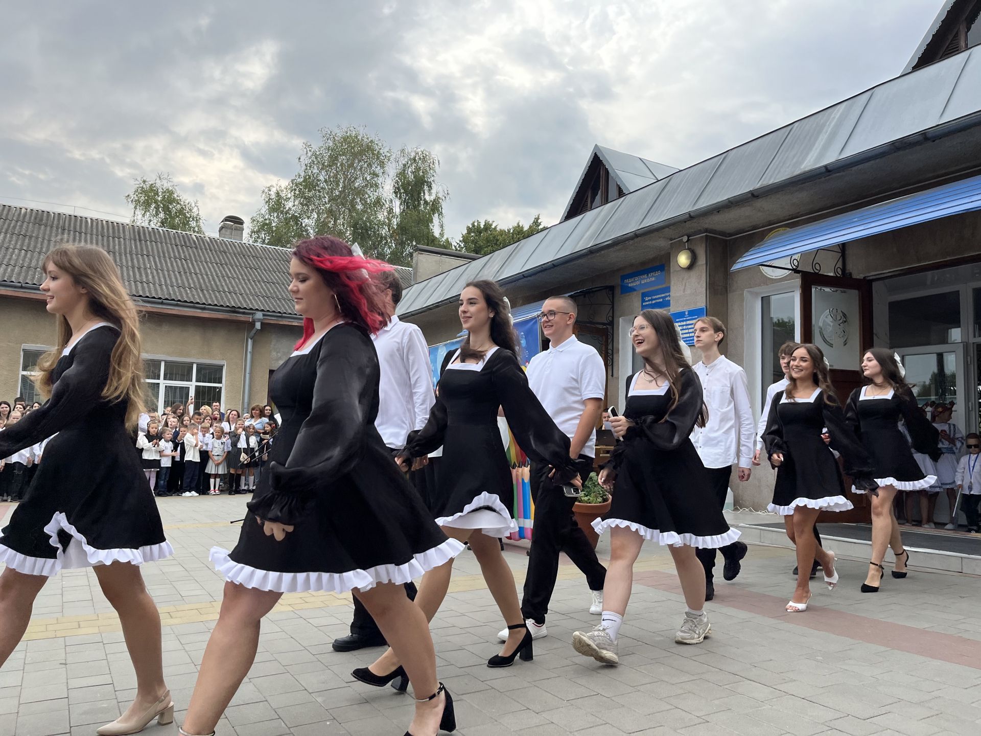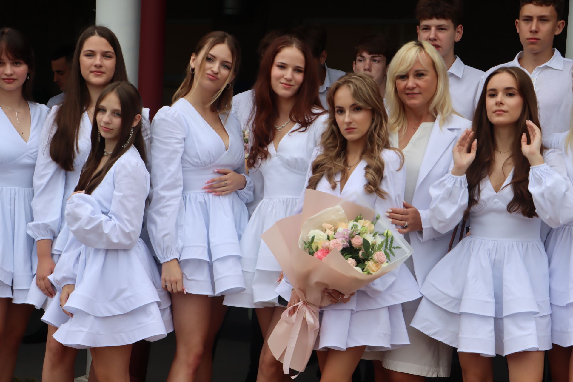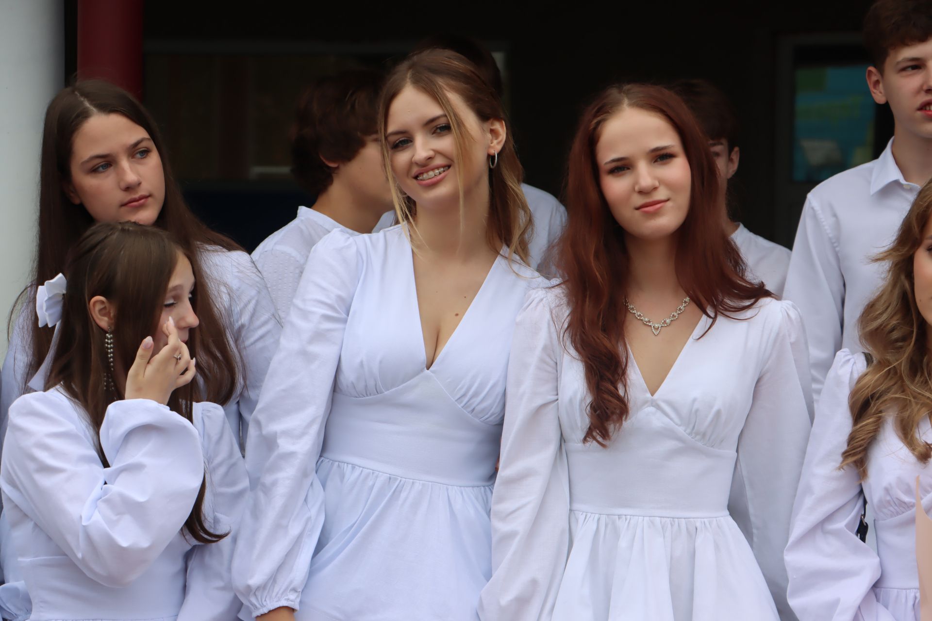 Урочиста лінійка — лише для 11 класів і першачків. Усі дівчата 11-класниці -- у білих сукнях. Хлопці - у білих сорочках. Школярів підтримали і класні керівнички, які одягнули біле вбрання