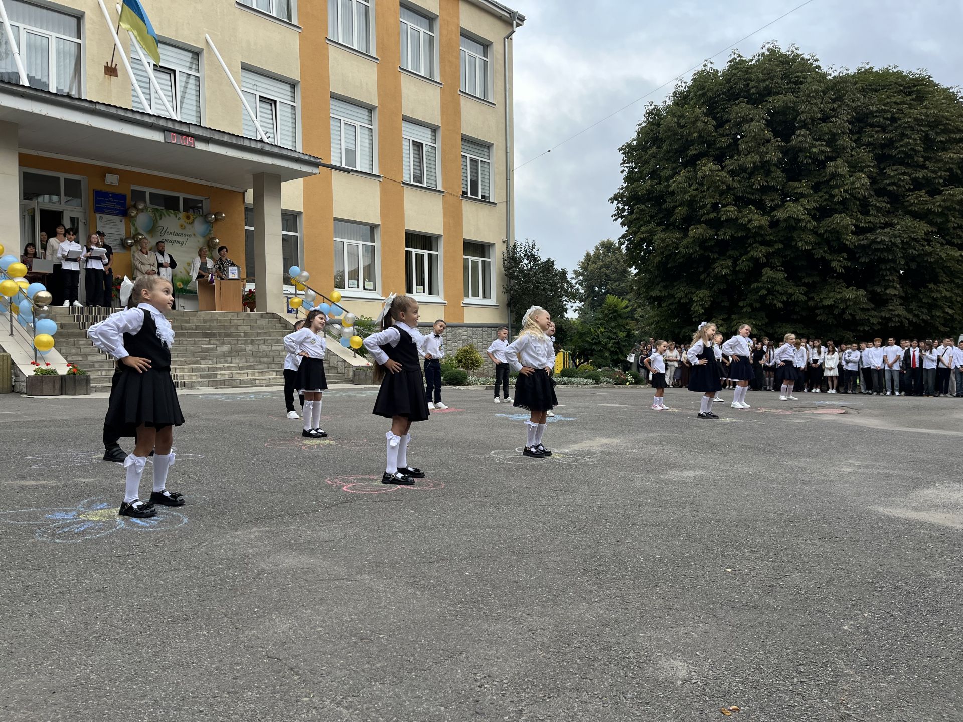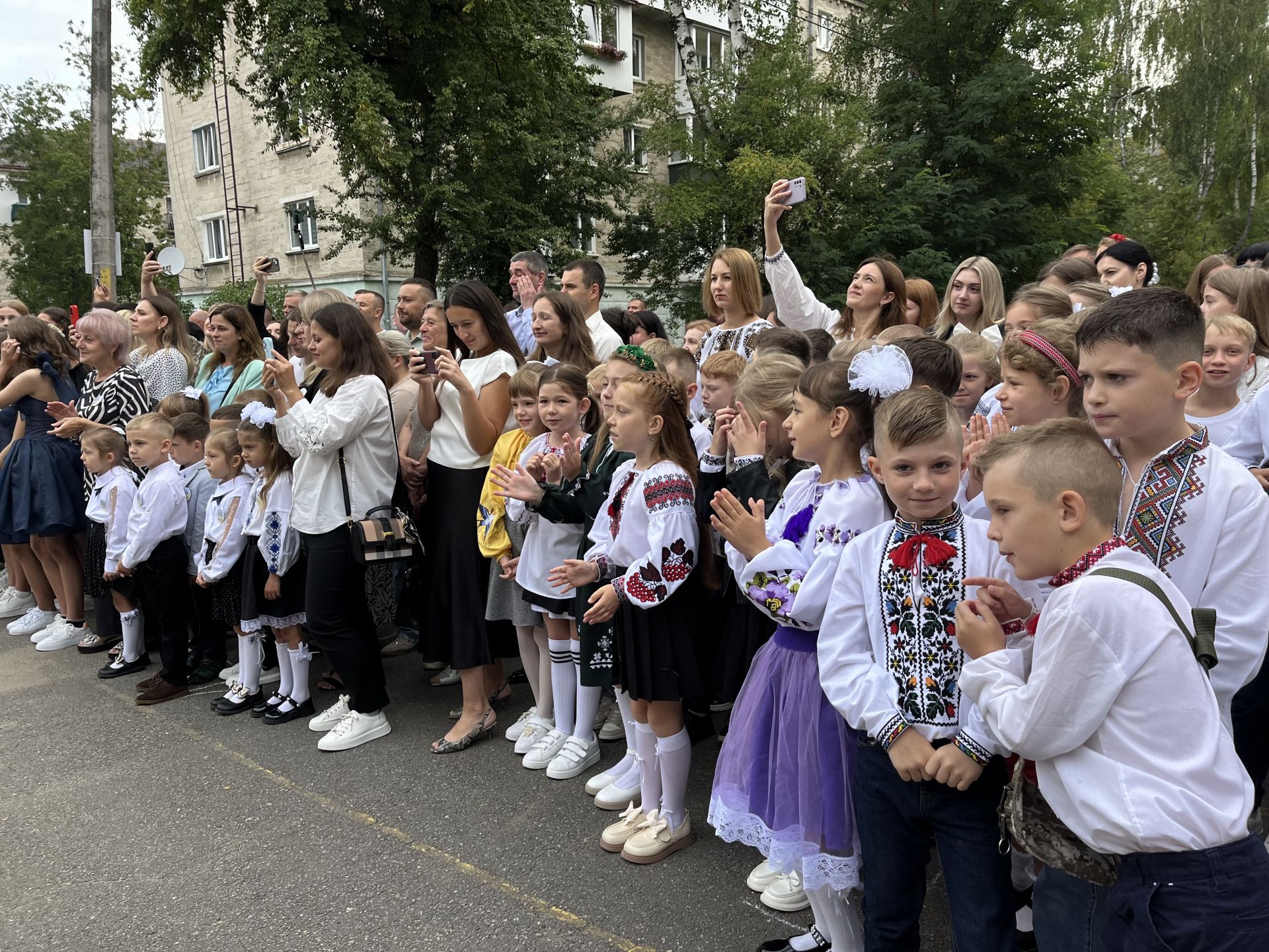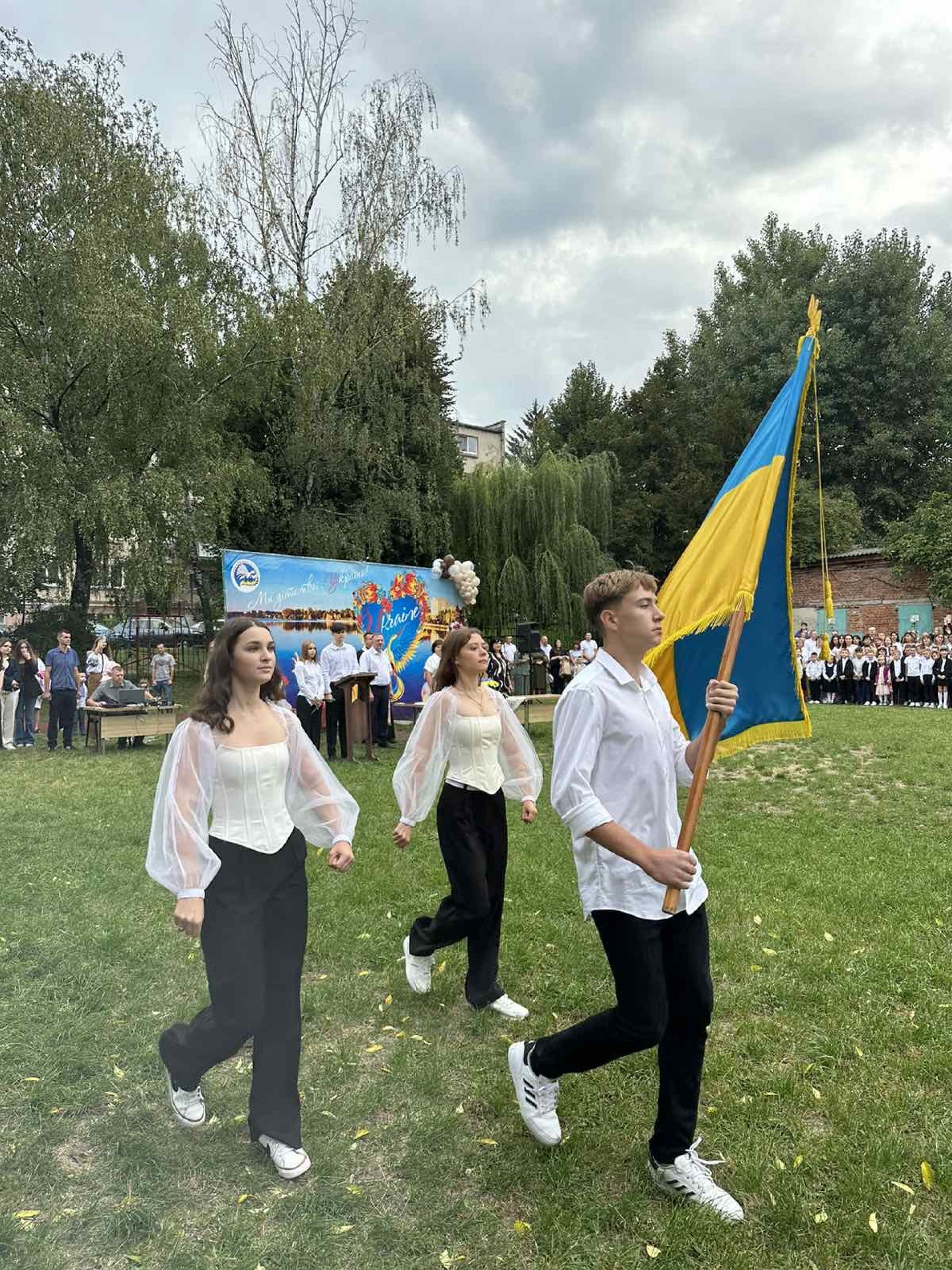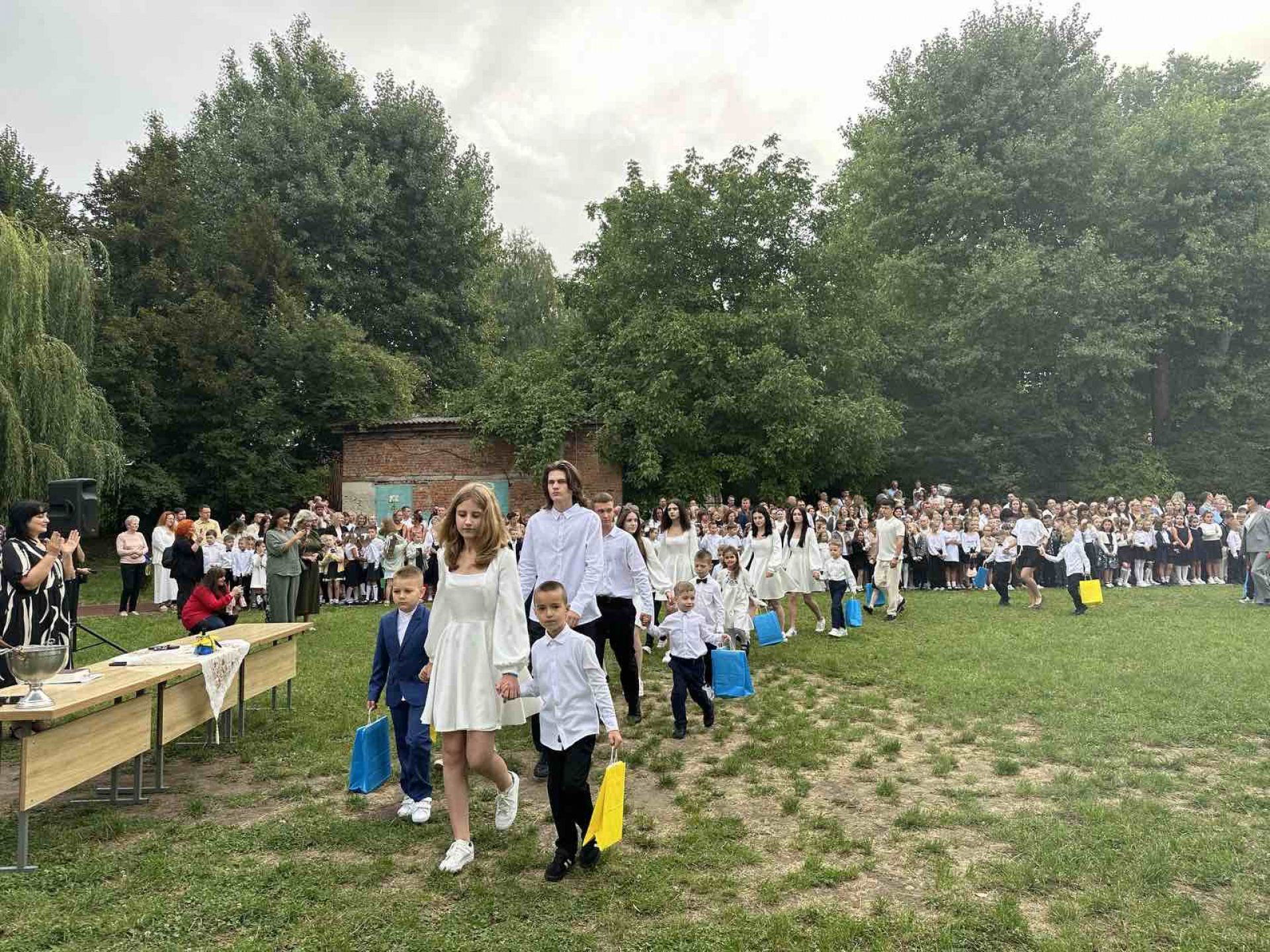 Першачків на їхню першу урочисту лінійку тут виводили одинадцятикласники. Захід організували під сього-жовті димові шашки, учні традиційно пройшли під прапором України.