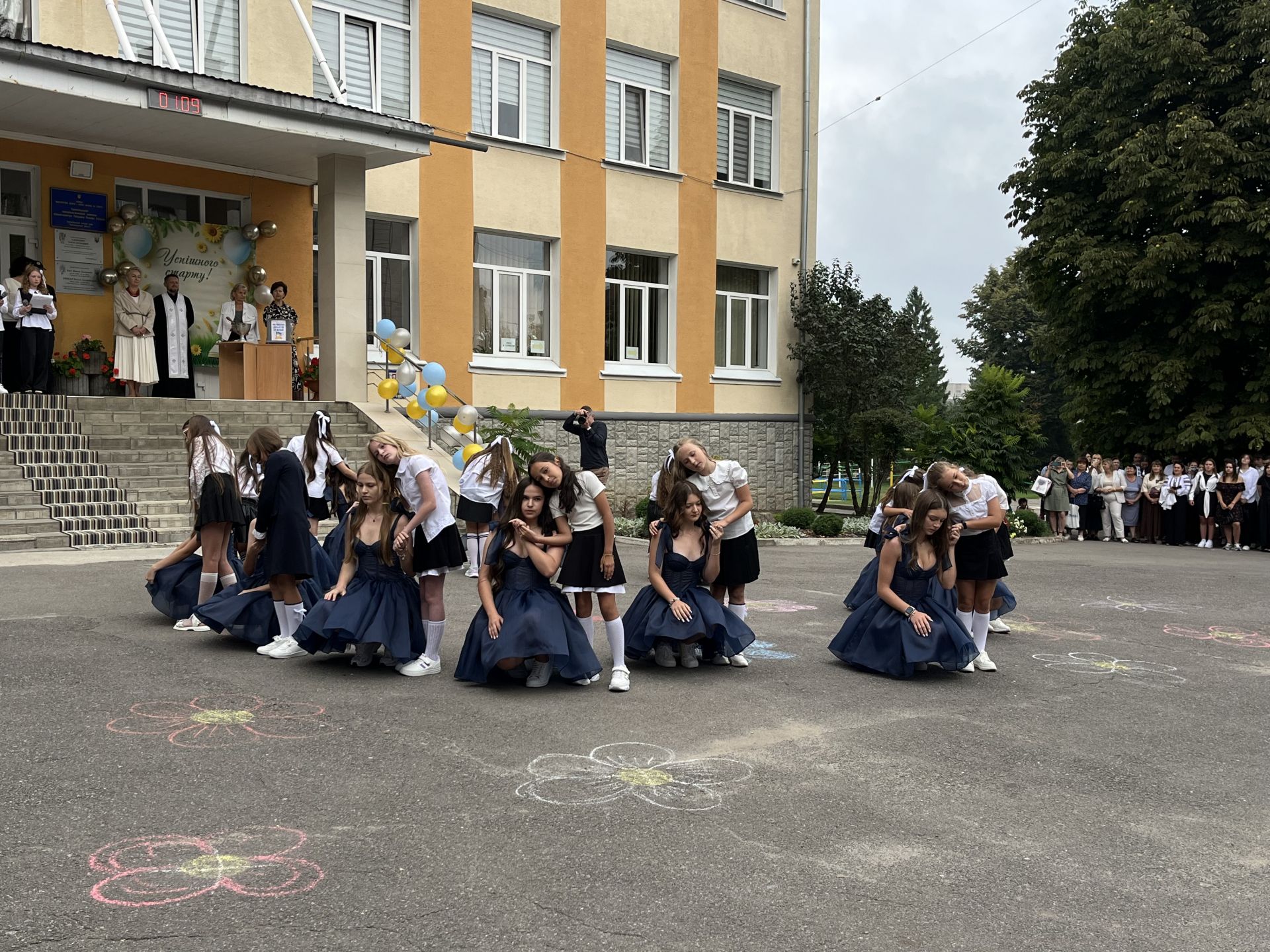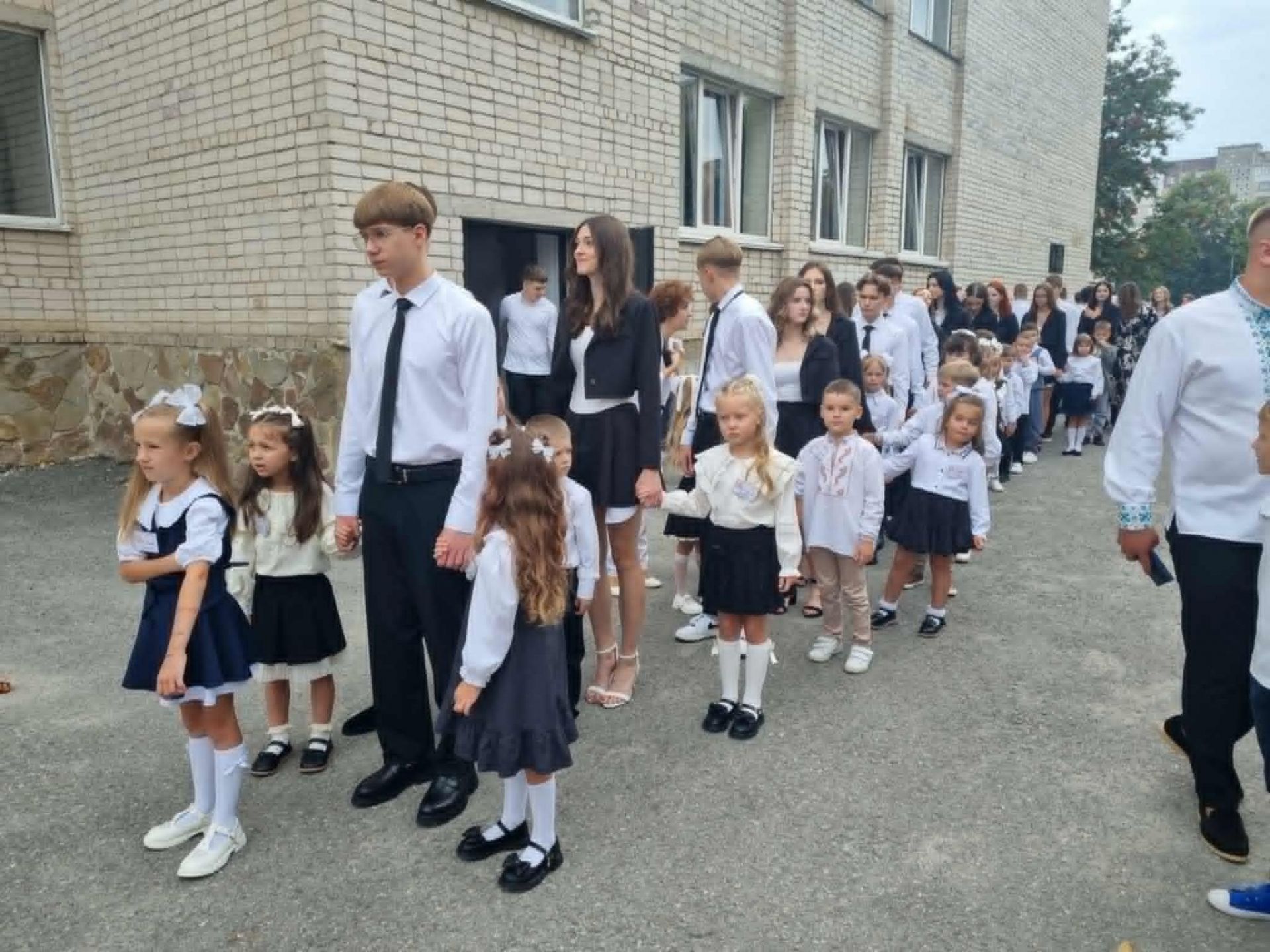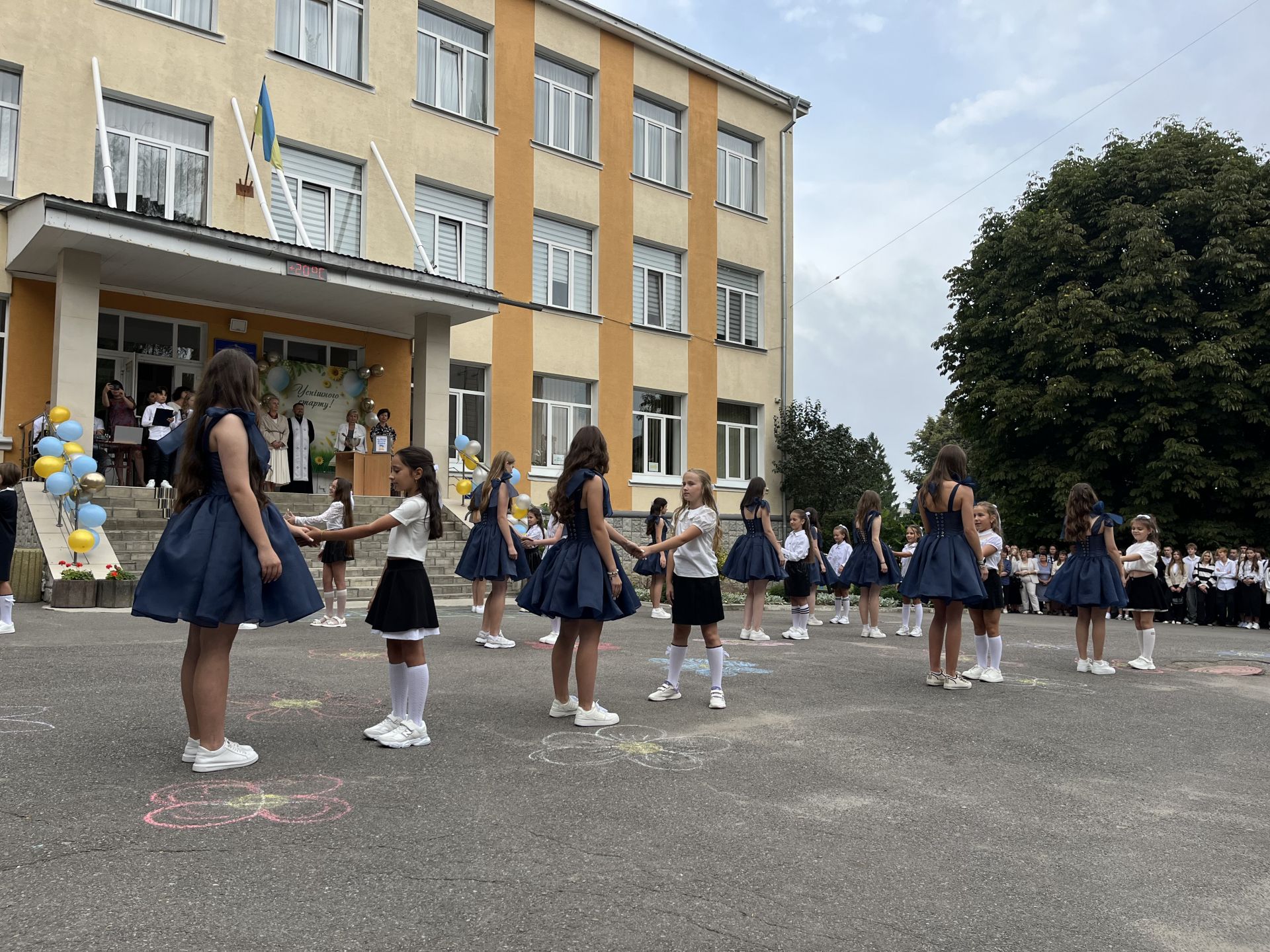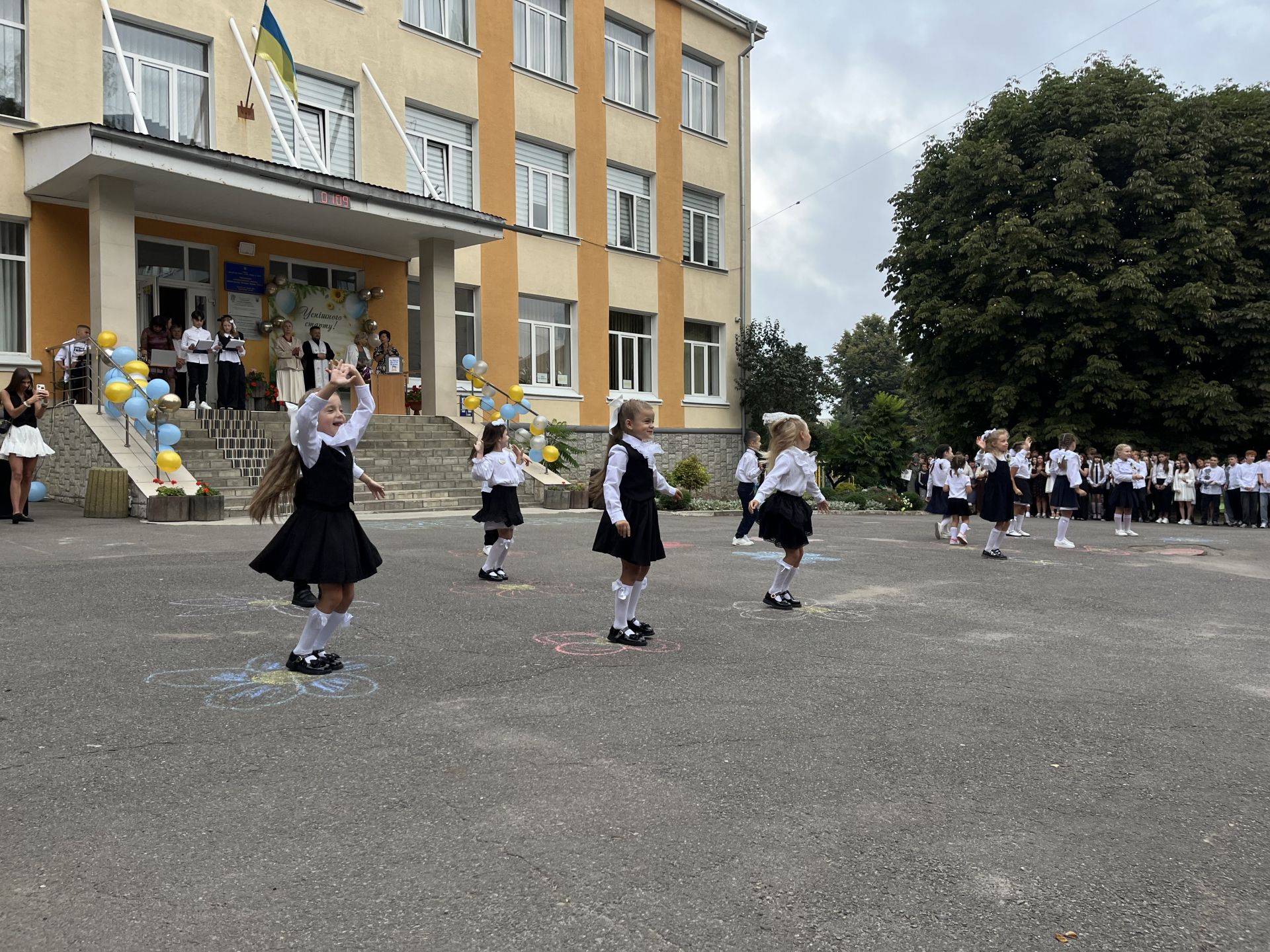 Першачків на їхню першу урочисту лінійку тут виводили одинадцятикласники. Захід організували під сього-жовті димові шашки, учні традиційно пройшли під прапором України.