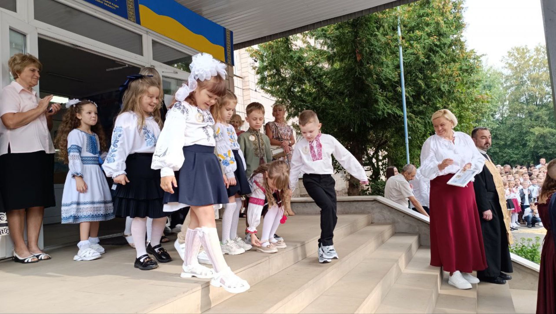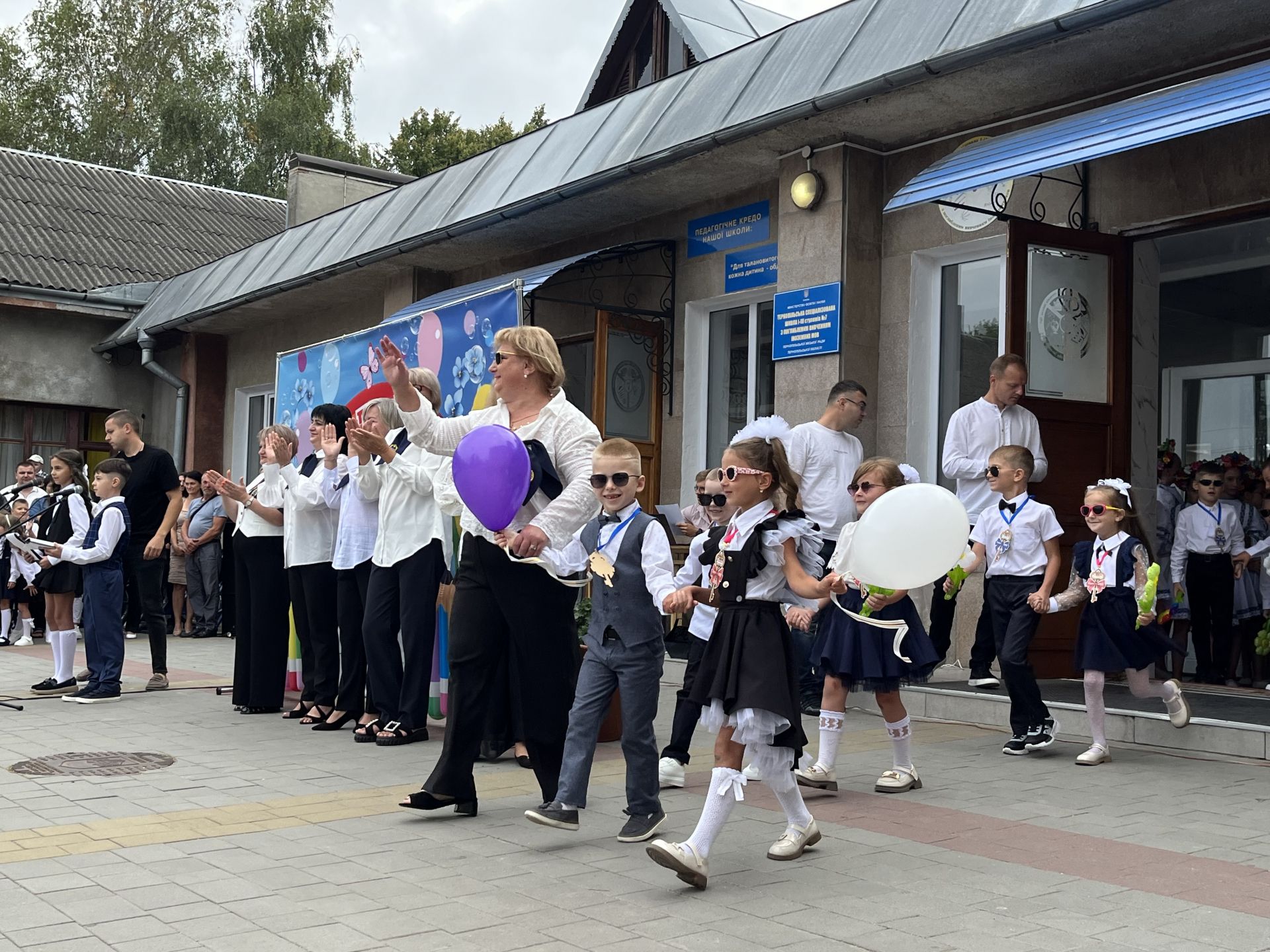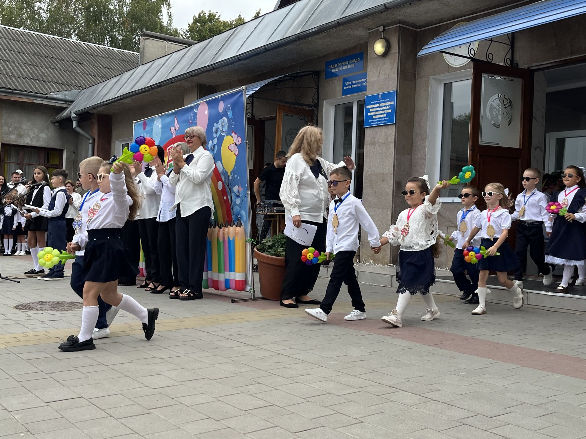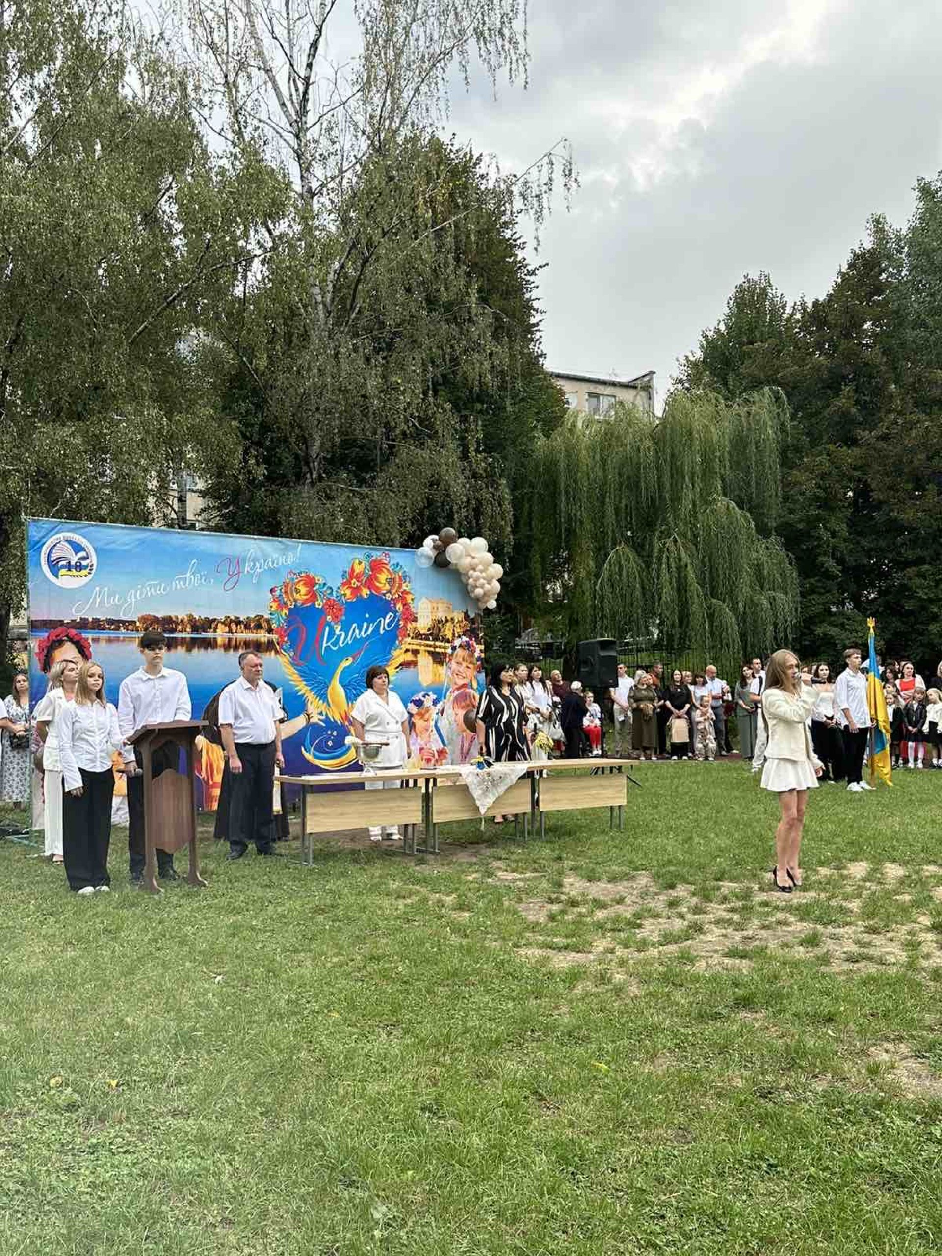 Першачків на їхню першу урочисту лінійку тут виводили одинадцятикласники. Захід організували під сього-жовті димові шашки, учні традиційно пройшли під прапором України.