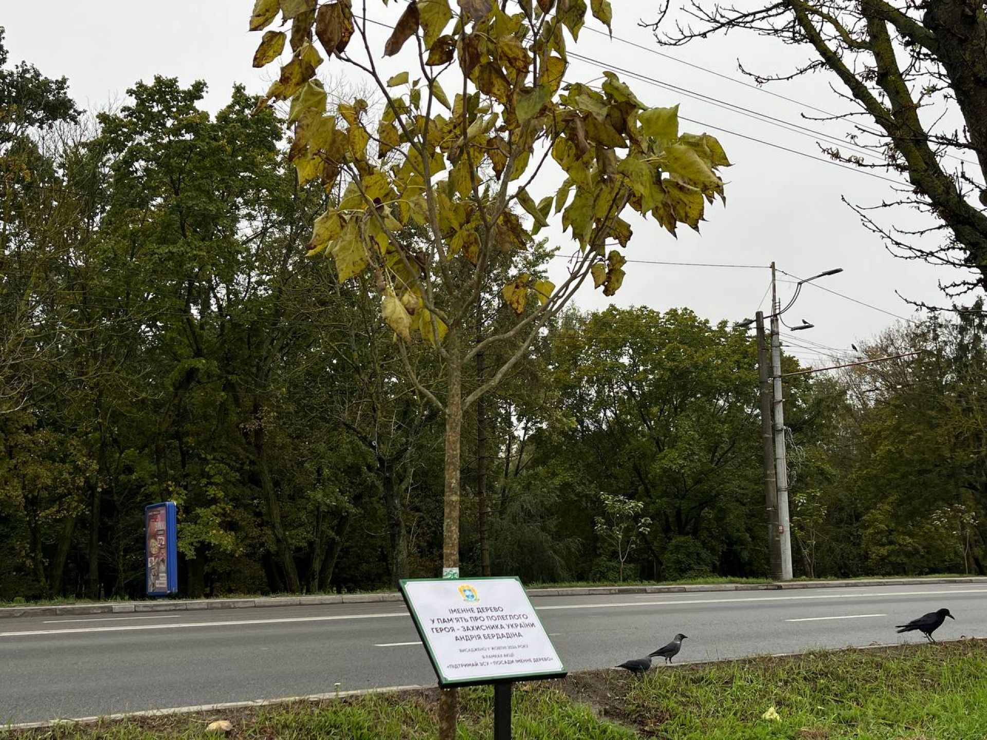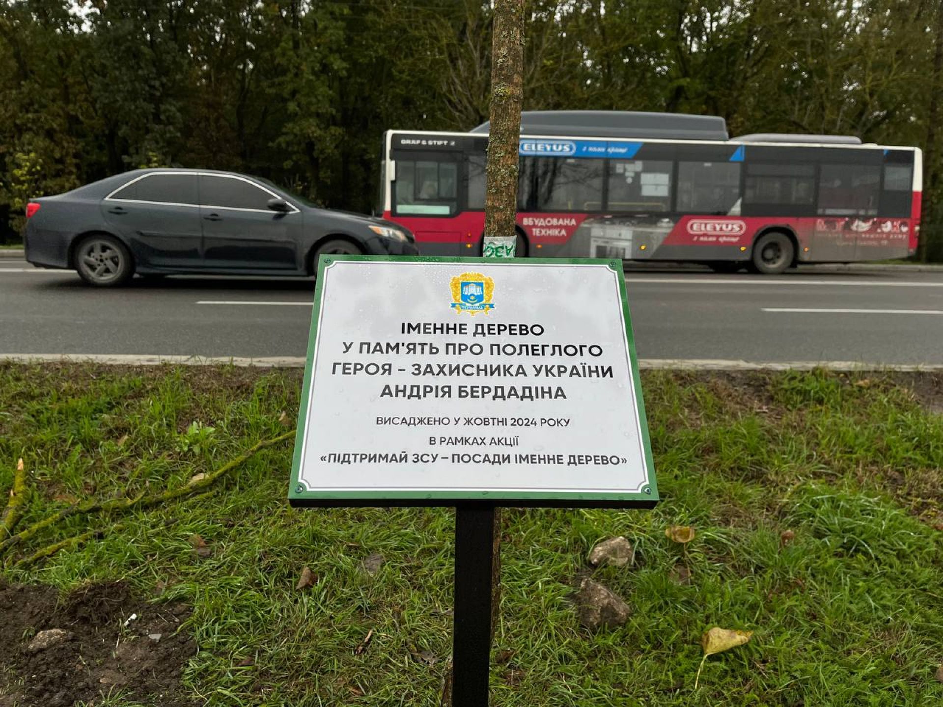 Одне з дерев висадили у пам’ять про полеглого Героя Андрія Бердадіна. 23-річний захисник загинув влітку 2024 року на Куп’янському напрямку. Він був командиром взводу розвідки першого механізованого батальйону 116 окремої механізованої бригади. Відомо, що загиблий захисник – випускник Західноукраїнського національного університету.