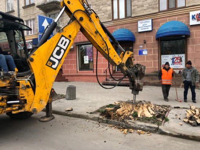 Впродовж дня, 19 квітня на вулиці Листопадовій проводилися роботи із корчування пнів старих дерев. До роботи була залучена спецтехніка. У рамках загальноміської толоки тут найближчими днями буде здійснене висадження нових дерев, а саме – червонолистих кленів.