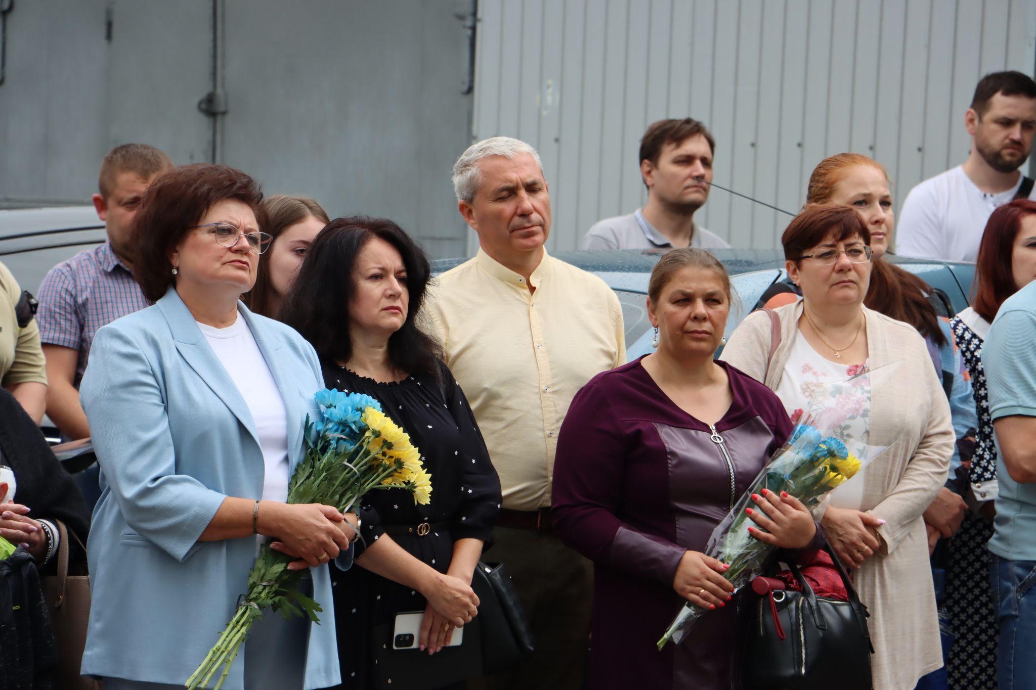 Під час відкриття дошки зібралися колеги, друзі та близькі Героя. Всіх загиблих вшанували хвилиною мовчання.