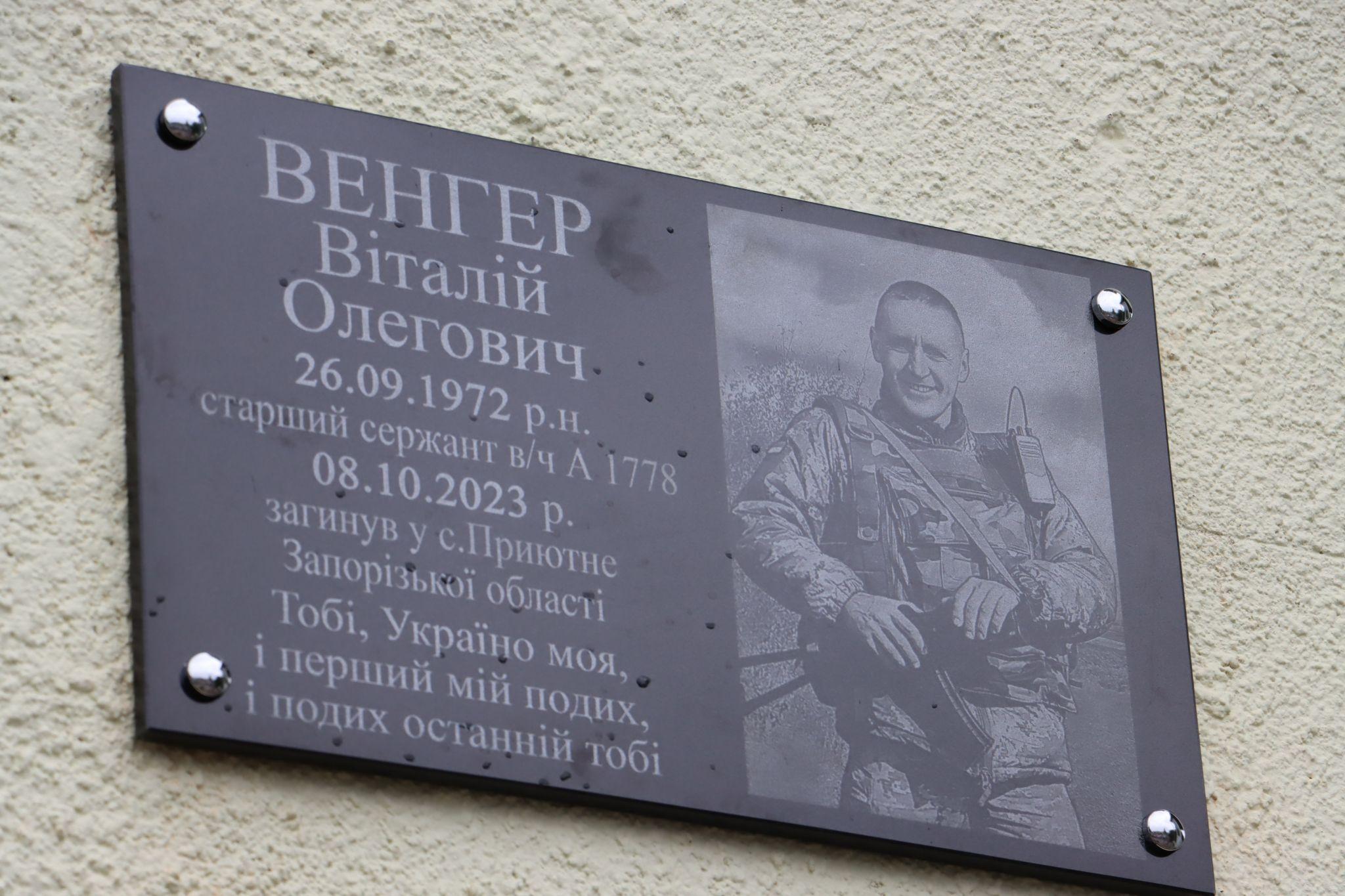 У Тернополі встановили меморіальну дошку загиблому Герою Віталію Венгеру