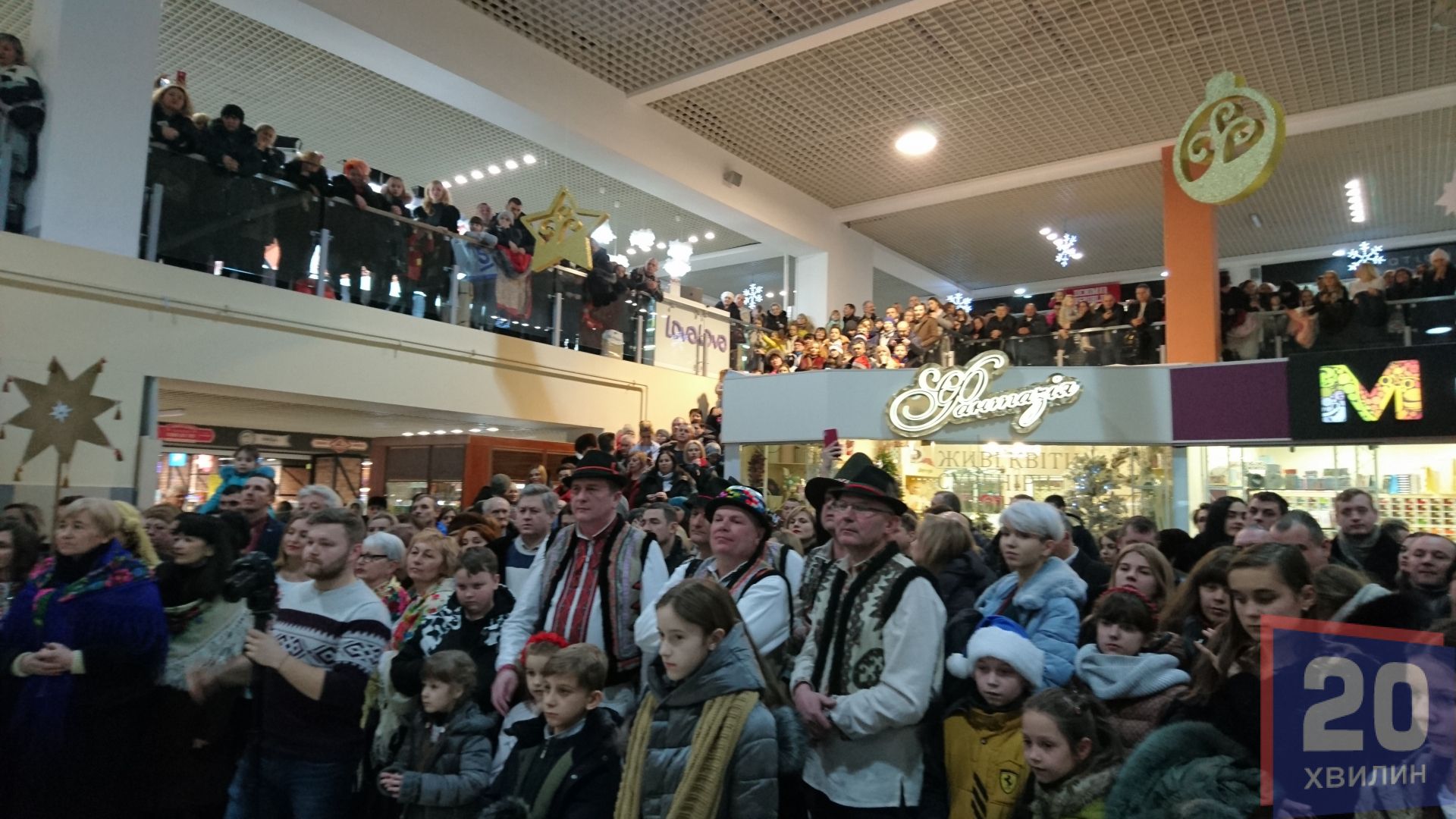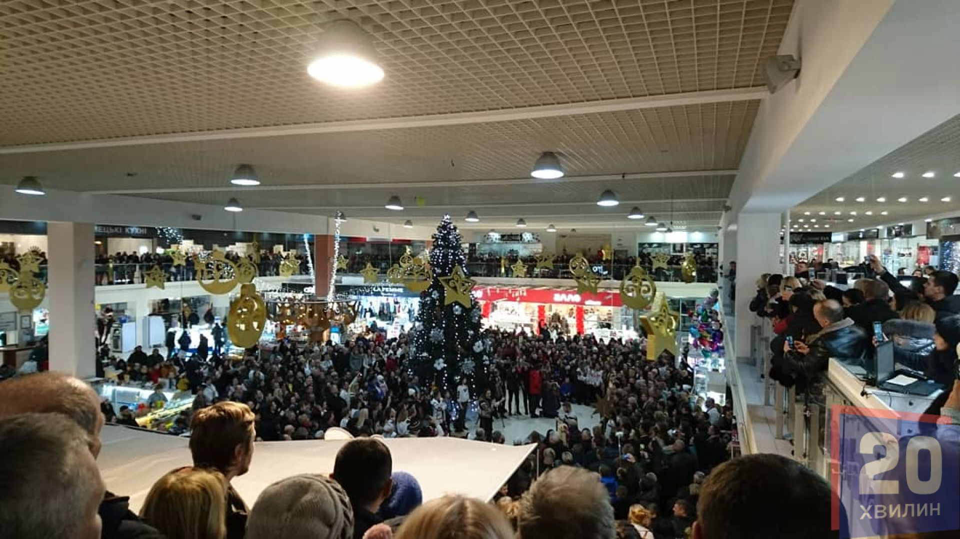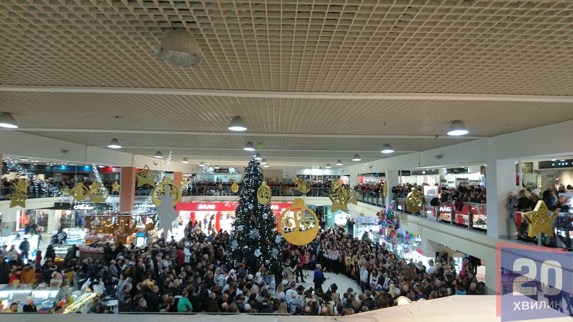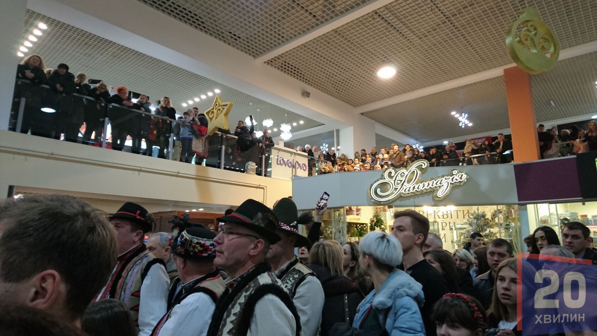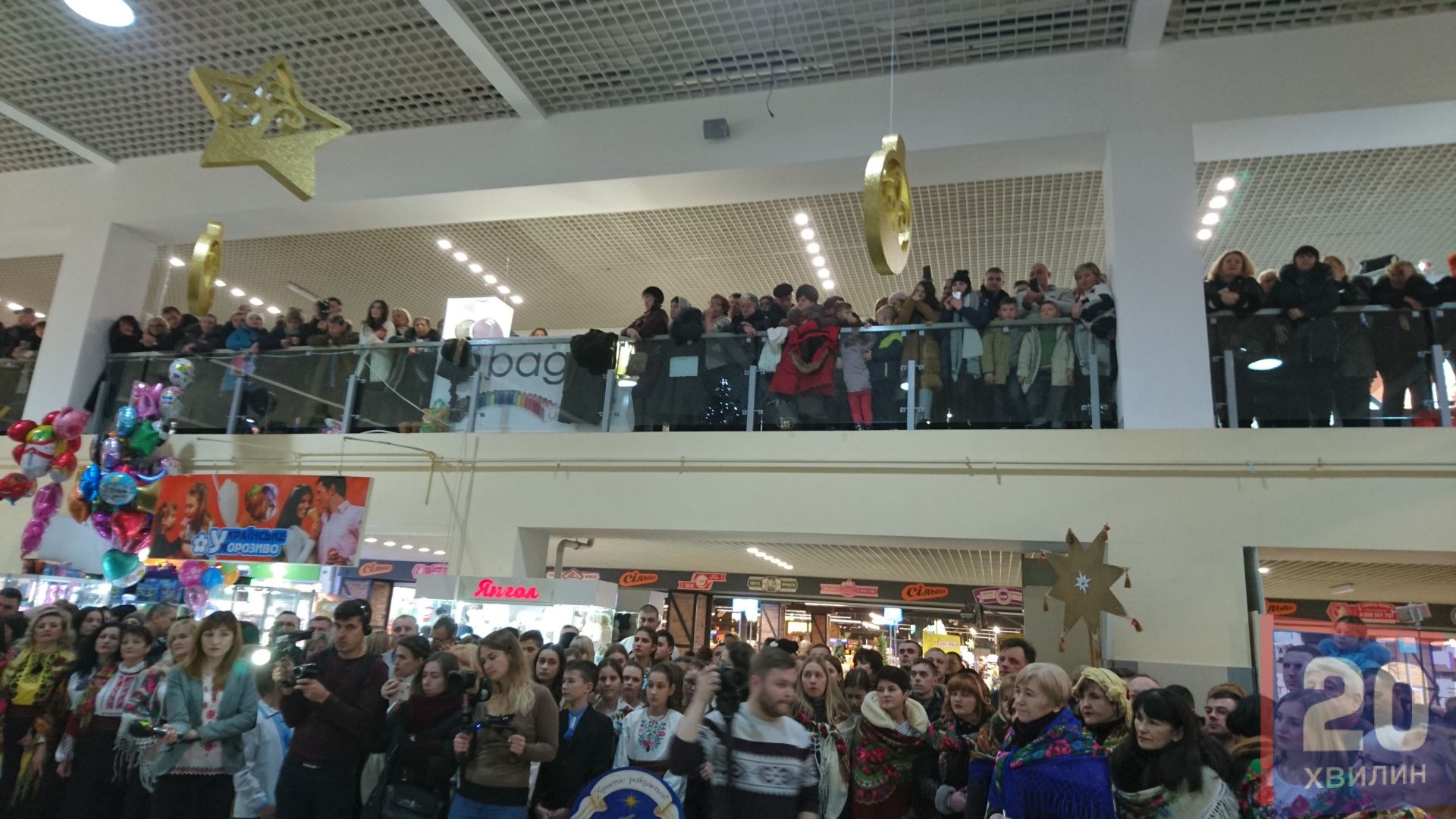 Перед початком спільної коляди гурти репетирували, в холі "Подолян" біля ялинки збиралися люди. Одні із учасників рекордного флешмобу гурт "Червлені шнурівки".