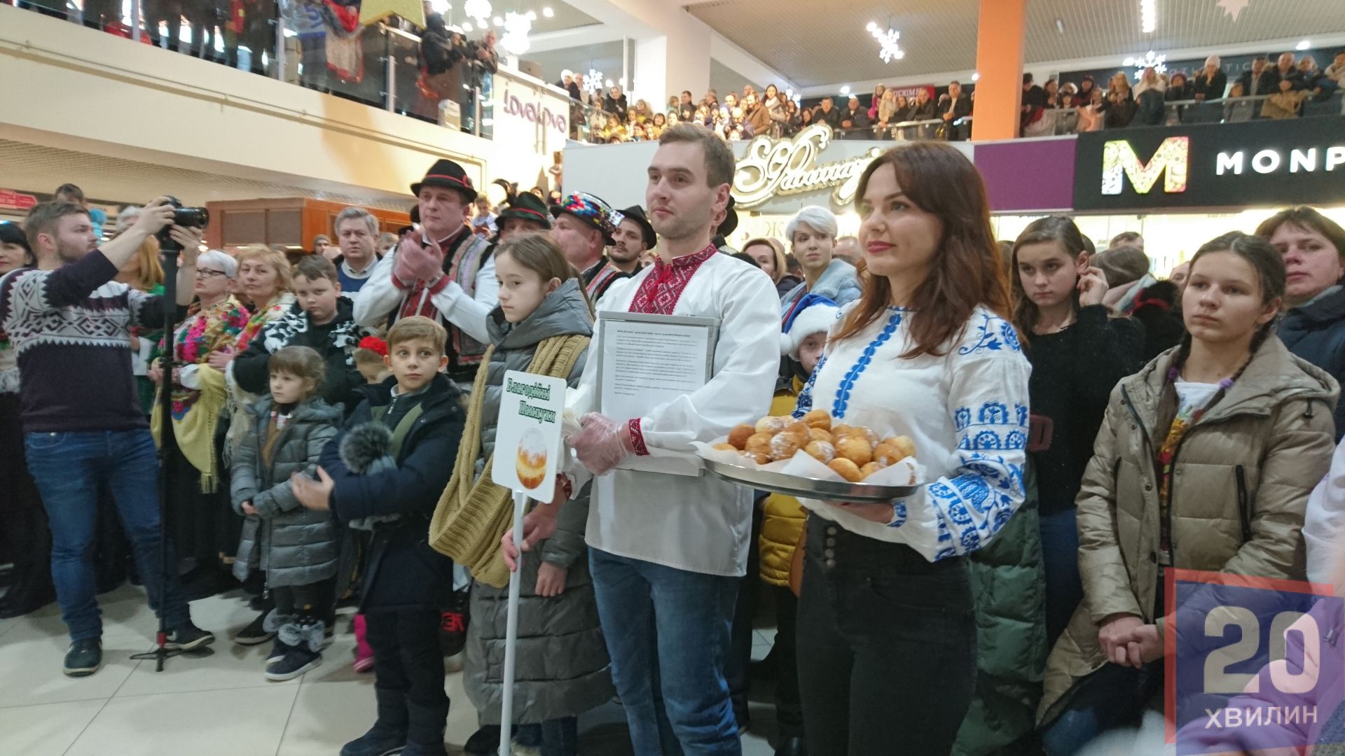 Флешмоб мав і благодійну частину. Організатори проекту "Життя без меж" збирали кошти для дітей з інвалідністю. Поки в холі усі колядували, торгово-розважальним центром ходили волонтери із пампухами, які міг скуштувати кожен охочий. Грошей за них не просили, але благодійні внески віталися.