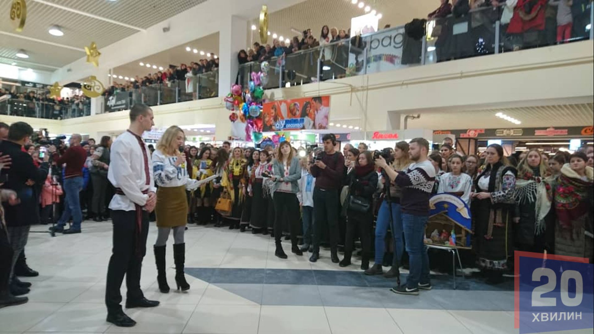 Такий флешмоб проводять вдруге. Як зазначив один із організаторів заходу Андрій Костюк, флешмоб присвячується українцям, яких доля з різних причин розкидала по всьому великому світу. В 2018-ому рекорд був - 524 людини. Начальник управління та культури Олександр Смик додає, усіх присутніх під час цьогорічного флешмобу порахують і через чотири дні скажуть точну кількість учасників спільної коляди.
