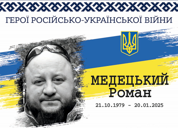 Медецький Роман Ігорович – старший солдат, стрілець-оператор стрілецького відділення стрілецької роти військової частини А ****, позивний «Малий». Народився 21 жовтня 1979 року в місті Тернополі. Навчався у Тернопільській школі № 20. До початку війни працював в будівельній сфері. Роман Медецький добровольцем став на захист Батьківщини ще на початку повномасштабної війни. Герой помер 20 січня 2025 року у селі Новомиколаївка Дніпропетровщині внаслідок захворювання після перенесеної контузії - гострої серцевої недостатості. Похований на Пантеоні Героїв Тернополя, що на Микулинецькому кладовищі. Посмертно удостоєний звання «Почесний громадянин міста Тернополя».