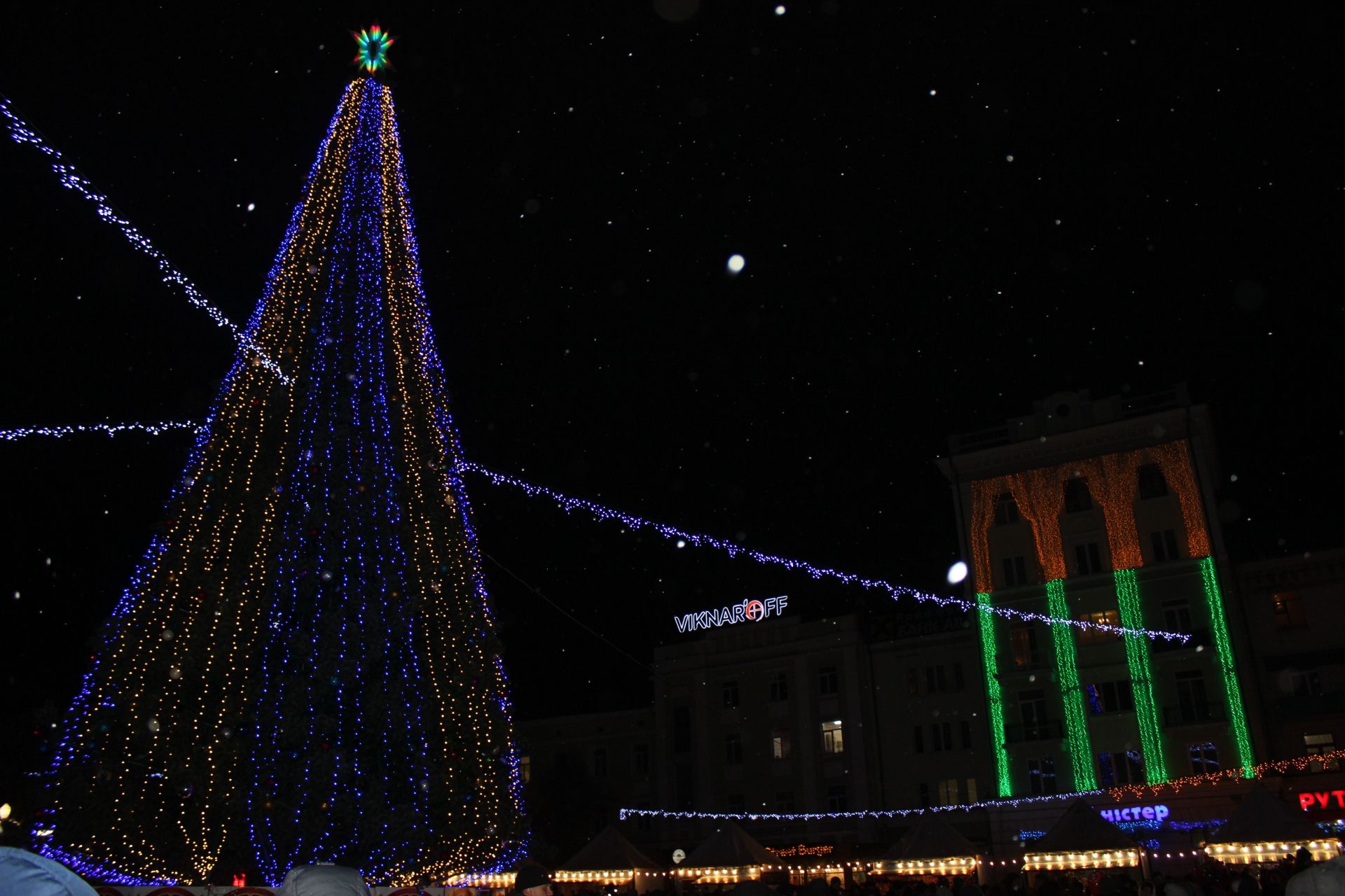 Спочатку священослужителі всіх конфесій урочисто освятили шопку з ягнятами, а потім на рахунок "три" урочисто засвітили штучну ялинку, висотою майже 19 м.