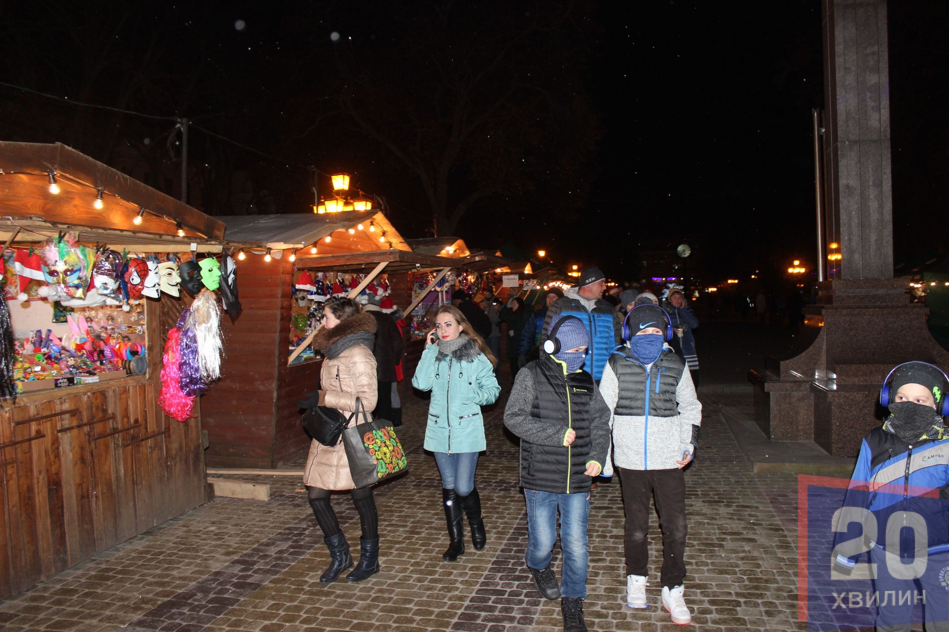 Після закінчення урочистостей тернополяни вирушили розважатися до "Зимового містечка" на Театральній площі. Зокрема цьогоріч привезли чимало атракціонів з Європи: дітки катаються на паровозиках та карусельках, а от серед молоді найбільша черга вишикувалась до атракціону "Клоун". Також в торгових точках продають гарячі напої, їжу, новорічні прикраси та іграшки.
