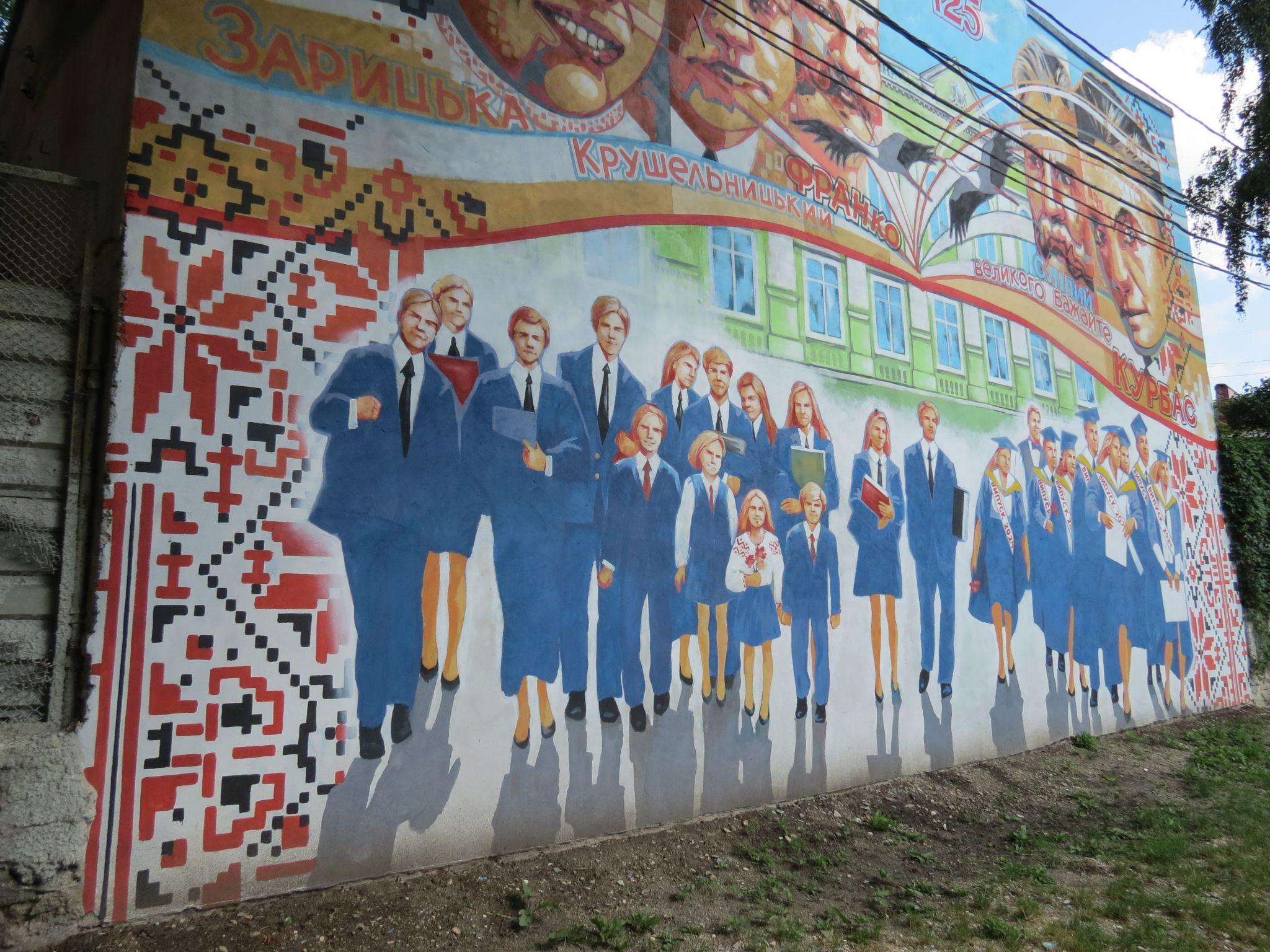 Новий мурал можна побачити на фасаді будівлі біля спортивного майданчика Тернопільської Української гімназії імені Івана Франка. Його створили на честь річниці заснування закладу та майбутніх випускників.