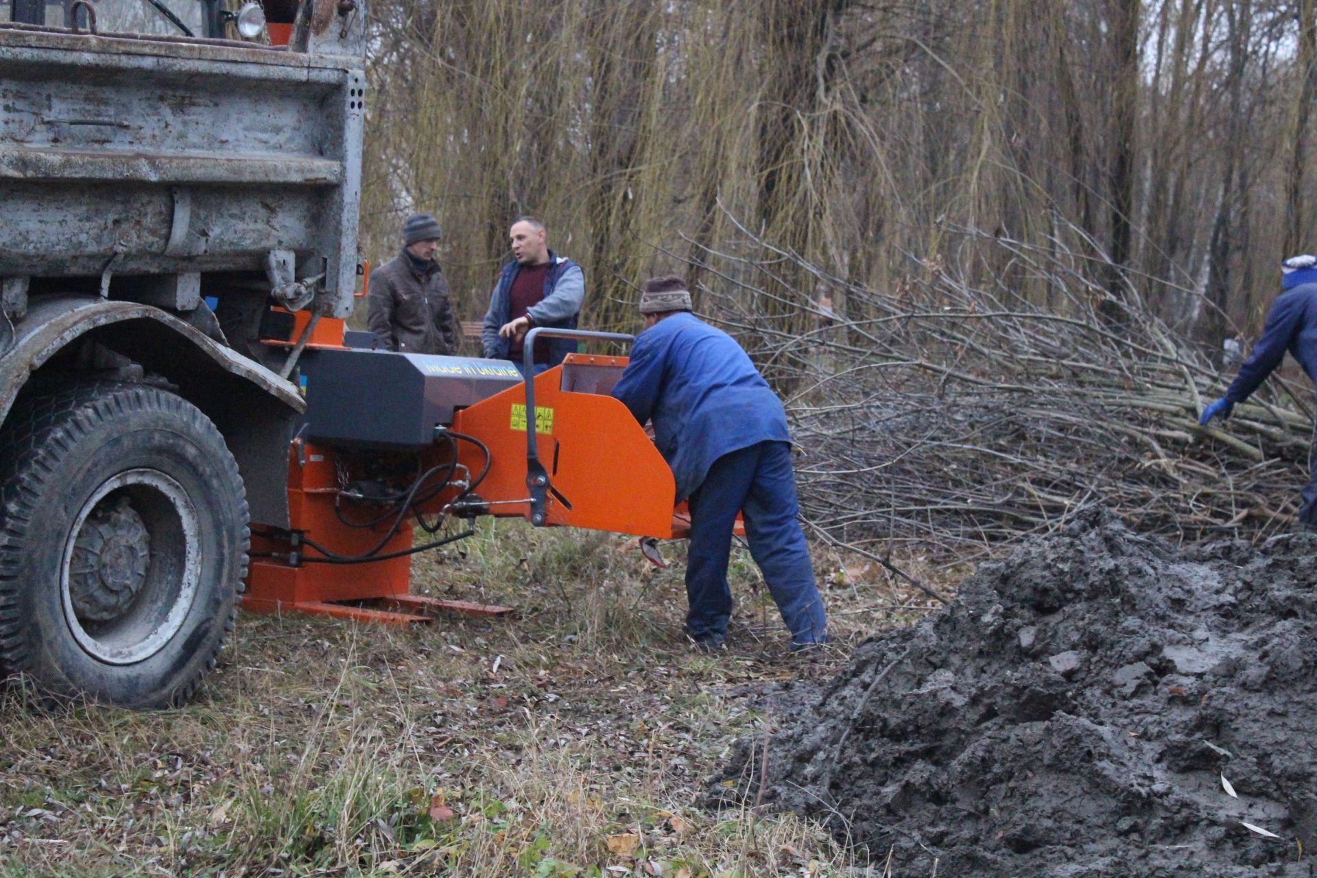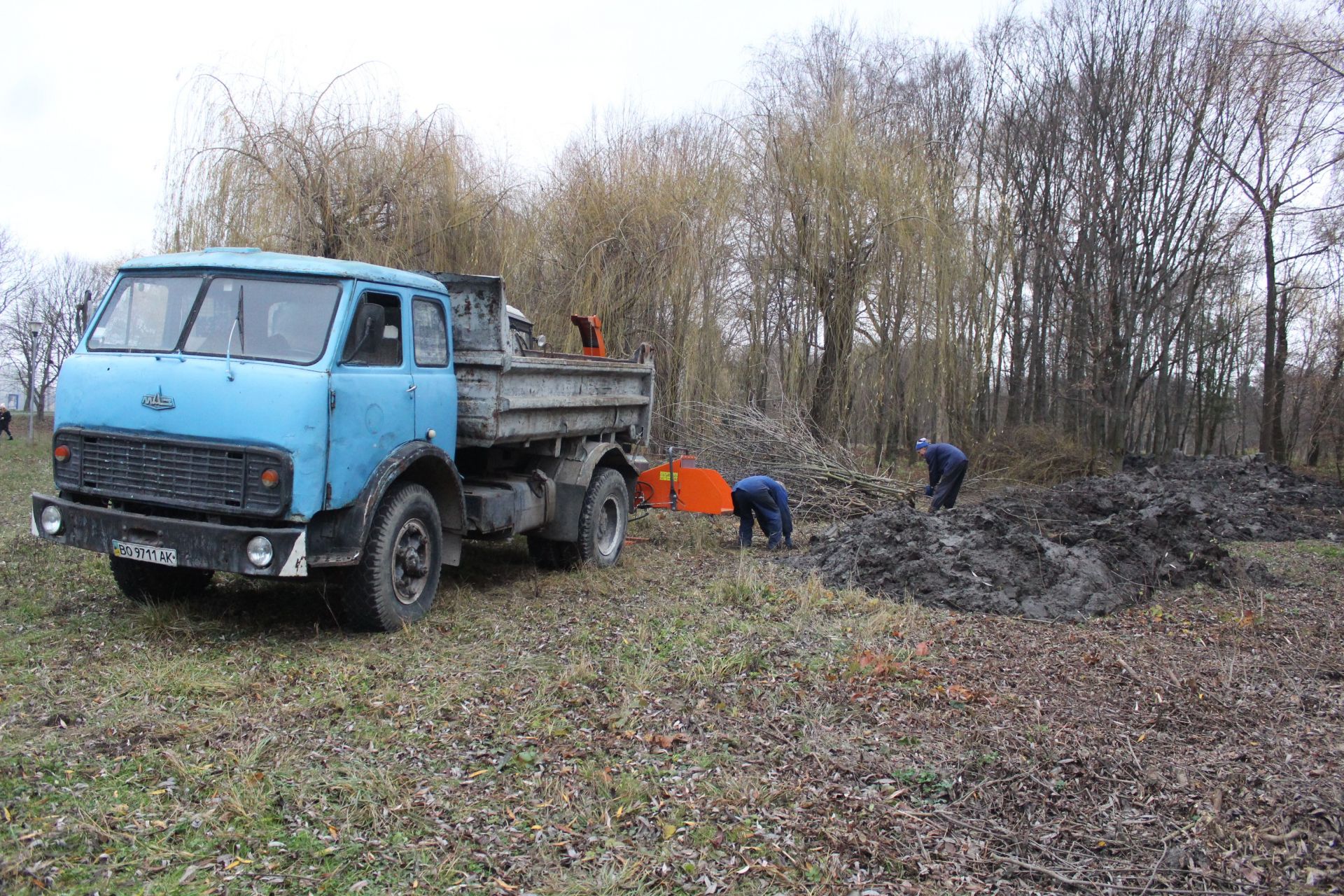 Роботи наразі тривають. Щоб не пошкодити бруківку важкою технікою, яка вивозить зрізаний самосів, чагарники спершу дроблять. Так можна вивезти значно більше деревовідходів за раз.