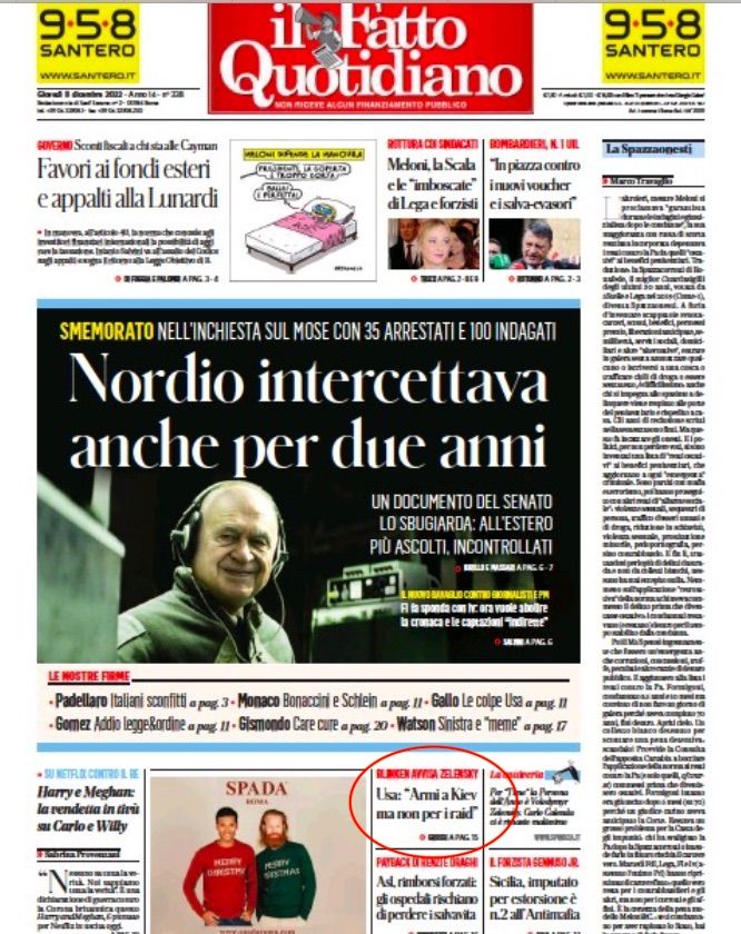 «Il Fatto Quotidiano» — «Блінкен попереджає Зеленського: Зброю Києву дадуть, але не для нападу
