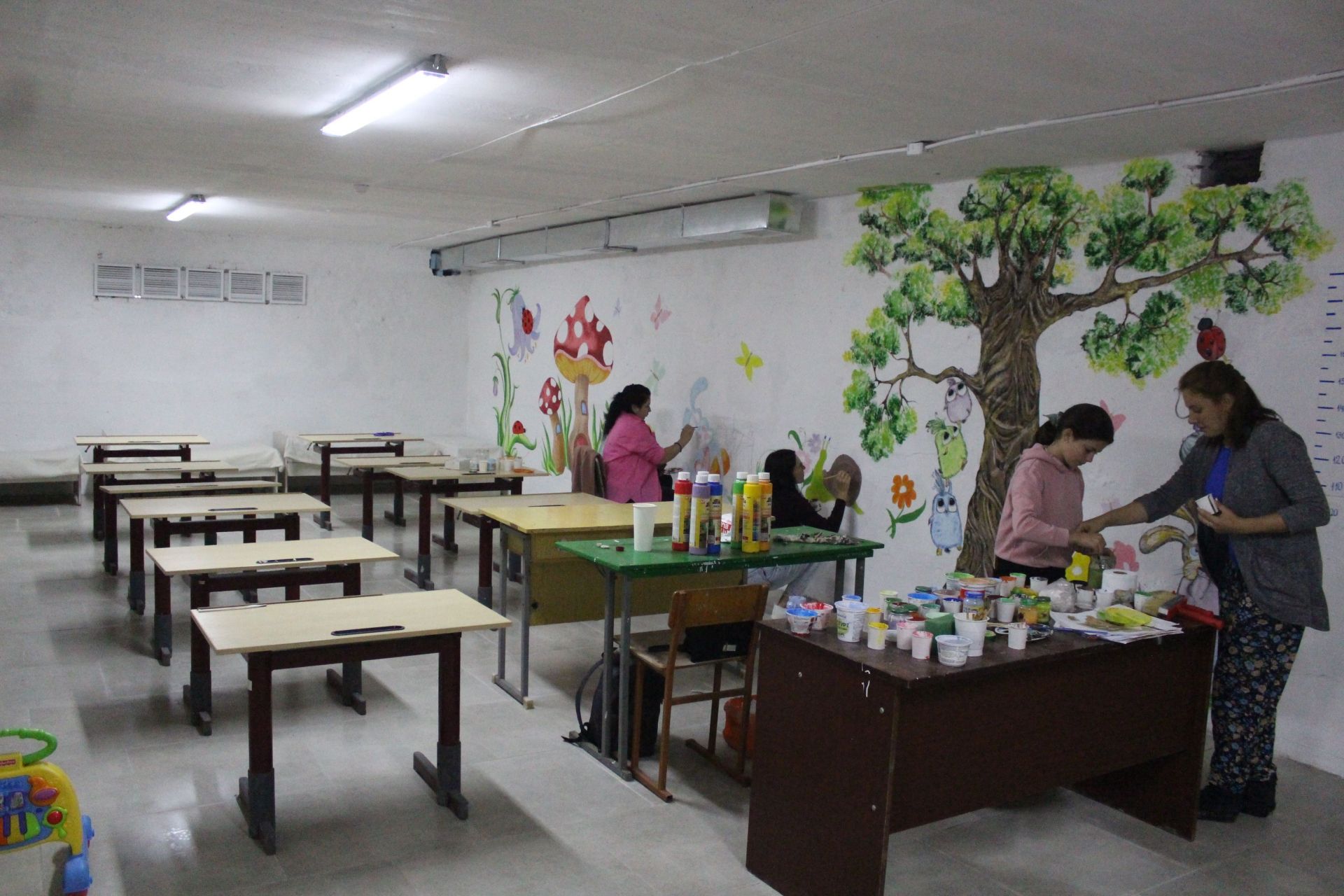 Щоб дітям було комфортніше та спокійніше – стіни розмальовують. Керує процесом вчителька образотворчого мистецтва, а допомагають їй інші вчителі та учні.
