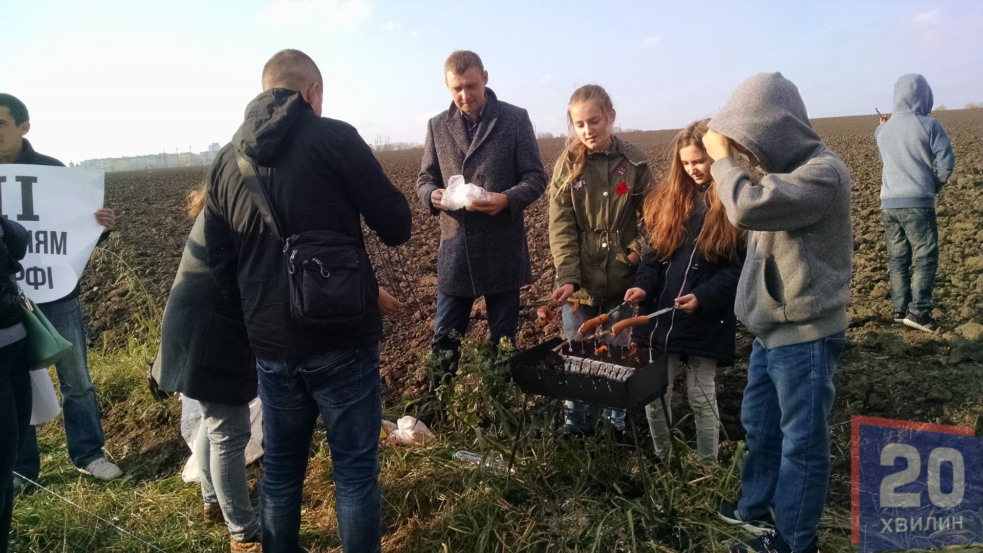 Кілька десятків протестувальників зібралися в Байківцях сьогодні, 21 жовтня, на анонсованій в соцмережах акції протесту проти торф'яних котелень "Барбекю з мером". Люди принесли бочку з торфом, а також мангали, м'ясо, ковбаски.