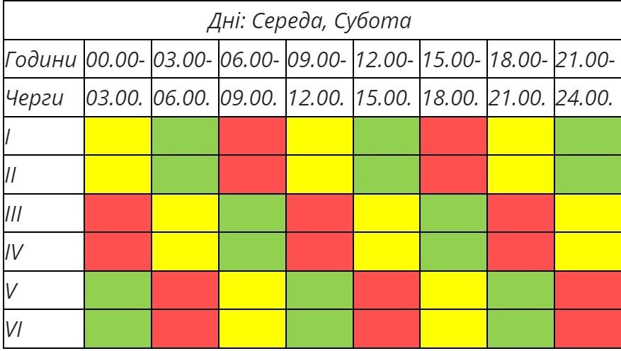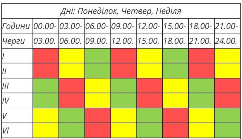 | жовтий колір - можливе увімкнення електроенергії | |||||||||||