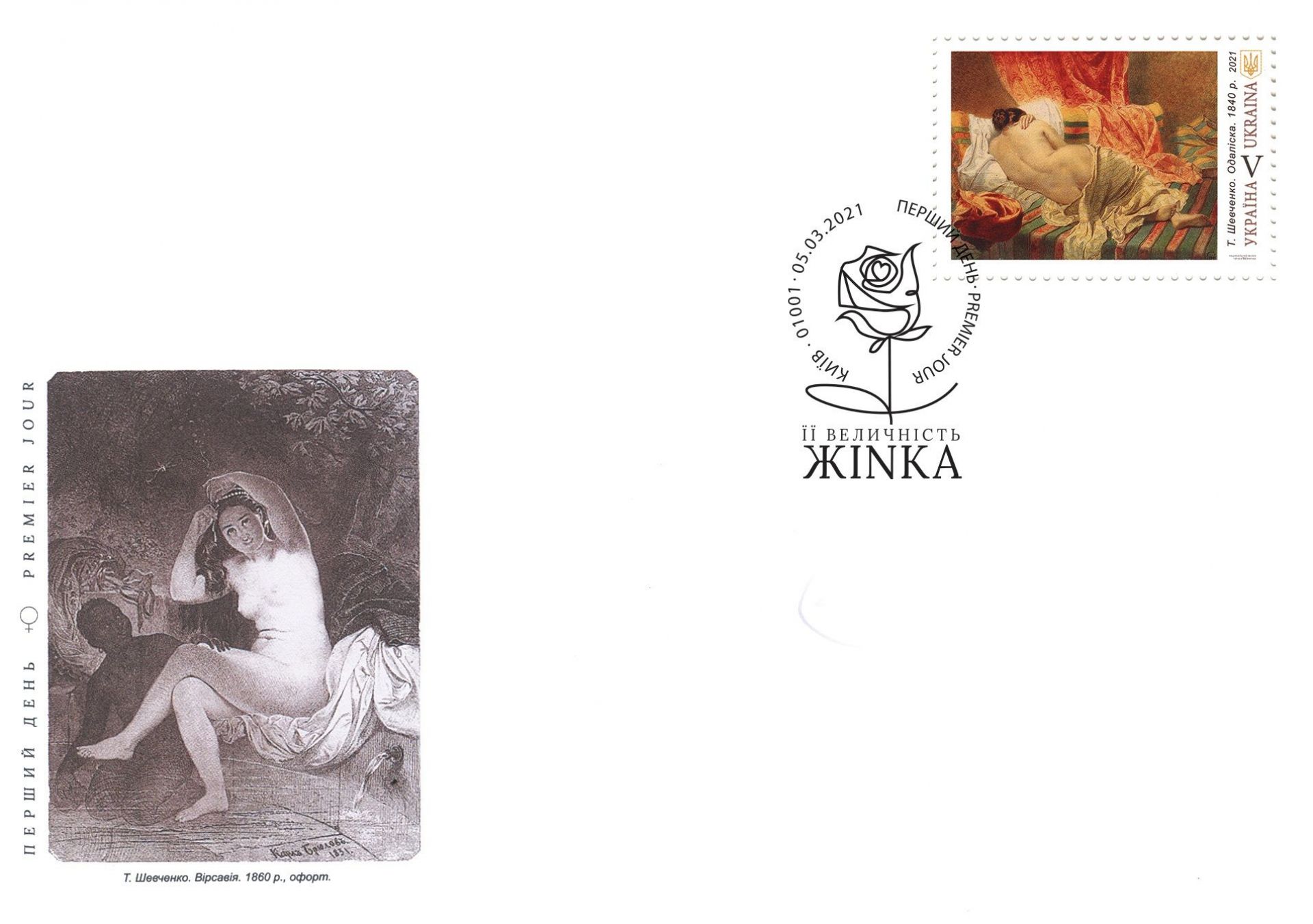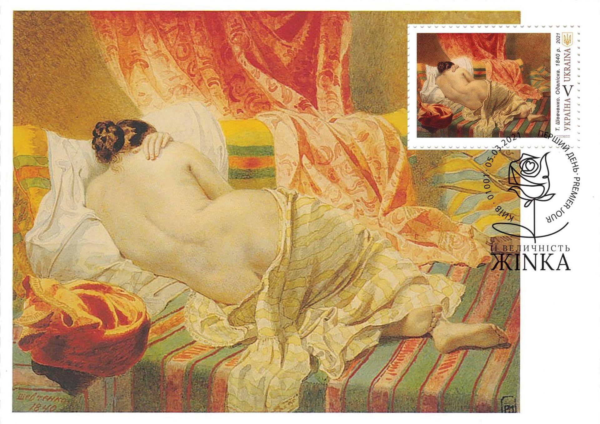 Одну з поштових марок прикрашає картина Тараса Шевченка «Одаліска», написана у 1840 році у Петербурзі. На конверті до випуску представлена ще одна робота Тараса Григоровича – «Вірсавія», написана 1860 року.