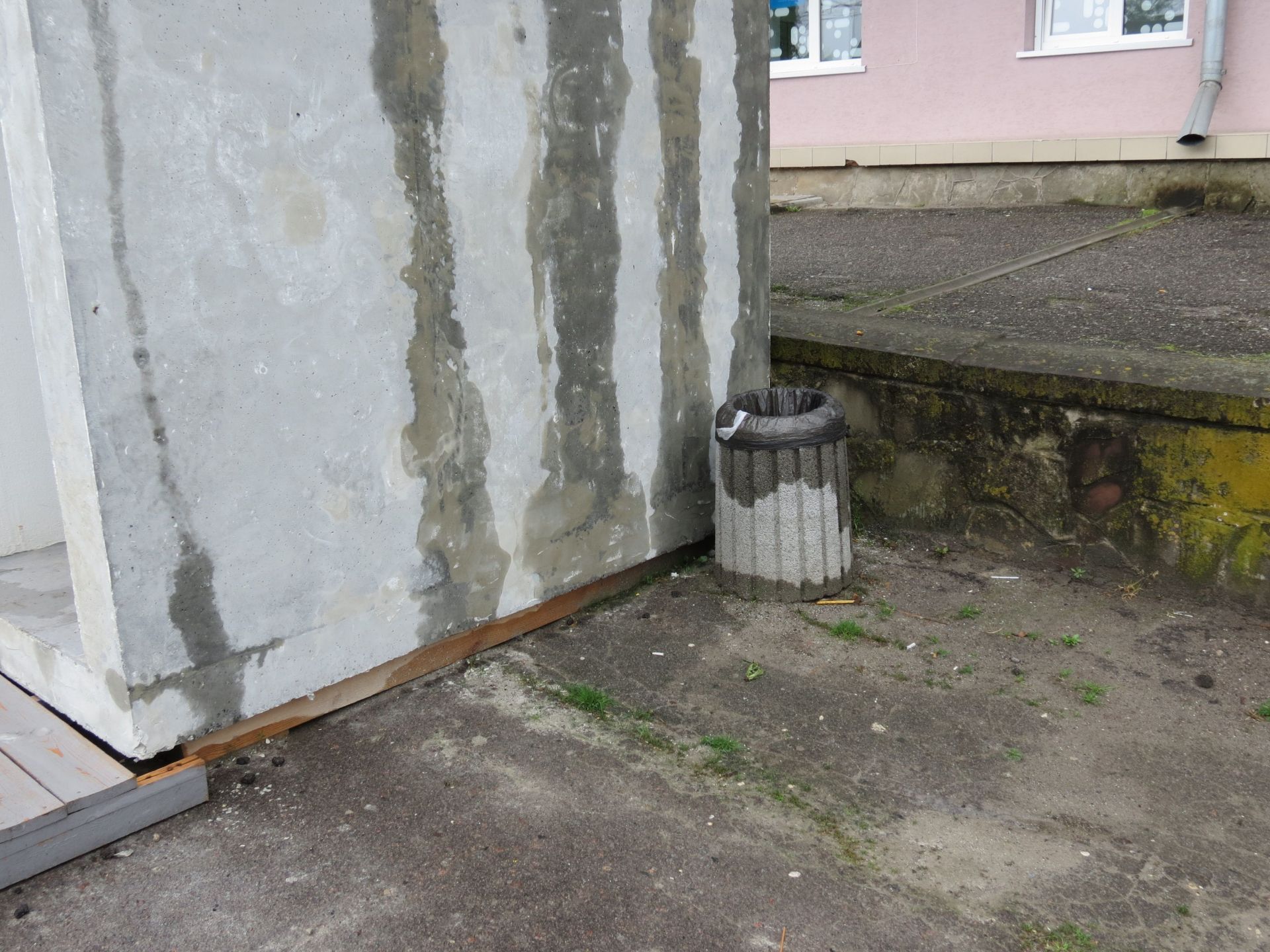 Зовні укриття поштукатурили, але ще не розфарбували. Нагадаємо, що штукатурка зі стін вже за кілька місяців після встановлення захисної споруди почала облущуватися. Відновити укриття міська рада зобов’язала виробника.