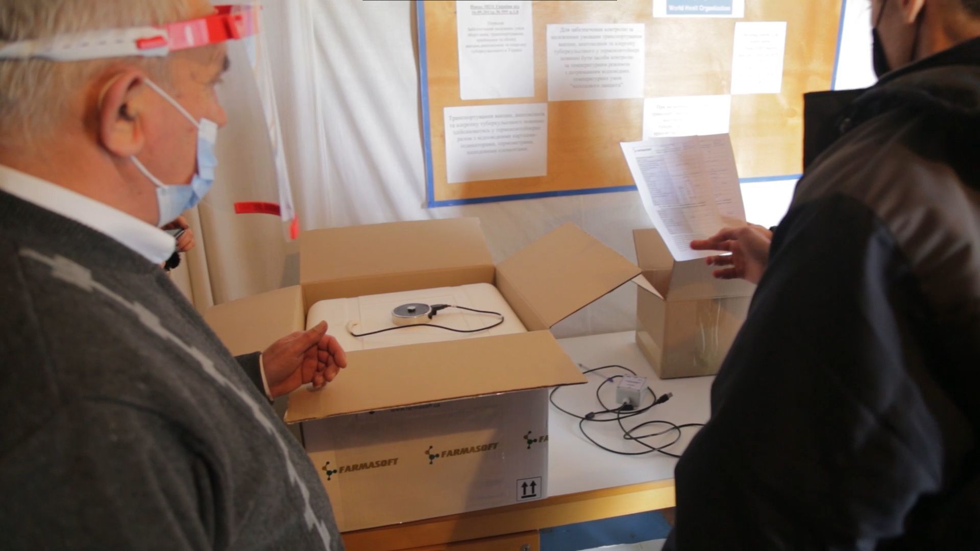 Вакцину доставили з дотриманням температурного режиму. В спеціальному контейнері для транспортування обладнано термодатчик, який фіксує температуру всередині. Доставили препарати при –79,6 градусів. Підтримує температуру в контейнері сухий лід, розповіла Тетяна Скарлош.