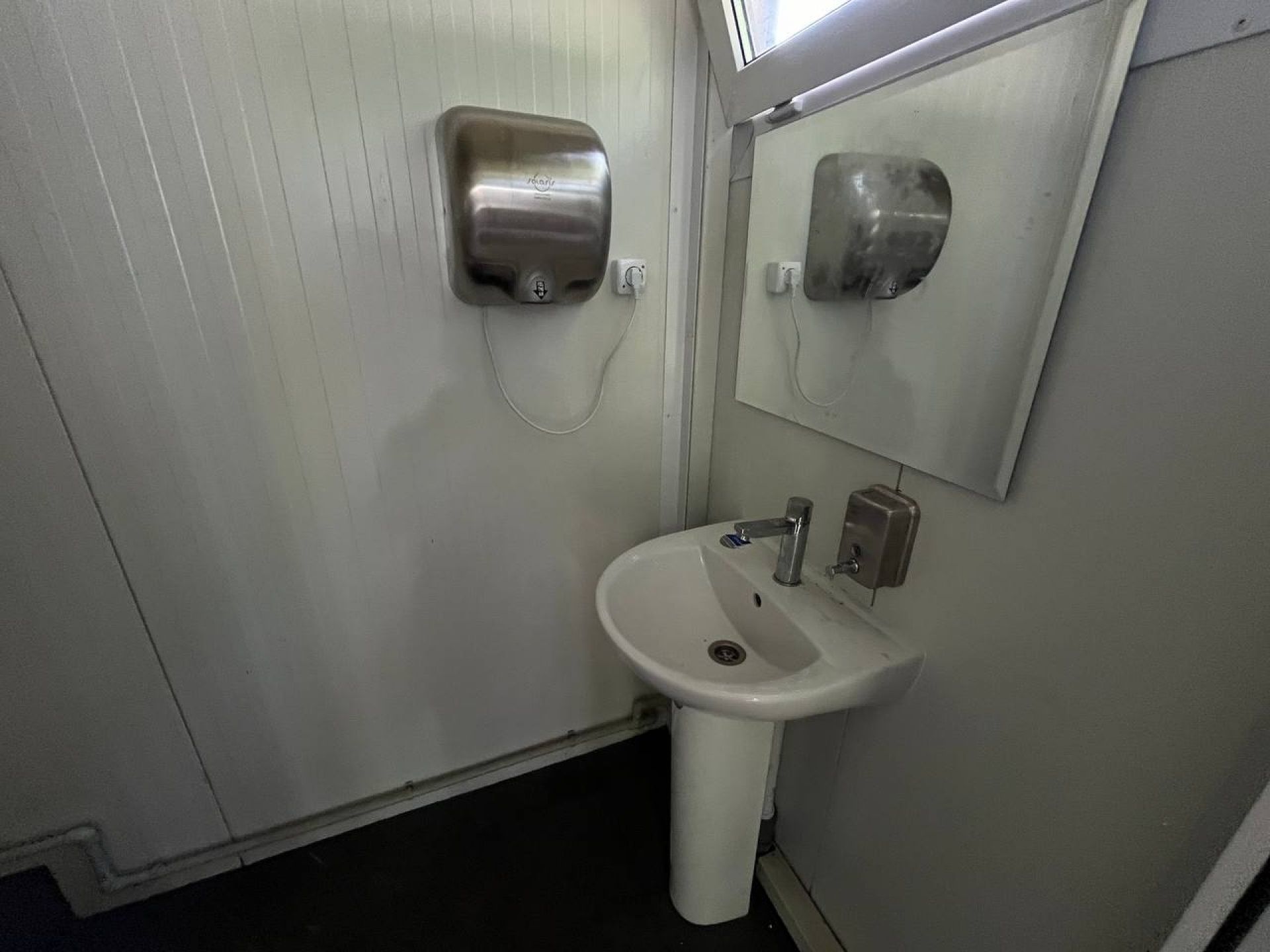 Отож, у чоловічому туалеті є дві кімнати з унітазами, умивальниками, дзеркалами, сміттєвими баками та електричною сушкою. Всі прилади працюють, лише одне дзеркало вже розбили, а також немає мила та туалетного паперу.