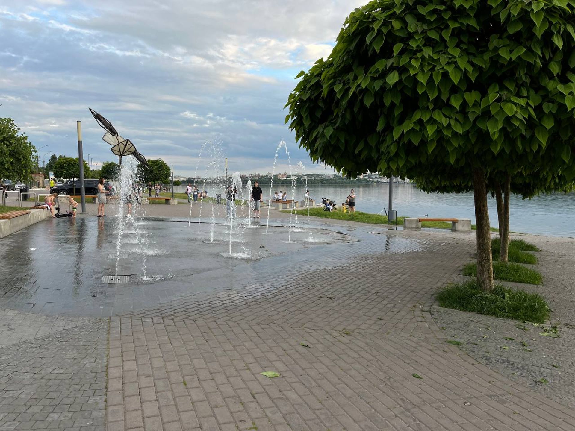Територію цього пляжу журналісти «20 хвилин» відвідали четвертого червня о 12.28. Людей тут також було чимало, особливо батьків з малими дітьми. Ми обстежили як стару, так і оновлену зону.