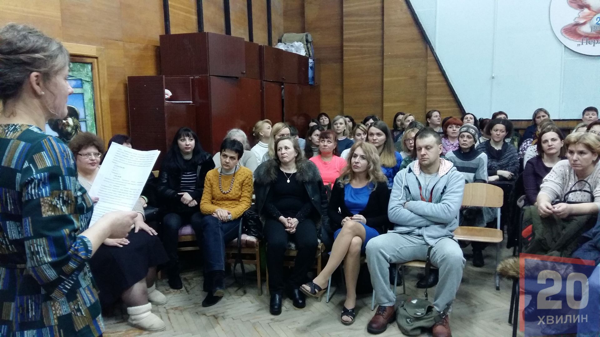 На збори трудового колективу прийшли і батьки дітей, які зараз тут навчаються, і навіть активні батьки випускників школи, депутат міської ради, журналісти, запрошена на прохання батьків юрист.