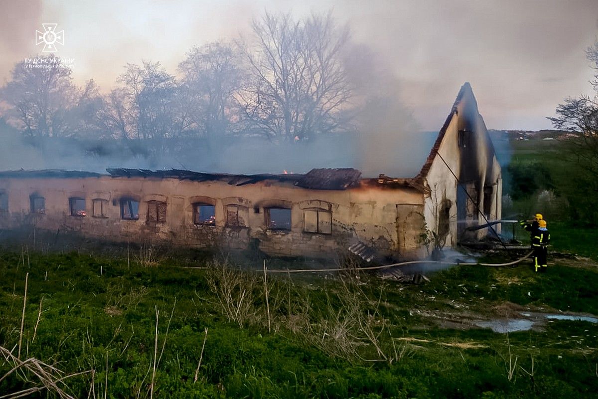 Ввечері 23 квітня у с. Стегниківці горіла господарська будівля з тюками сіна. Для ліквідації пожежі залучили чимало рятувальників.