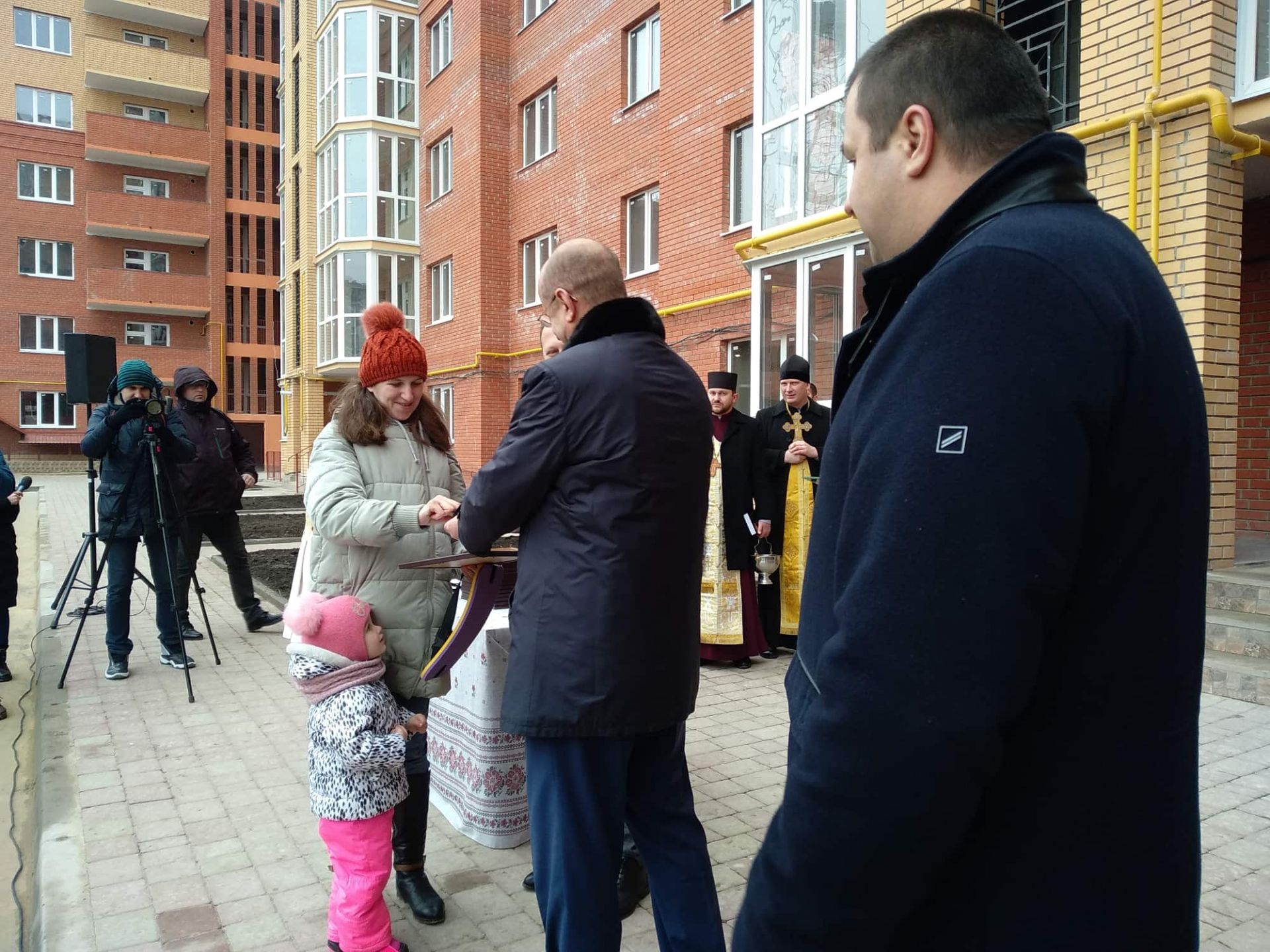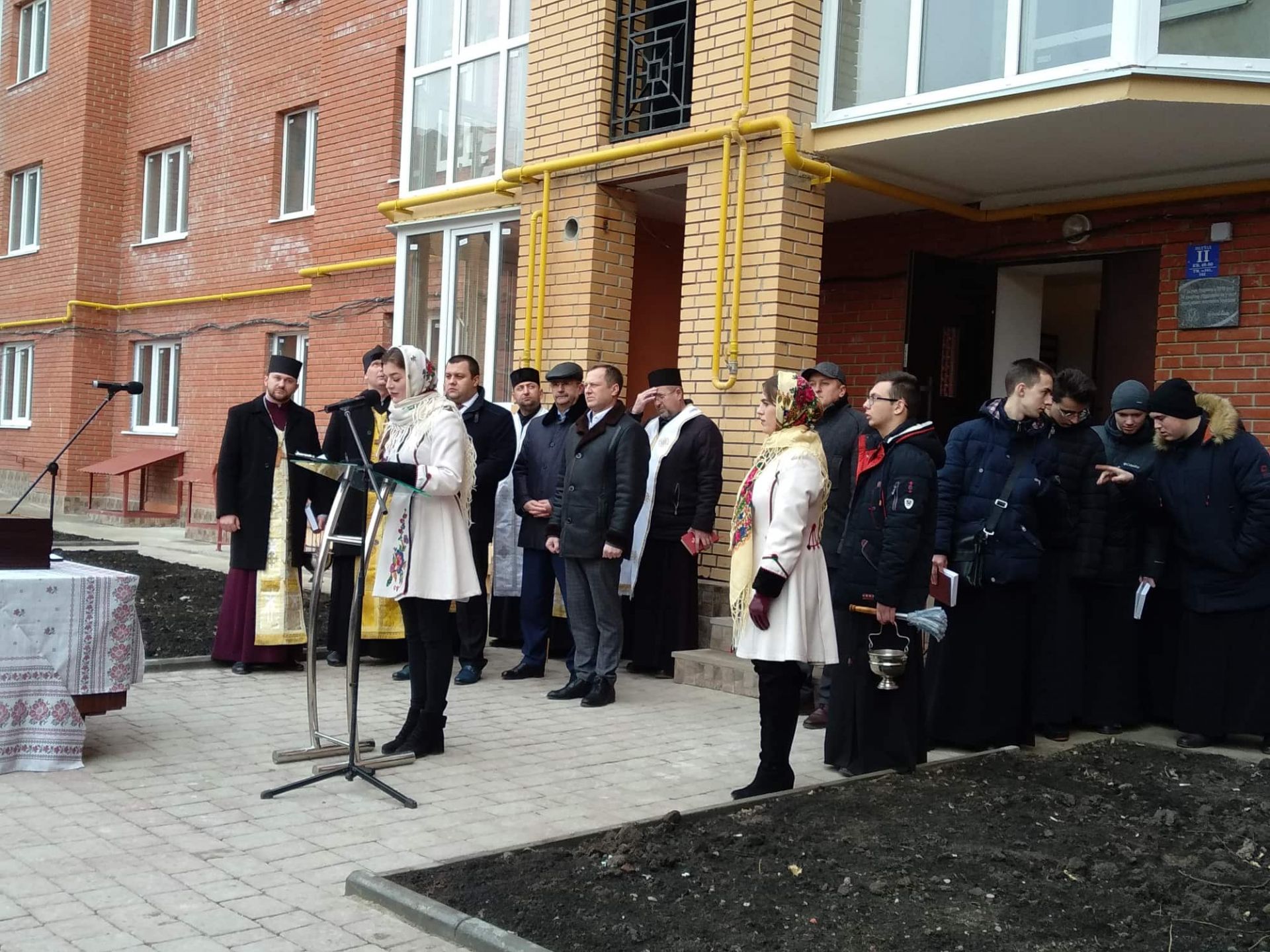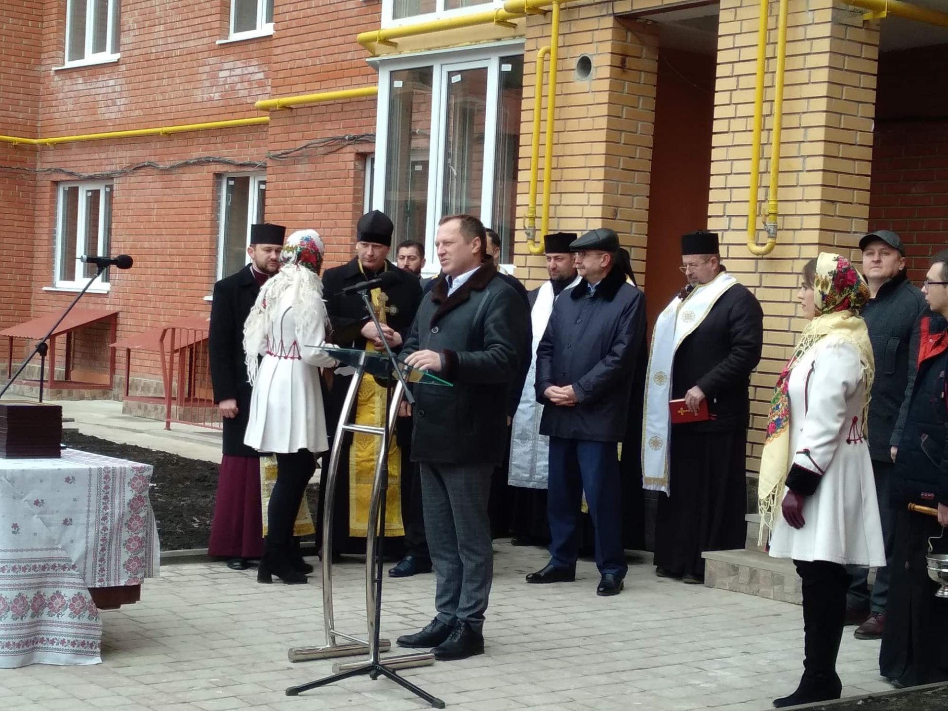 Новий житловий будинок розташований на вулиці Тарнавсього. На початку заходу представники духовенства провели спільну молитву. Та освятили будинок.