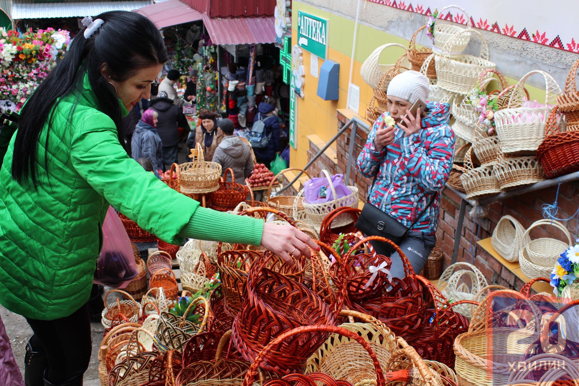 - Є різні кошики. Ціна від 150 гривень. Хоча, може бути і за 100 гривень. А є дорожчі, навіть по 500, - каже продавчиня пані Люба. - За кошиками люди почали приходити ще у неділю, 25 березня. Погода уже покращилась, то є великий попит.