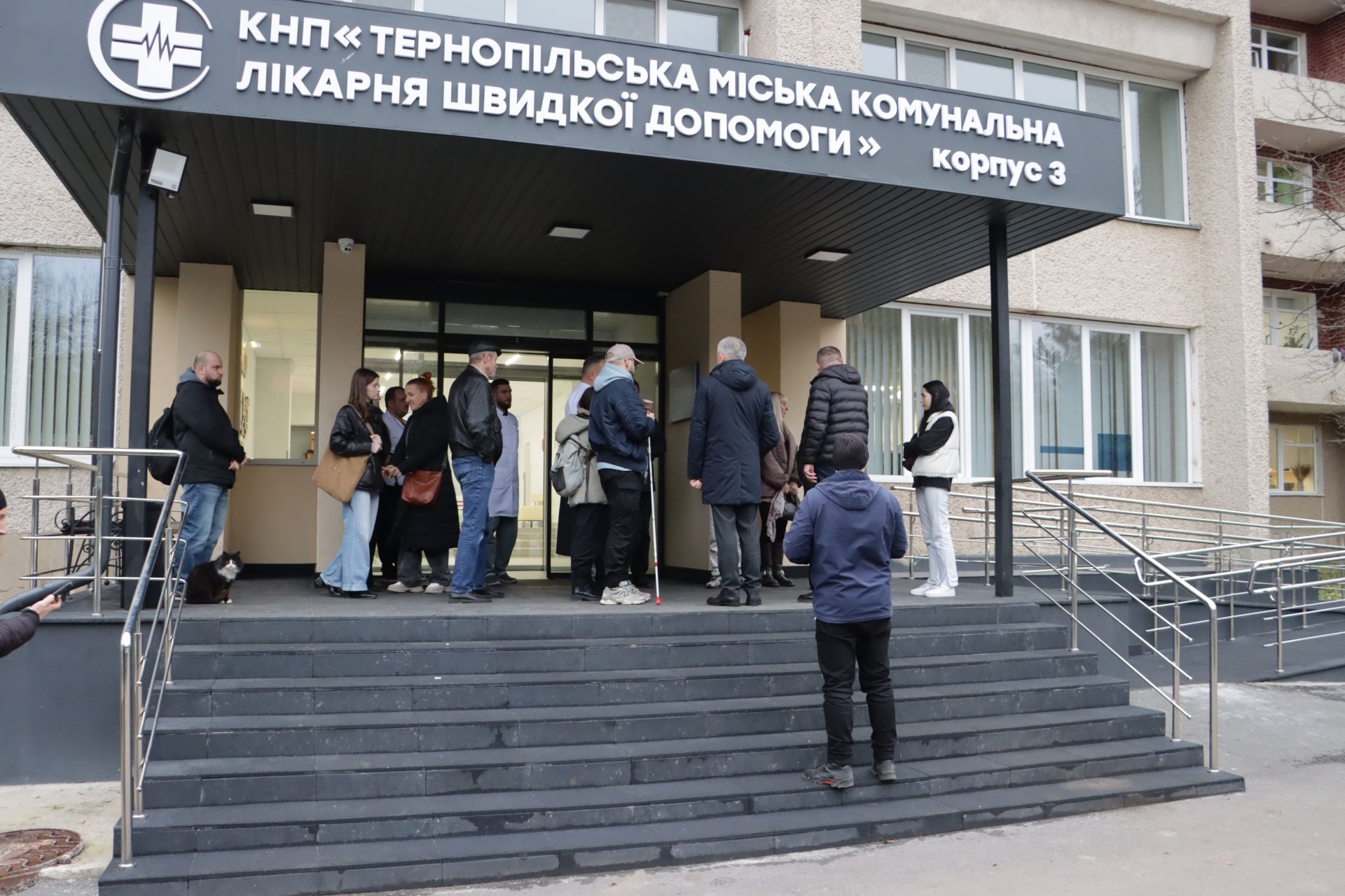 Перевірити якість робіт до Тернополя приїхав ветеран Андрій Соловко. Він втратив кінцівку та має порушення зору внаслідок поранення.