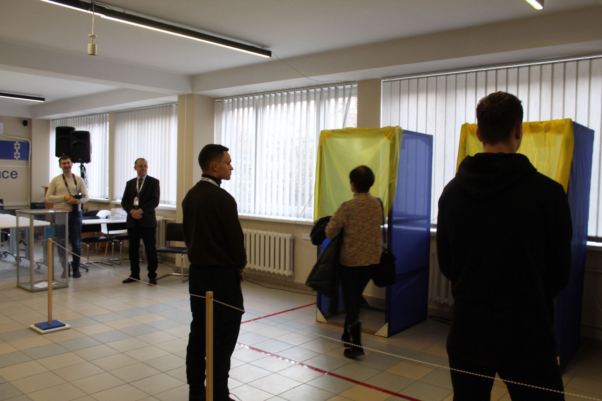 12:30. Важливо зазначити, що члени Виборчої комісії видають виборцям бюлетені для голосування лише за умови пред’явлення ними документа, що посвідчує особу. Це може бути паспорт громадянина України, закордонний паспорт, посвідчення водія, посвідка на постійне чи тимчасове проживання тощо. Дехто приходив з паперовими документами, хтось показував їх у «Дії». У тому, що Виборча комісія дійсно відповідально перевіряє у людей документи, пересвідчилась і наша журналістка, слідкуючи за процесом виборів. Голосування триває. Воно проходить дуже активно, набагато швидше, ніж було при першому турі, діляться виборці. Черга є, але вона незначна. Ми поцікавились у Юрія Древніцького, голови Виборчої комісії, до якої години триватимуть вибори.
