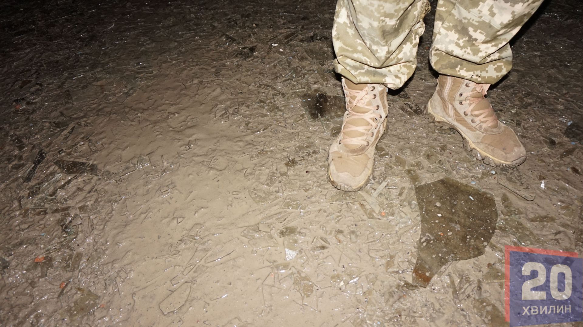 Доки ми пішки діставались місця вибуху, адже ближче під'їхали лише оперативні служби, довелось власним взуттям випробувати дорогу - вся вона була встелена скляними уламками різного розміру. Все це перемішалось з болотом. Обійти цю небезпечну жижу було неможливим. Уламки, можна припустити, - це залишки побитих від вибуху вікон заводу. У величезному двоповерховому приміщенні не залишилось жодного цілого скла. Приблизно в середині будівлі був відсутній шмат бетонного даху. Ймовірно, від вибуху його також знесло.