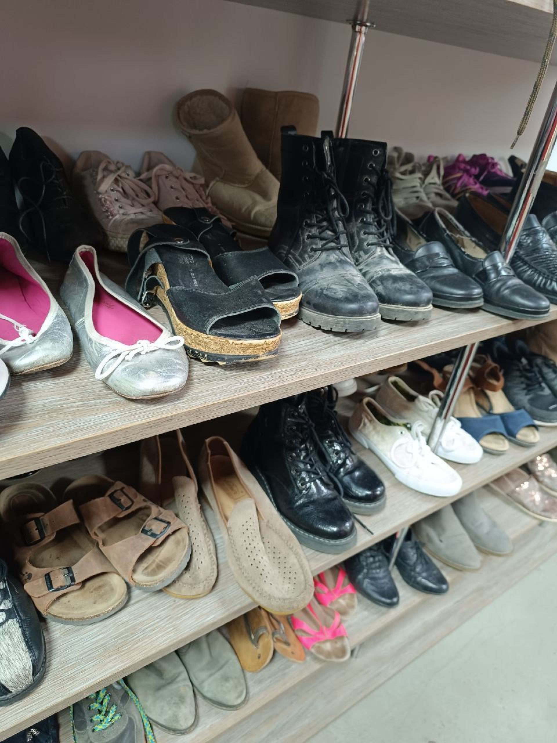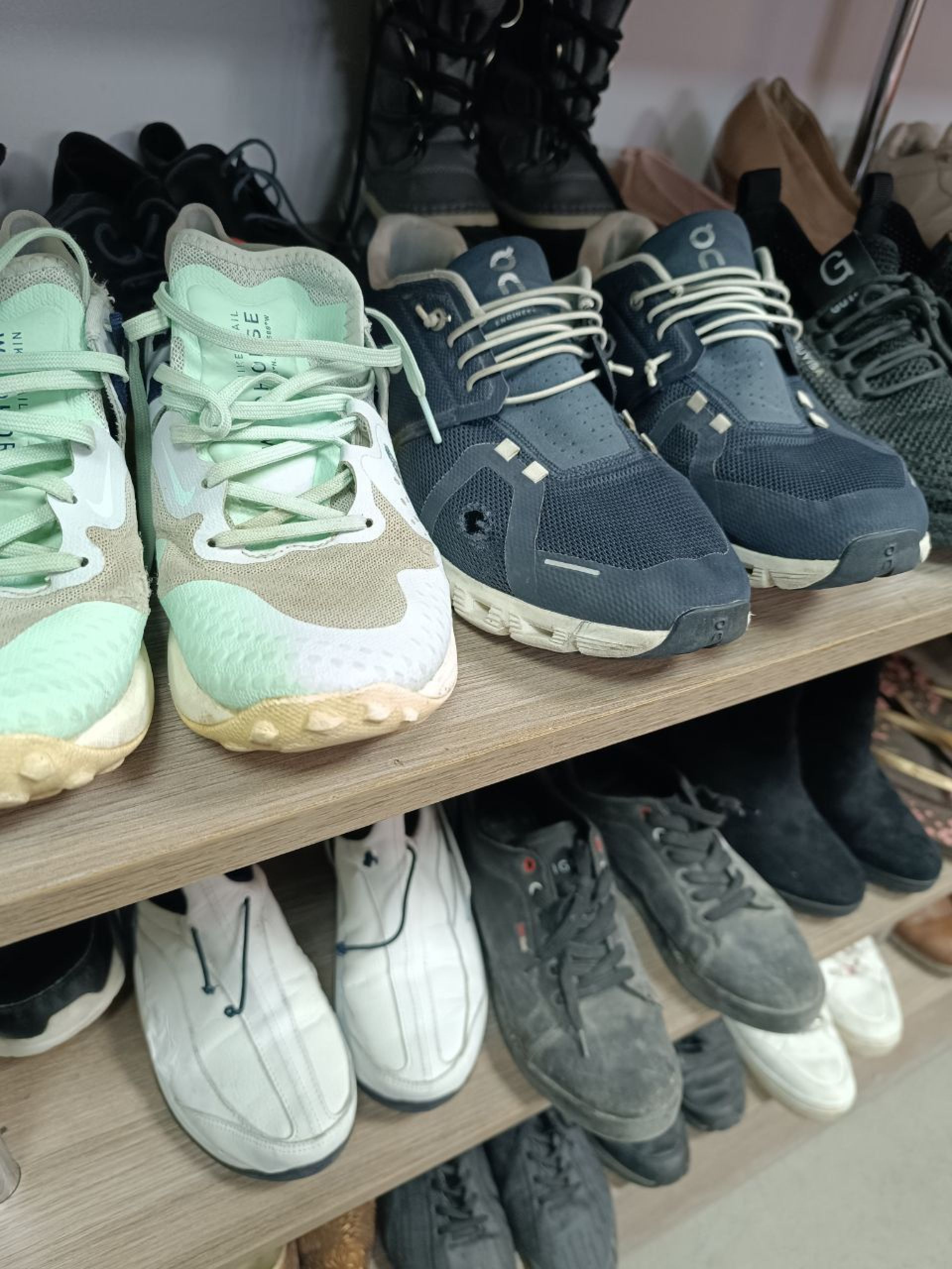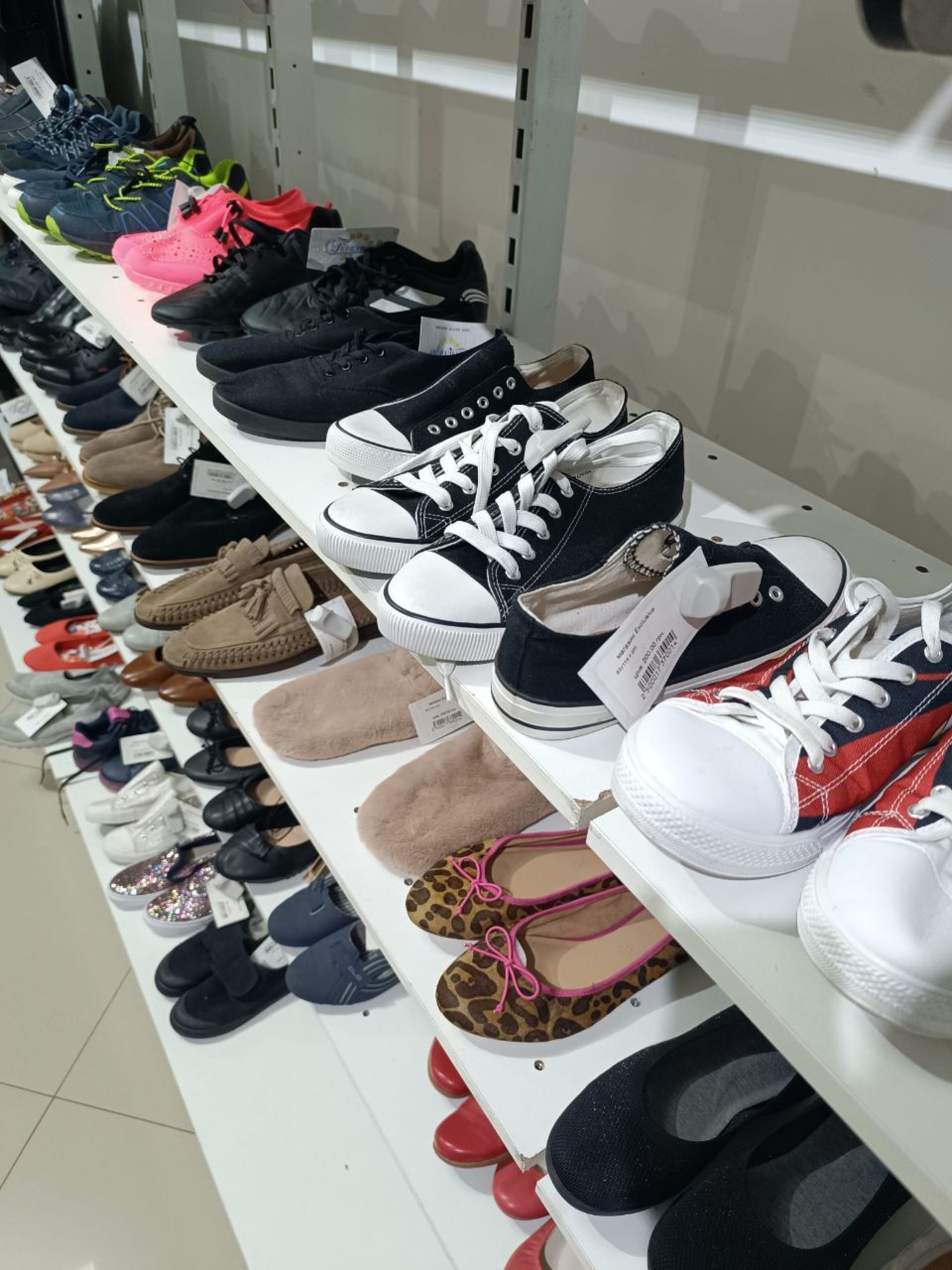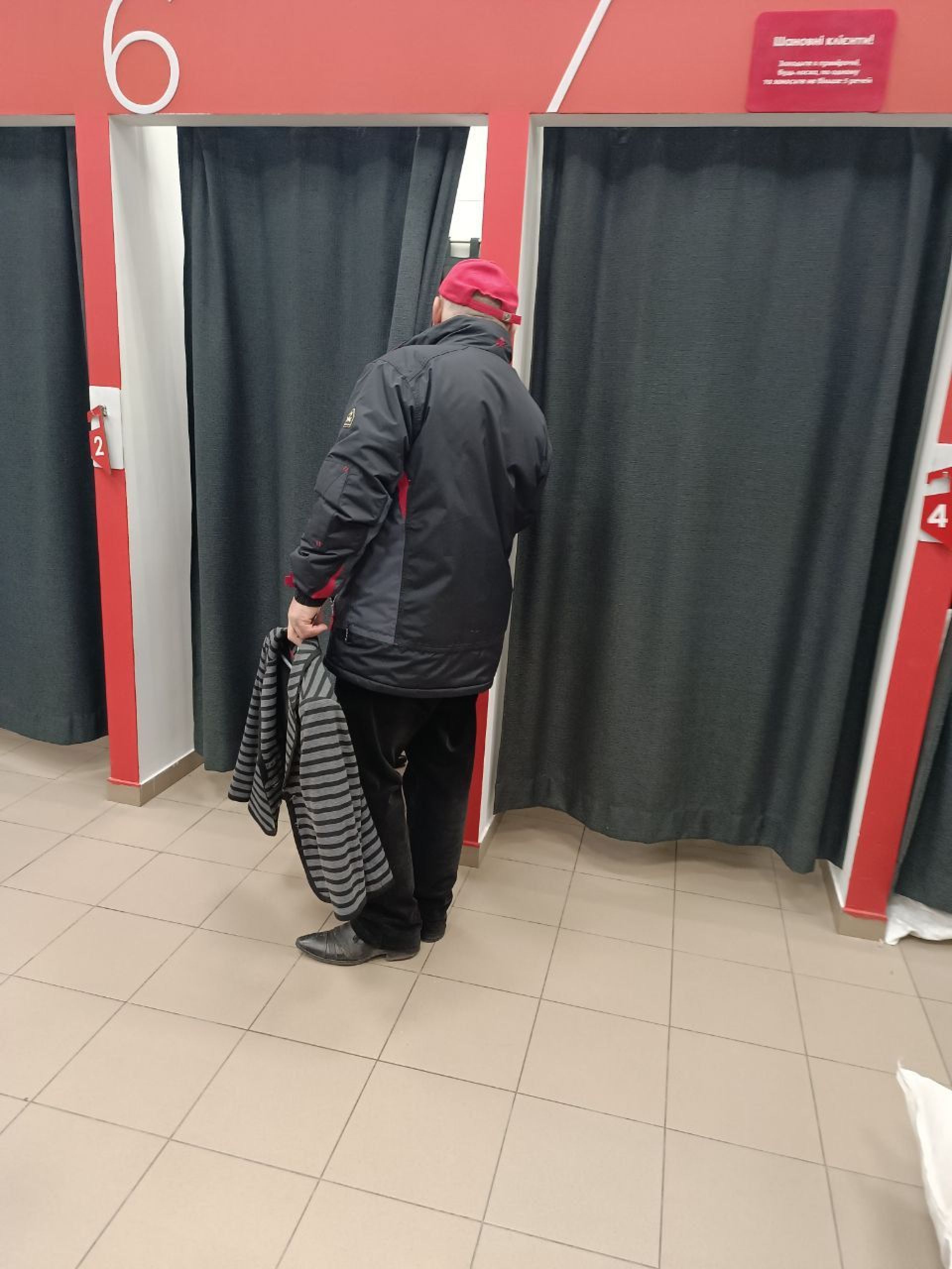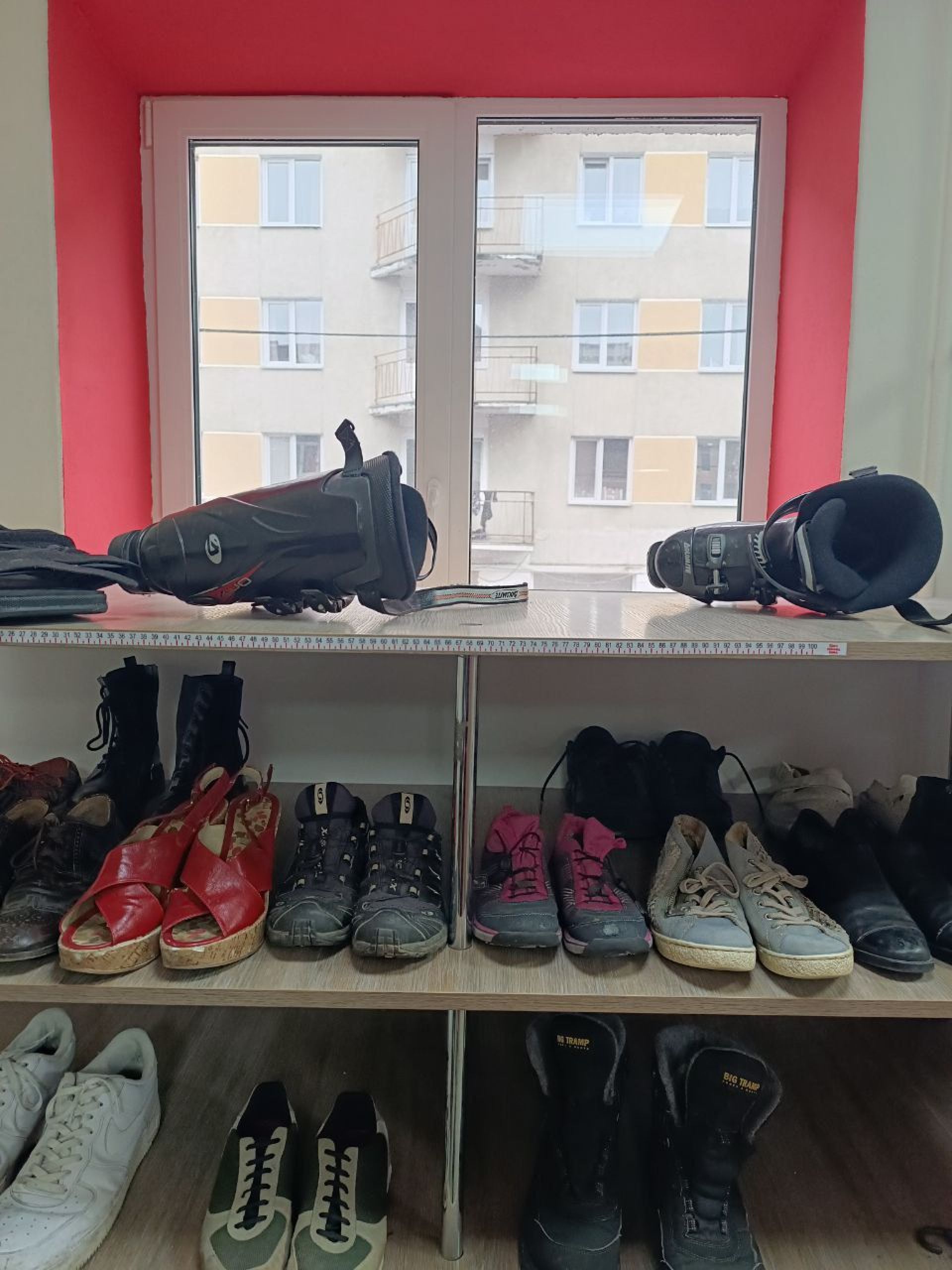 Біля каси є полиця зі взуттям та одягом у хорошому стані за фіксованими цінами. А от шторки у примірочних просвічуються, тож переодягатися не зовсім комфортно.
