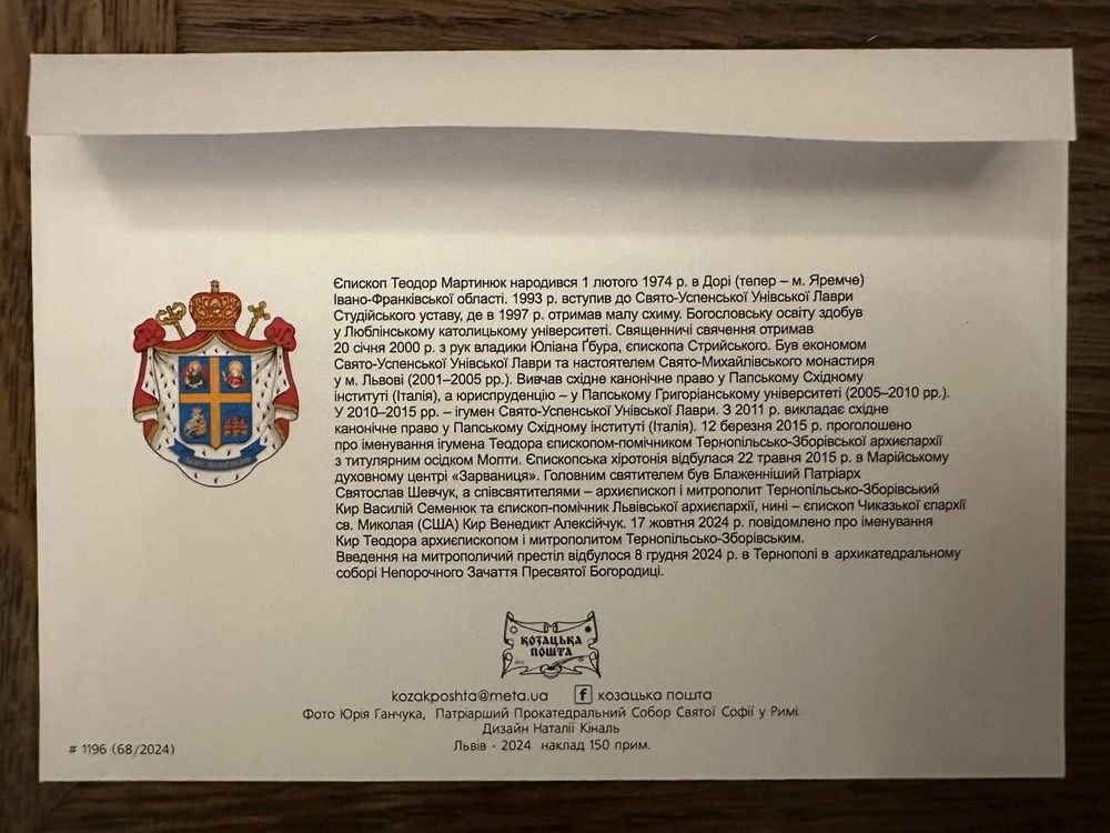 Відбулося погашення марки та представлення відзнаки з нагоди інтронізації архиєпископа Теодора Мартинюка