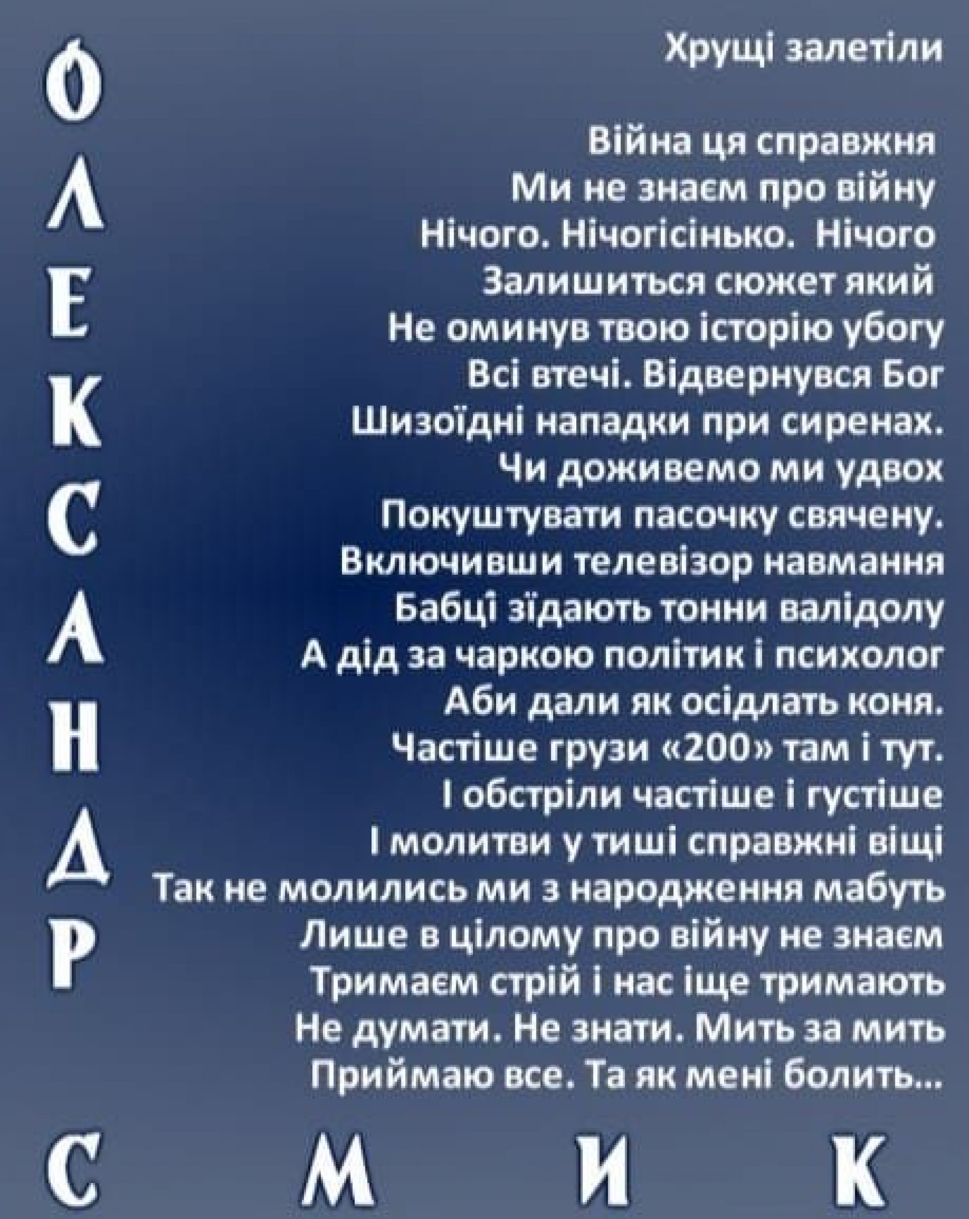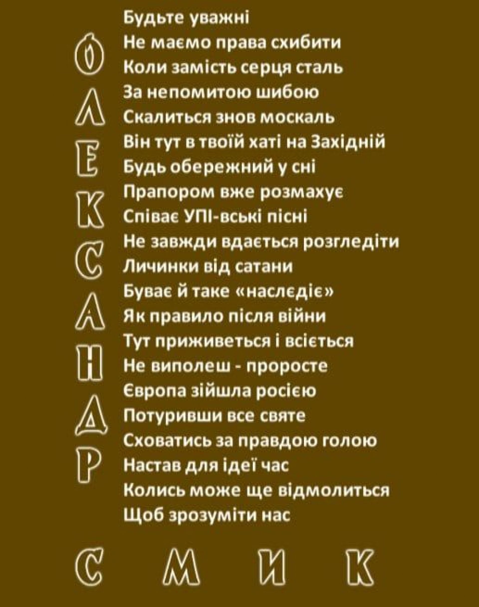 Вже під час відкритої навали московських варварів на Україну, Олександр Іванович очолив свій фронт боротьби з ворогом – «Духовний фронт». Його вірші та твори підтримували наших воїнів, волонтерів та тих, хто працював у тилу. Він зміцнював нашу віру у перемогу над ворогом. Сьогодні Тернопіль у скорботі. Україна оплакує Олександра Смика! – такі слова присвятили митцю на сторінці Тернопільської міської ради.