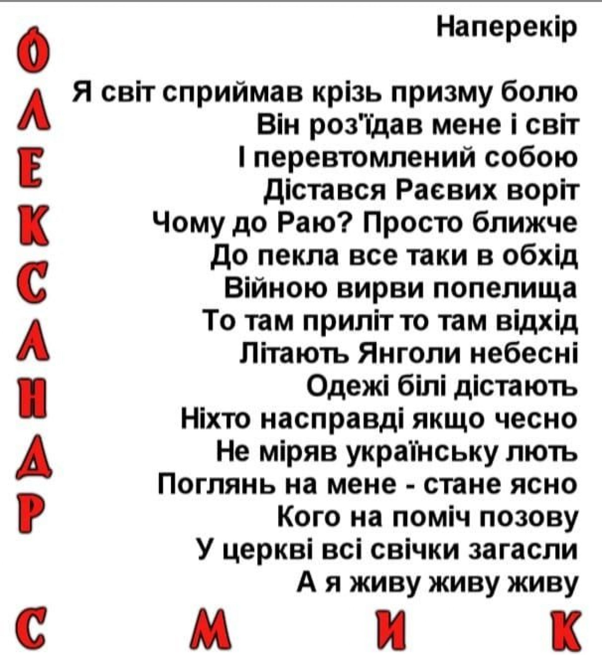 Ось цей ліричний вірш поет виклав на своїй сторінці приблизно 12 годин тому. Ніхто й не сподівався, що він стане для нього останнім...