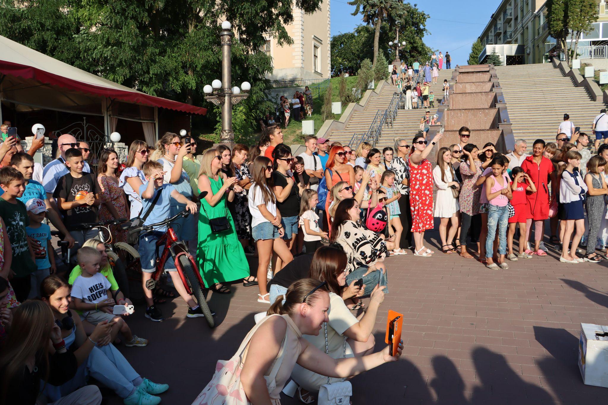 Благодійне дійство стартувало о 18.00. Біля фонтану «Сльози Гронського» зібрались десятки перехожих – адже гучну музику було чутно ще з центральної частини міста.