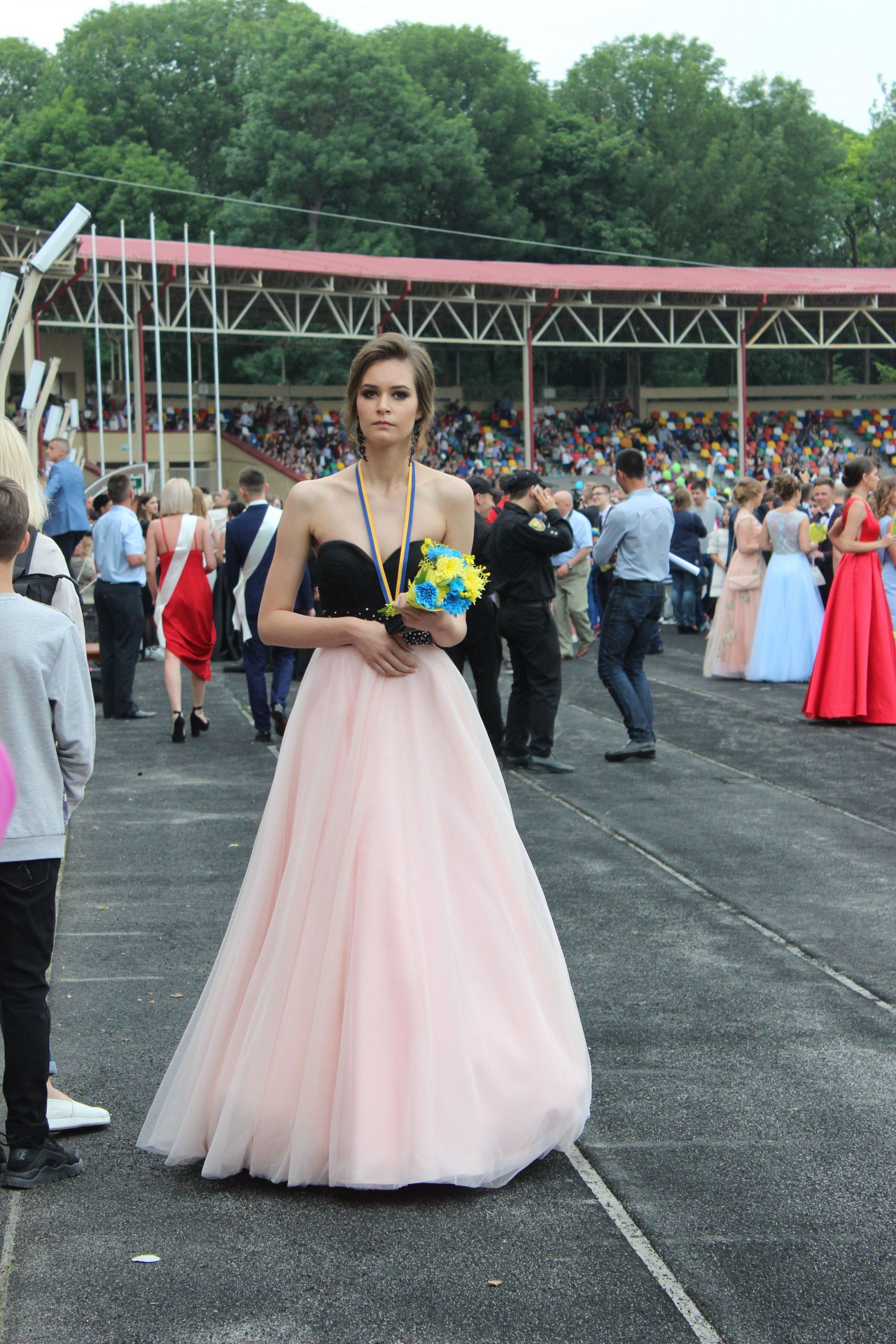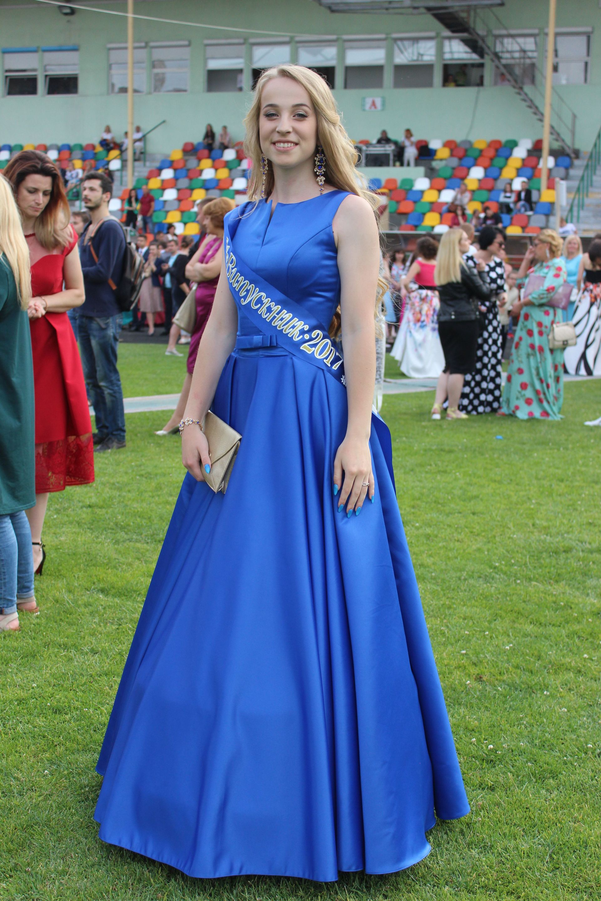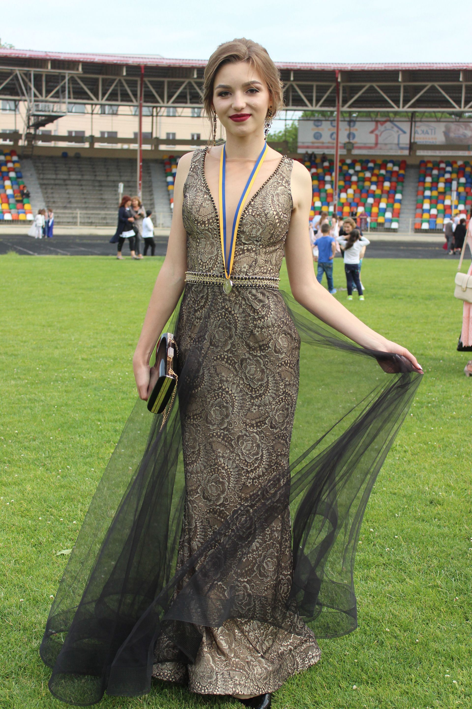 Випускниця 11-А класу 19-ї школи Анастасія Дідух замовляля дизайнерську сукню в США. Скільки коштує сукня дівчина не зізнається, але каже що трішки менше 1000 доларів. Свій образ дівчина доповнила короною.