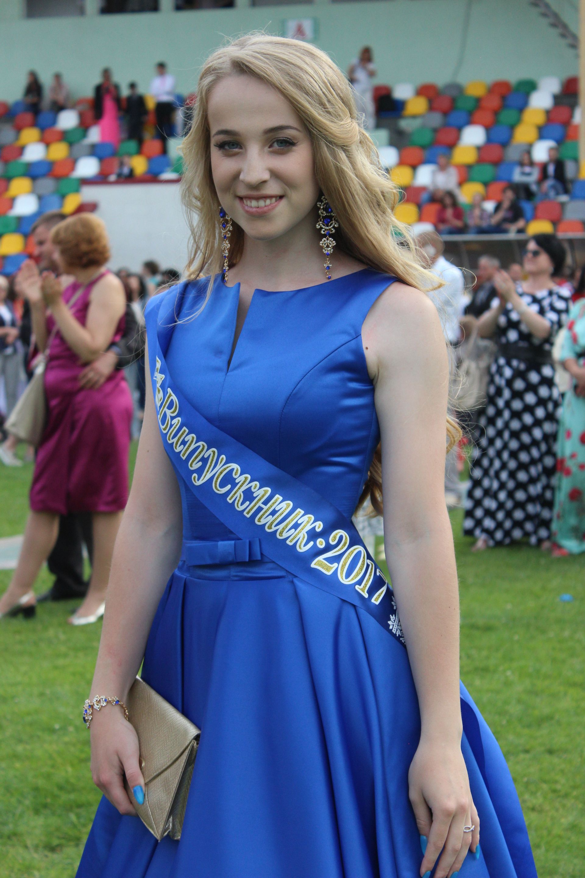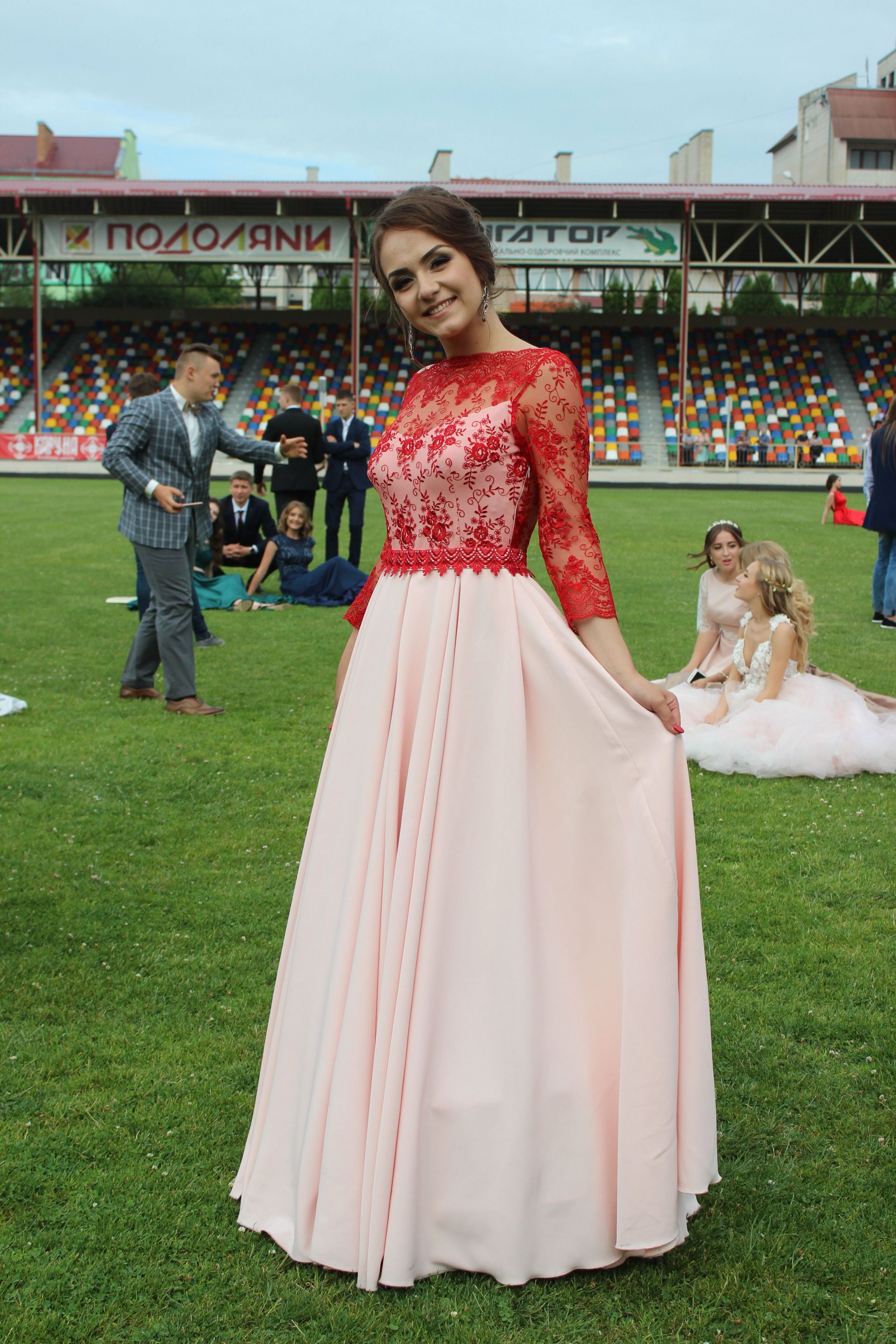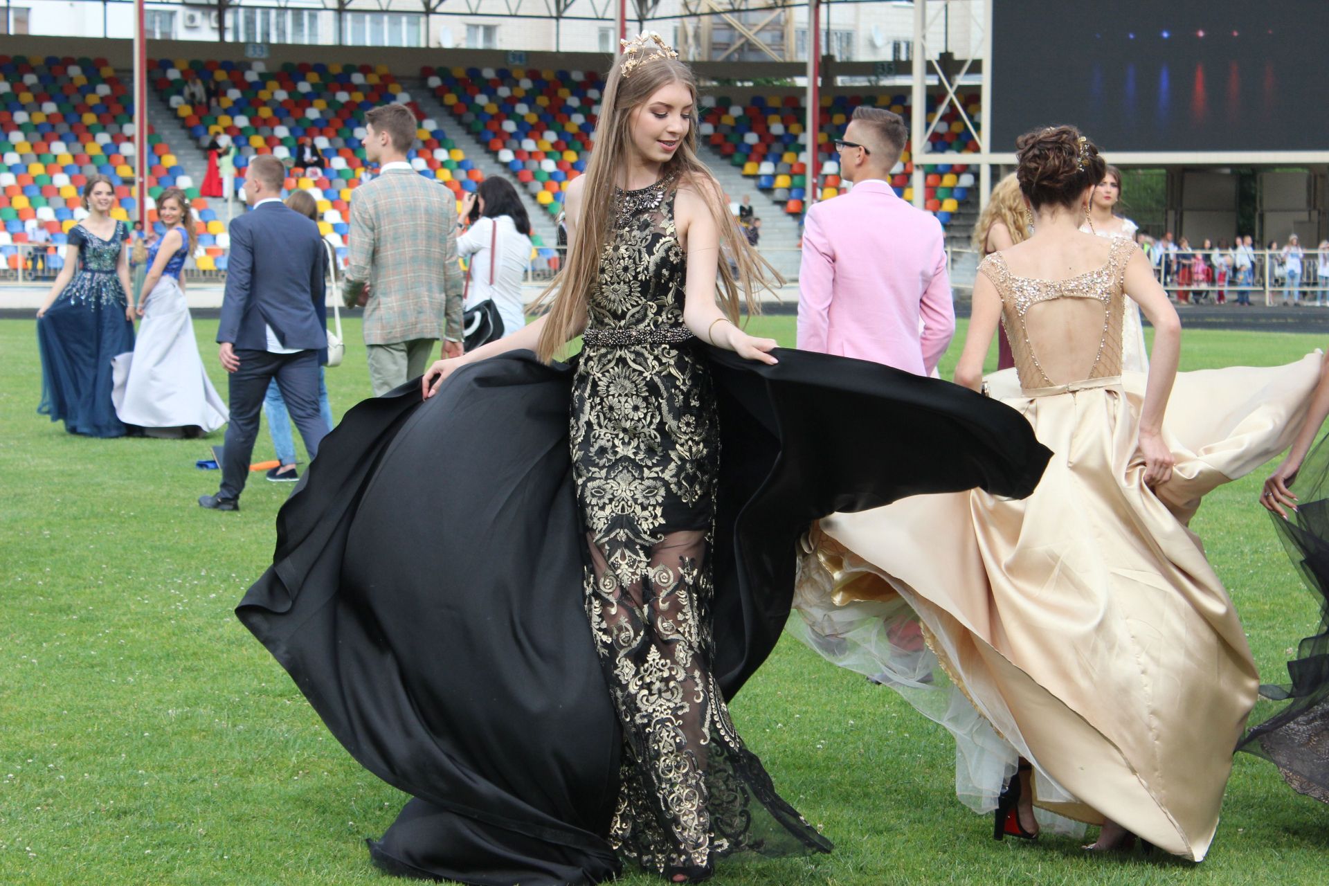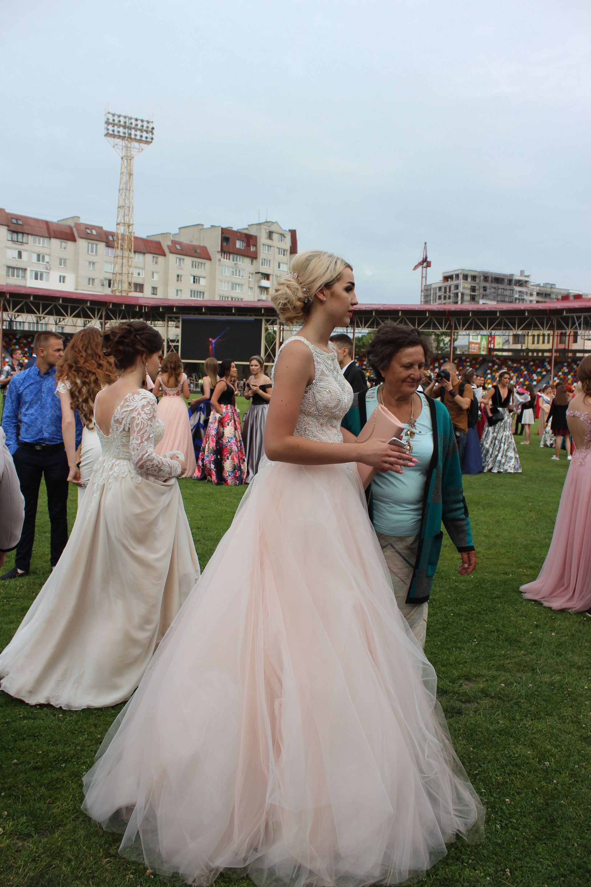 Випускниця 11-А класу 19-ї школи Анастасія Дідух замовляля дизайнерську сукню в США. Скільки коштує сукня дівчина не зізнається, але каже що трішки менше 1000 доларів. Свій образ дівчина доповнила короною.