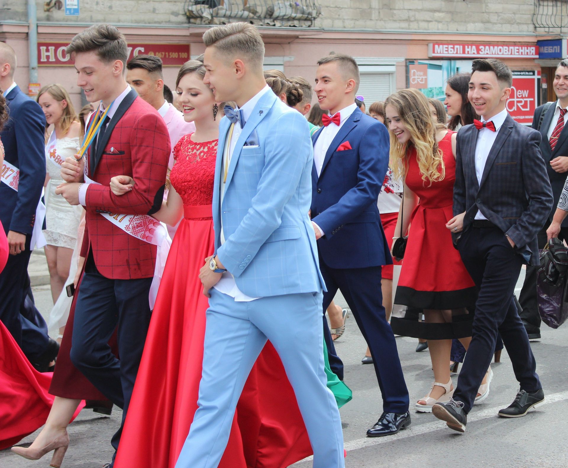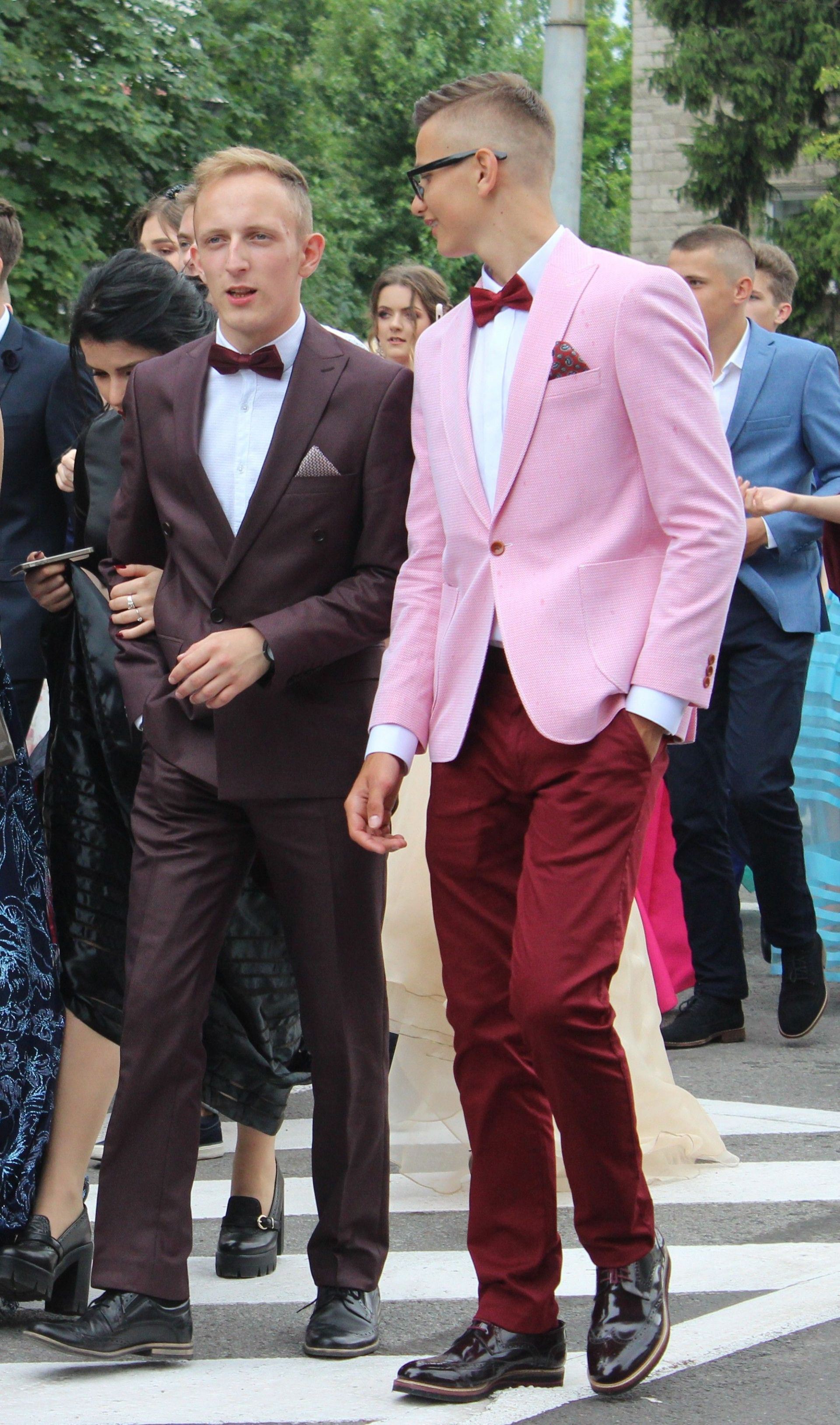 Хлопці до своїх випускних костюмів були не менш прискіпливими. Випускники розповіли, що більшість з них костюми вибирали або з мамою, або з дівчиною. І тратили на одяг та взуття від 2000 до 6000 грн. Хлопців в кедах, як у попередні роки - не було. Усі вибрали класичний набір - костюм, сорочка та туфлі, краватки або метелики. Дехто не одягав ні краватки, ні метелика. Традиційно більшість обрали темні кольори костюмів. Також були білі, рожеві, червоні та блакитні.