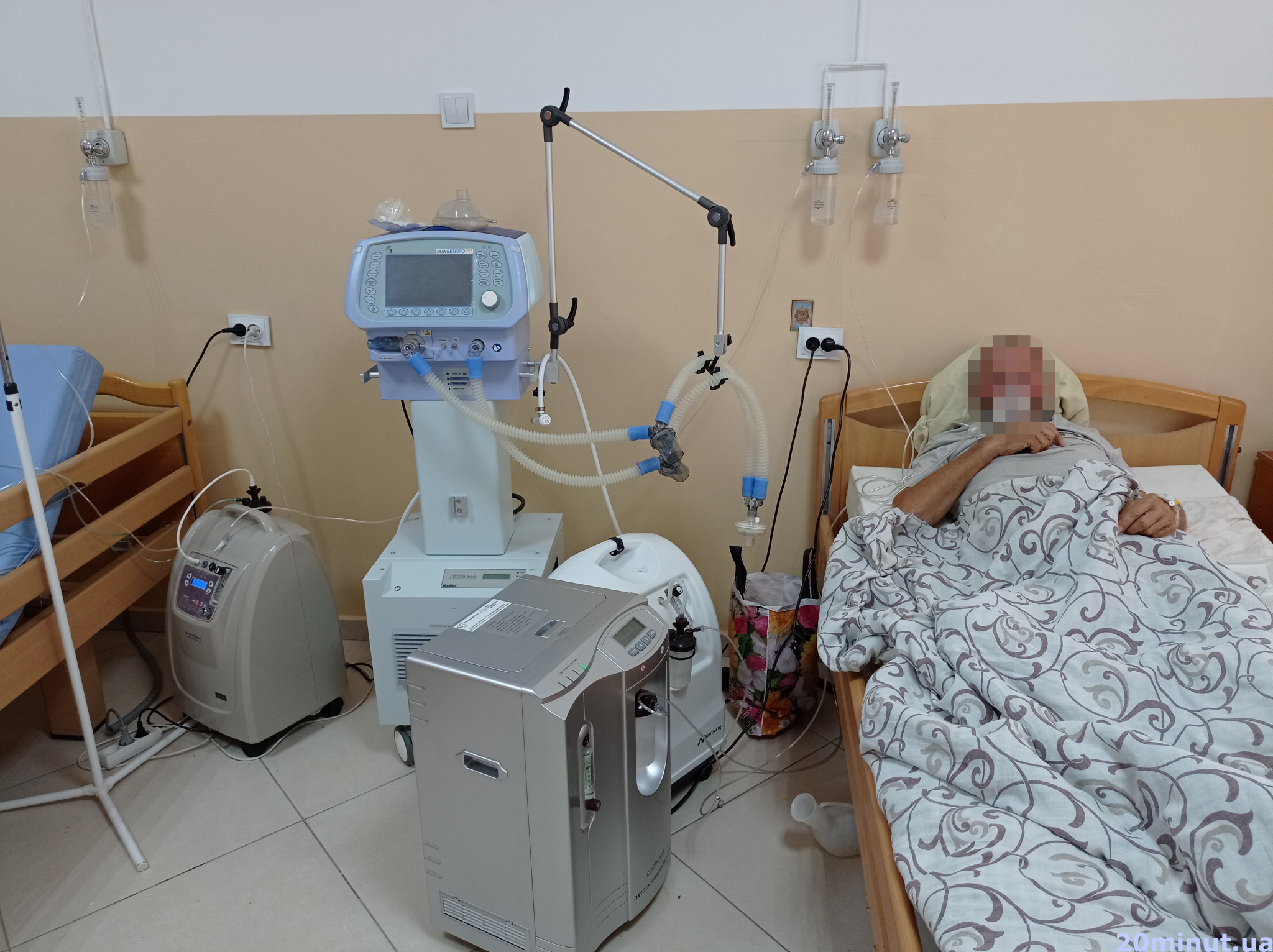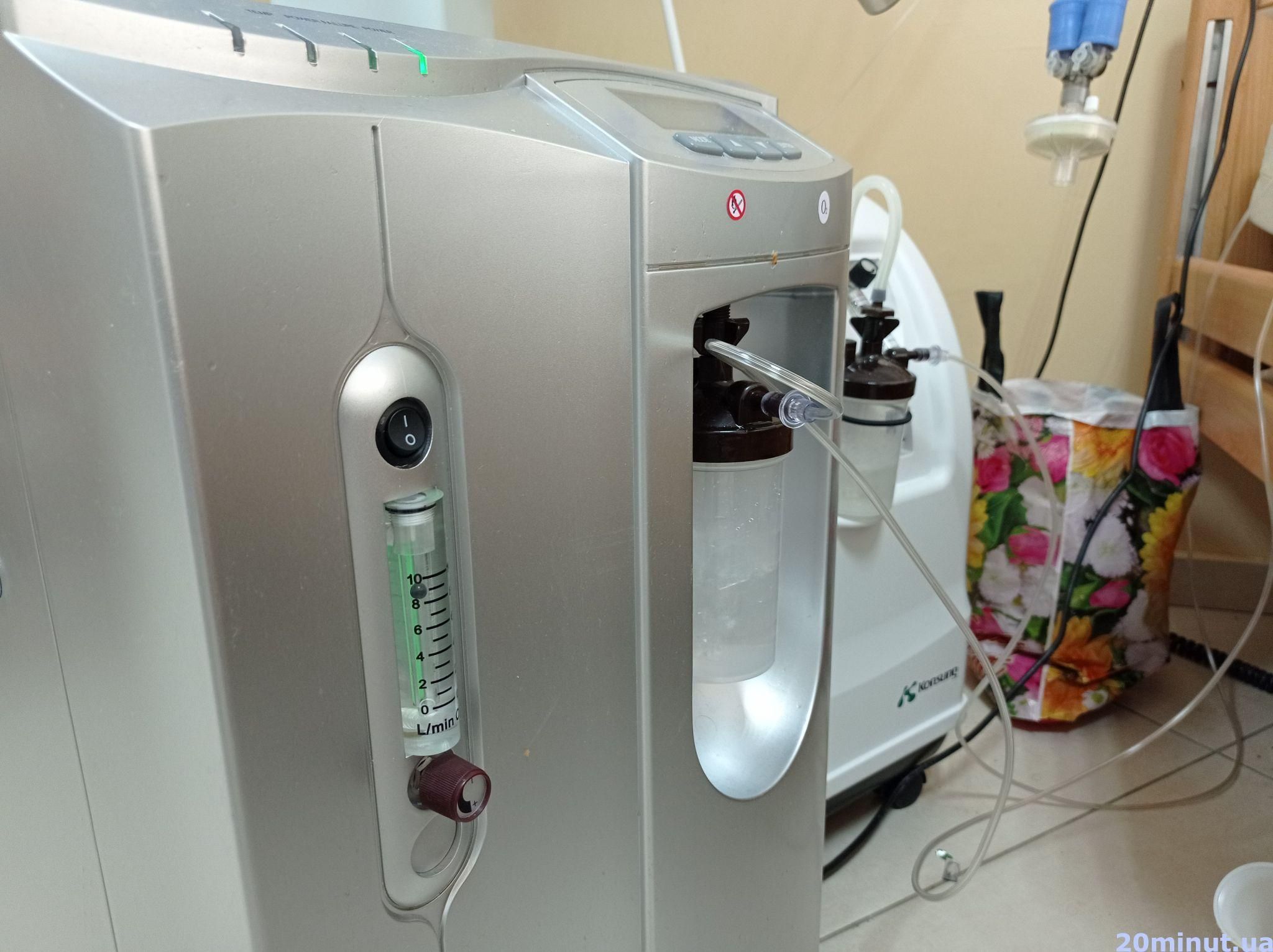 Коли пацієнту стає краще – його підключають до кисневих концентраторів. Це прилад, який добуває кисень з повітря. Щоб забезпечити ним для життя важчих пацієнтів, одного концентратора часто недостатньо – їх потужності не вистачає. Працює одразу два.