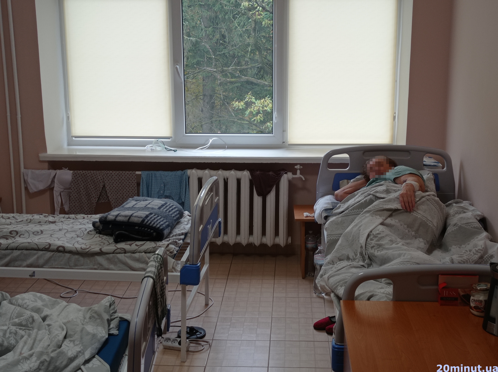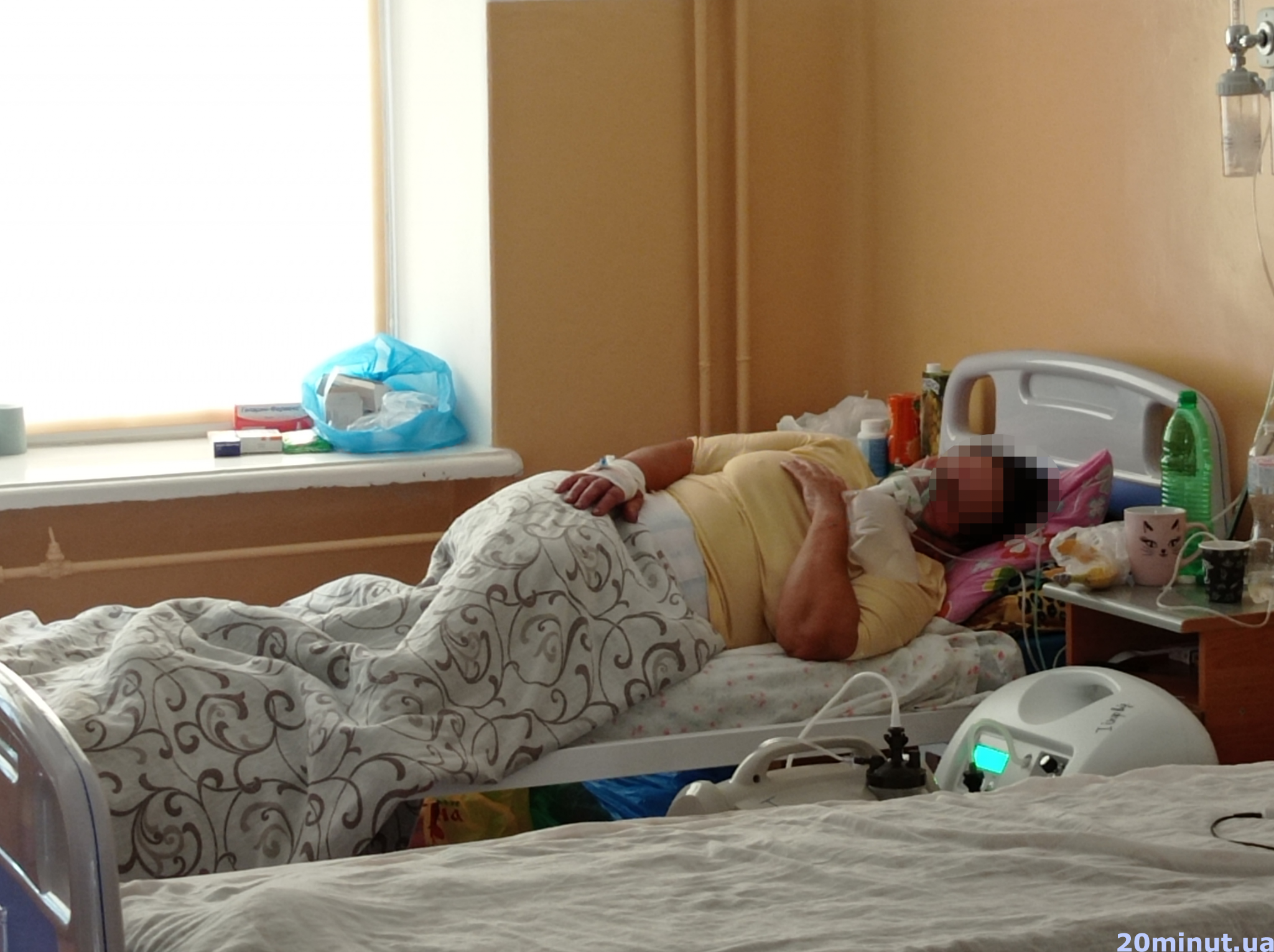 Нам вдалося поспілкуватися з пацієнтами відділення. Більшість з них лежать чи сидять на ліжку. Навіть вийти з палати декому важко – починається задишка. При розмові бачимо, як їм важко навіть говорити.