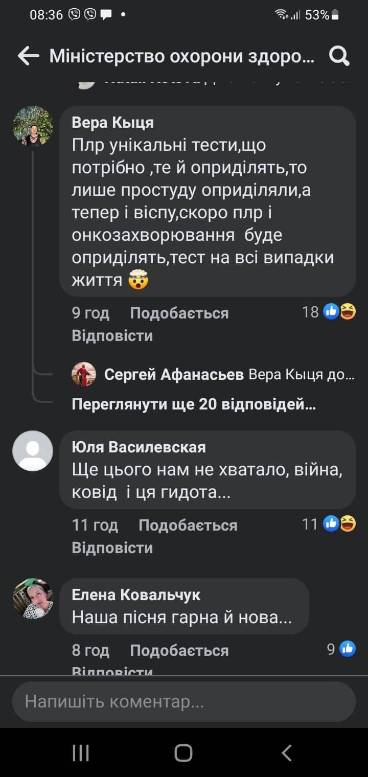 Під дописом МОЗ у соцмережі користувачі пишуть: