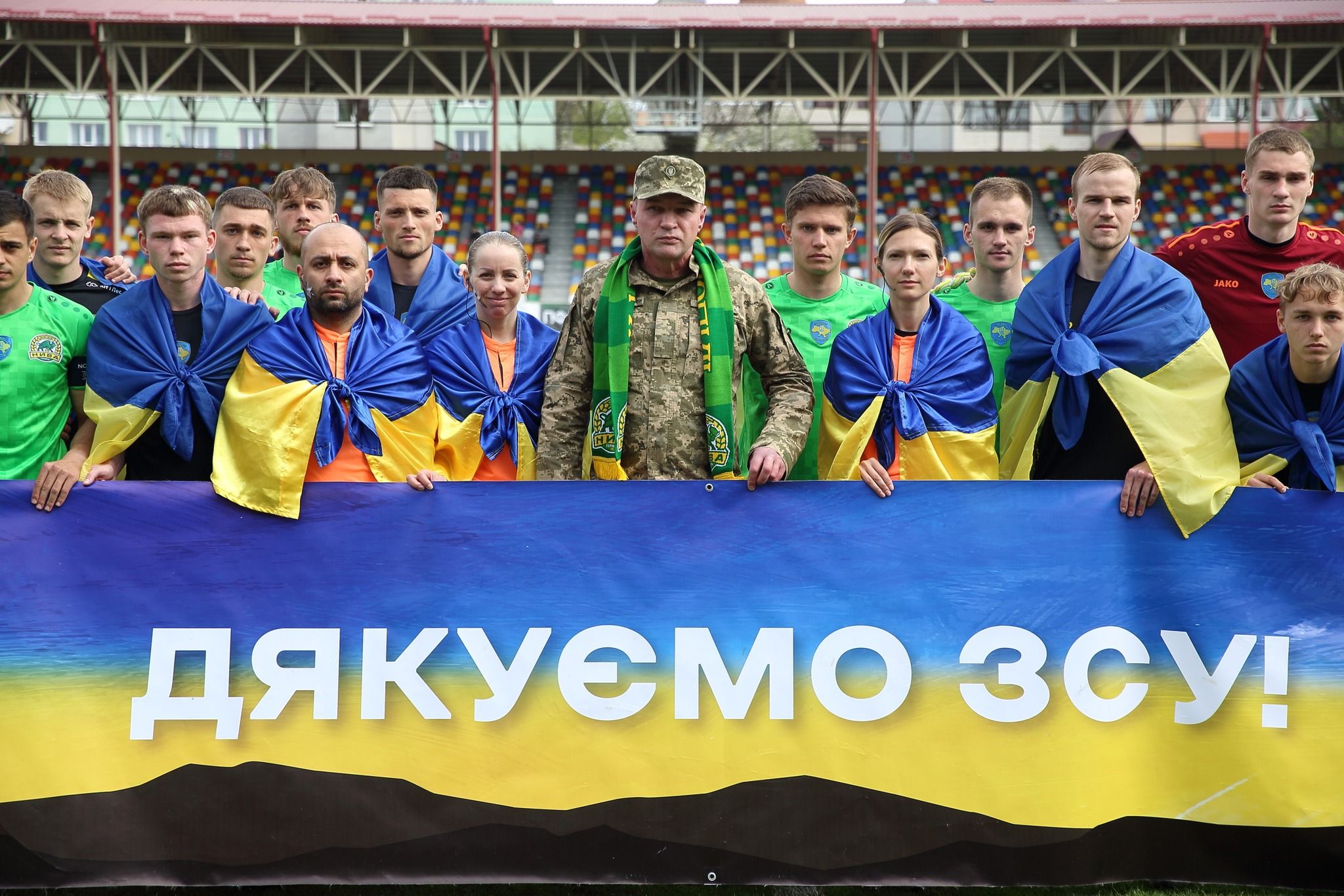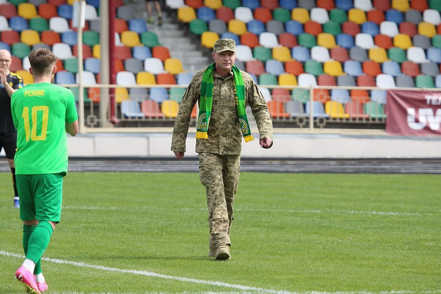 Військовий зробив символічний удар по мʼячу у матчі «Нива» Тернопіль — «Чернігів»
