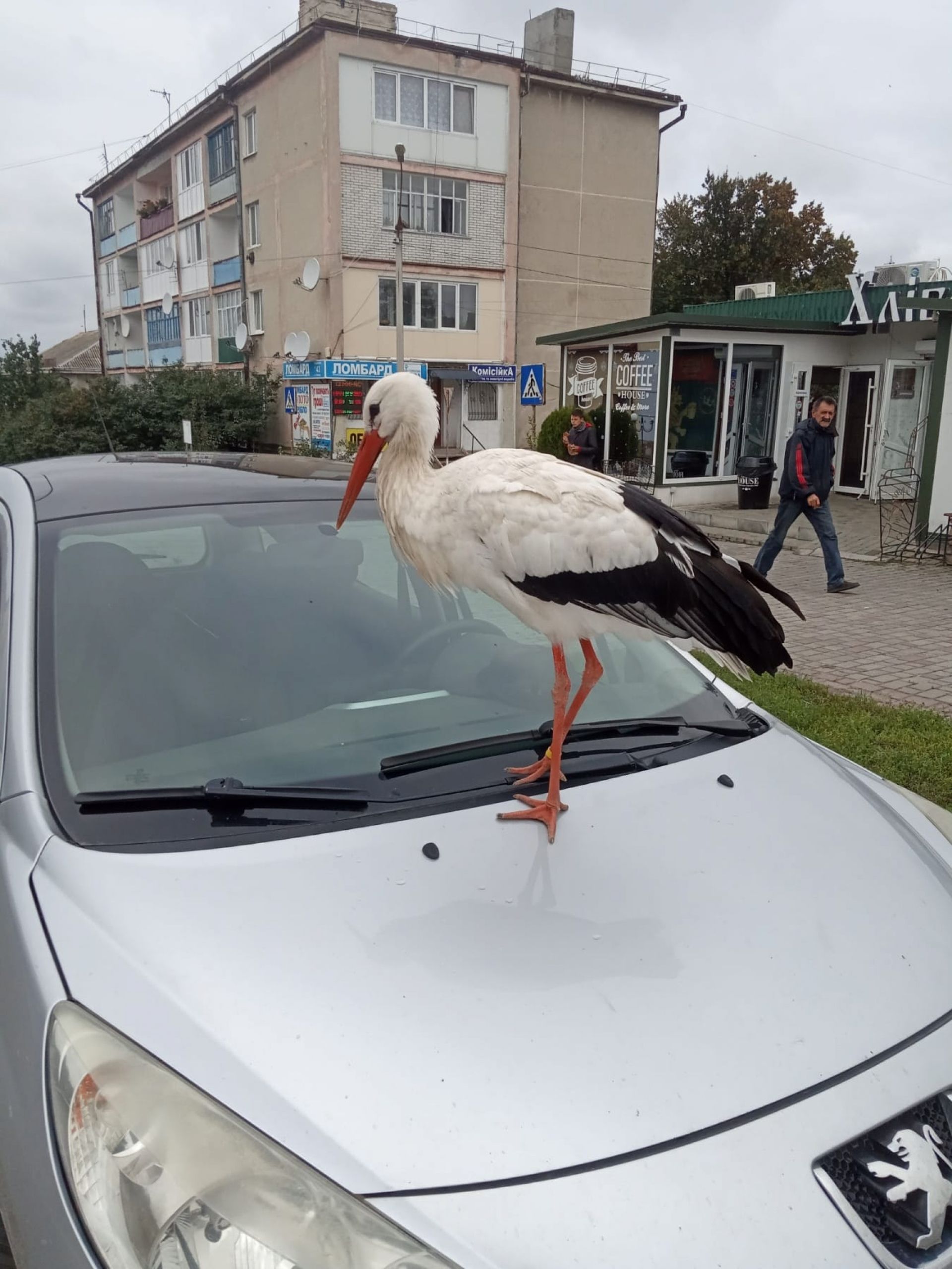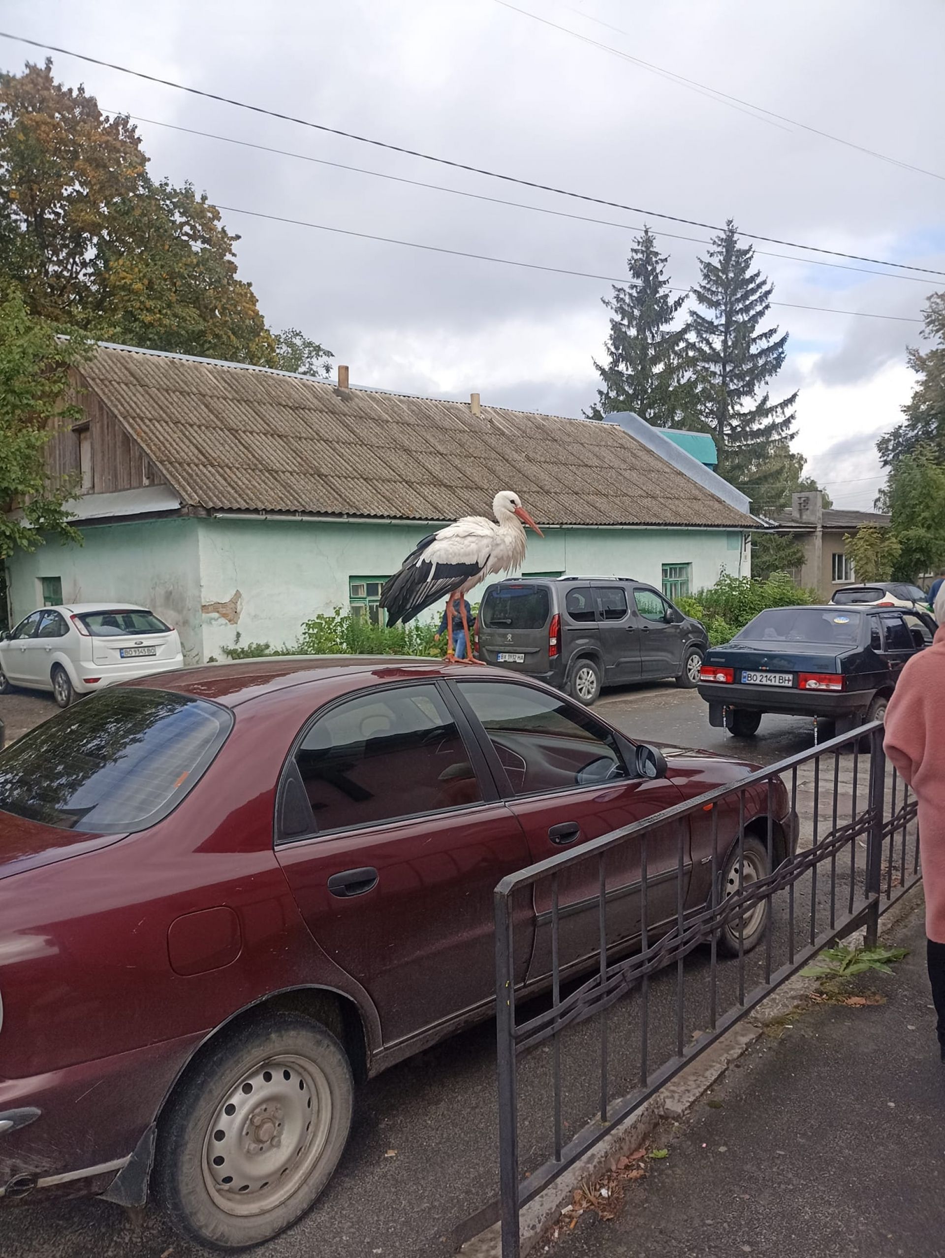 Візитівка Ланівців: в райцентрі на Тернопільщині лелека «перевіряє» автівки