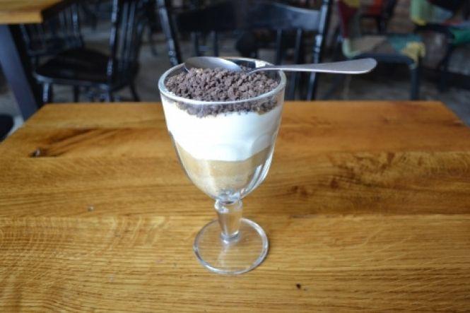 – Одного разу я сидів за столиком, просто поставив дві склянки з десертом поряд і відповідна назва одразу спала на думку, – продовжує співвласник.